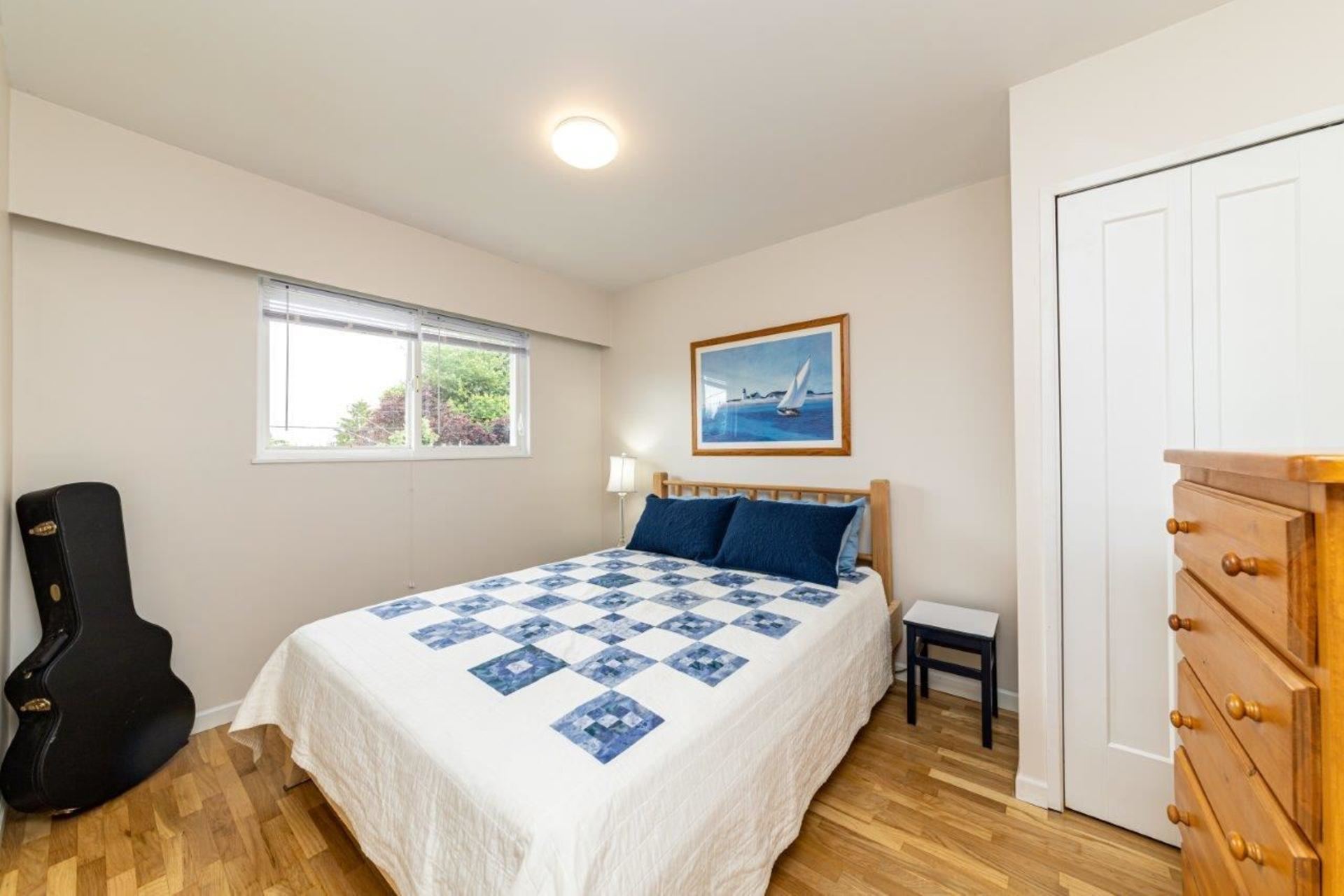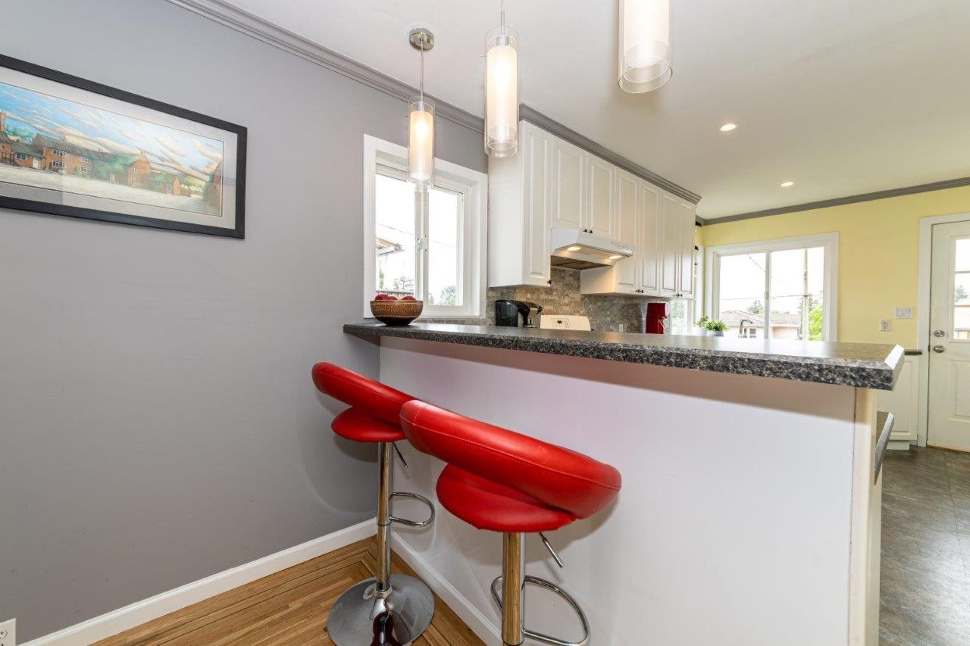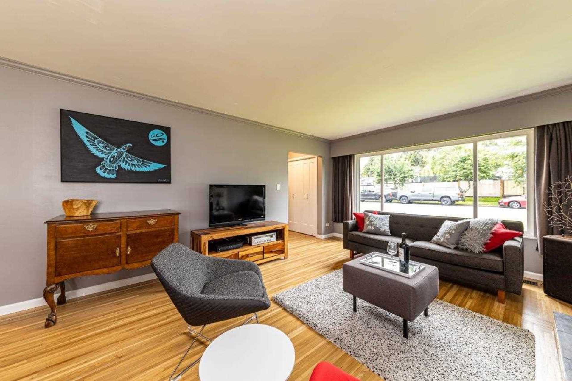 First time on the market in 30 years! Well maintained and updated situated on a level, South facing lot with lane access. Main floor features large open plan living and dining and spacious updated kitchen opening onto large sun drenched deck, renovated full bath, beautiful oak floors. Lower level features a new 2 bedroom authorized suite with full permits, workshop and separate laundry. Fantastic and quiet location just a stroll to Brooksbank Elementary and Loutet Park. Ready to move in now!