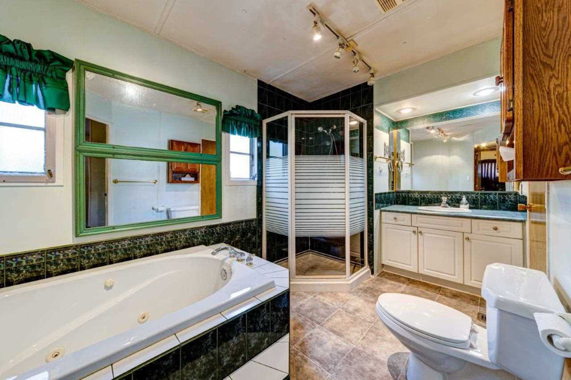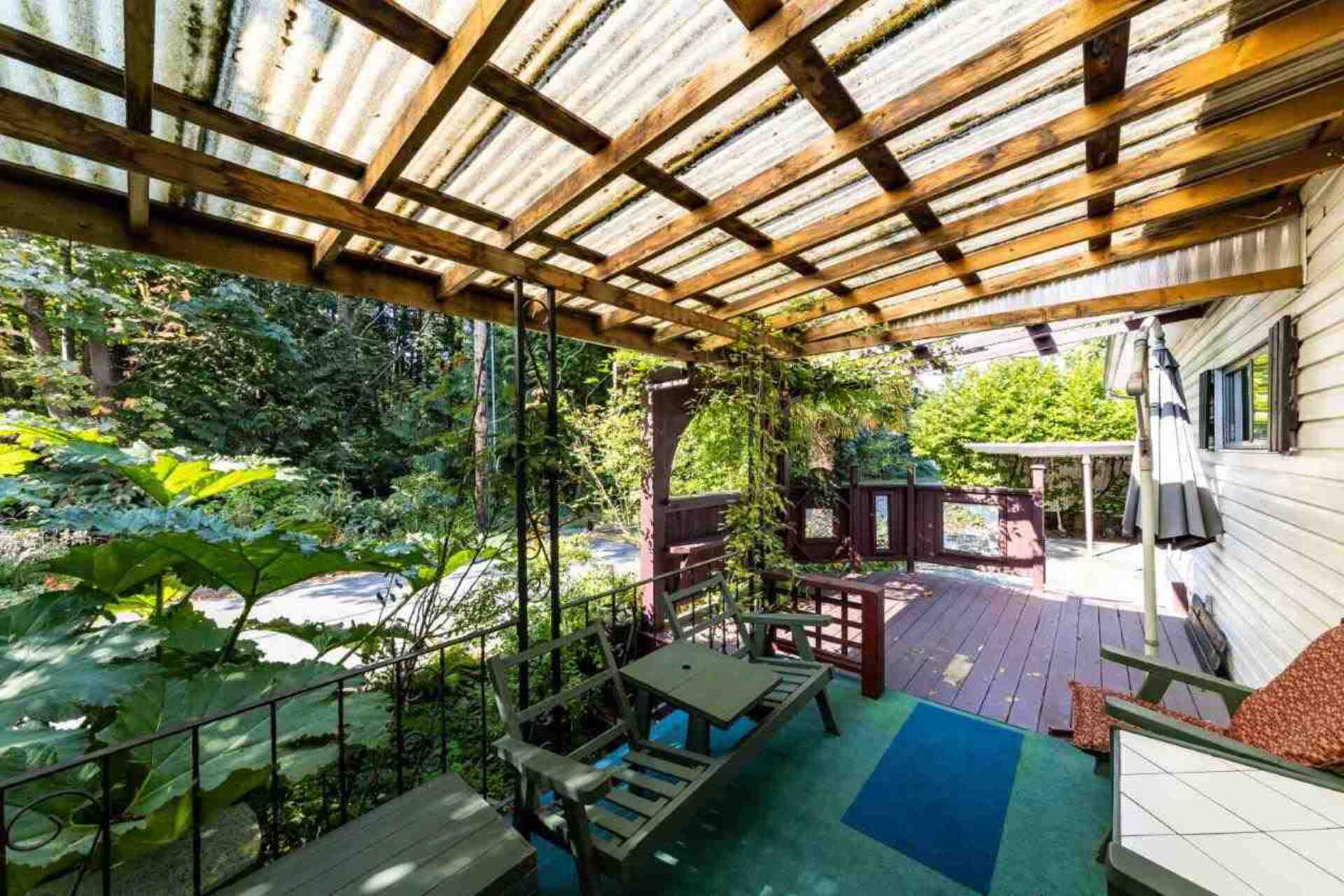 Walk to the beach and Park Royal - spacious double wide on corner lot with forested outlook and extensive mature gardens. Features include large covered sundeck, open plan living room with gas fireplace,bright kitchen with center island,separate laundry room with outside access, over sized master wi