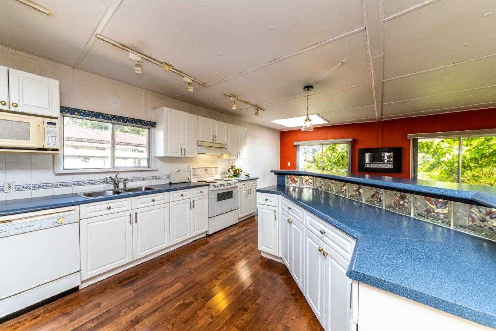 Walk to the beach and Park Royal - spacious double wide on corner lot with forested outlook and extensive mature gardens. Features include large covered sundeck, open plan living room with gas fireplace,bright kitchen with center island,separate laundry room with outside access, over sized master with two walk in closets and semi ensuite 4 piece bath with jetted soaker tub,second bedroom with walk in closet. Pet friendly.