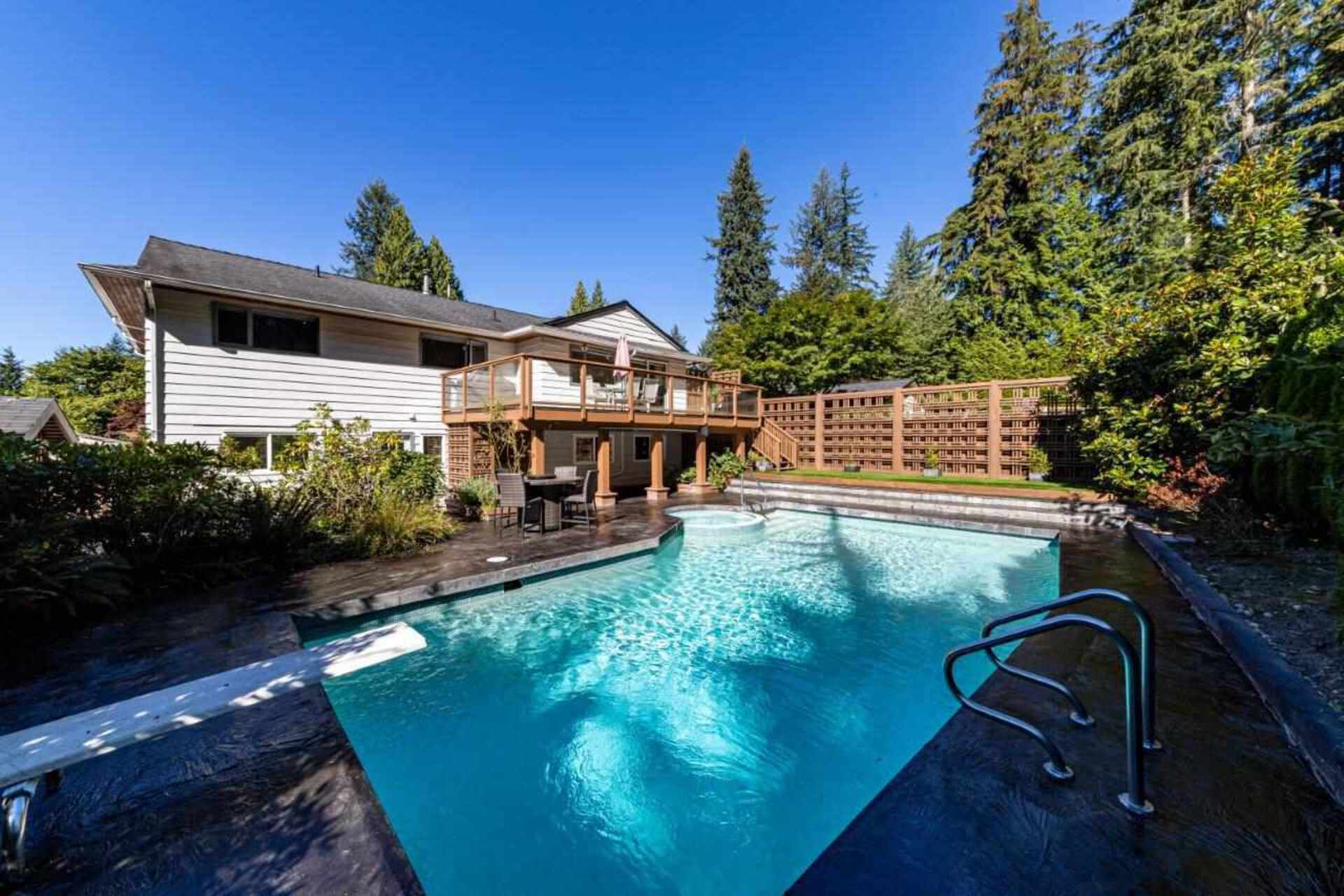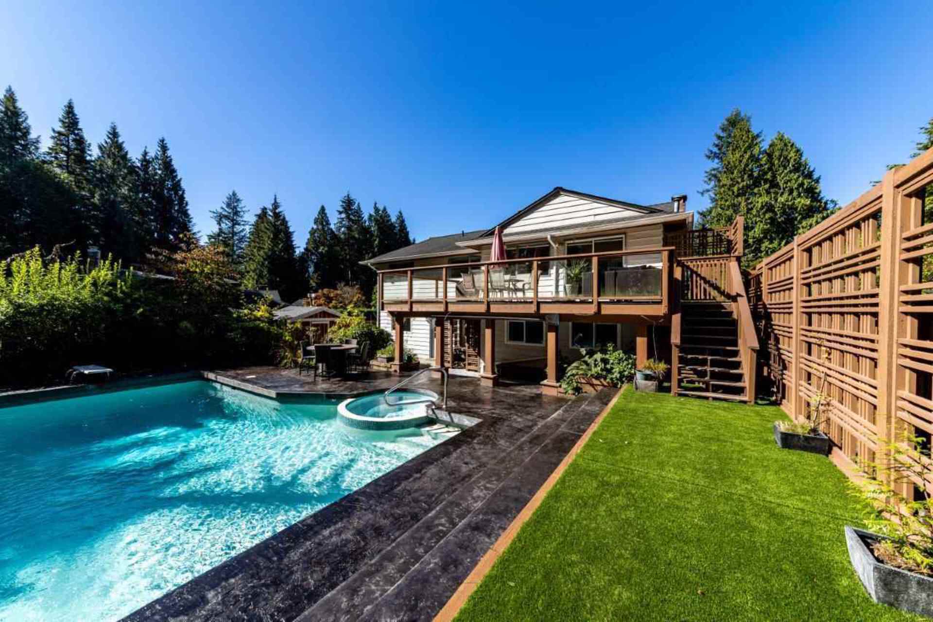 Situated on a quiet street and tucked upon a greenbelt, this is an exceptional home to raise your family. This two level split style home has ample room on the main floor with 3 bedrooms including master bed with ensuite, large living spaces and a kitchen with stainless steel appliances. The kids will enjoy the XL rec room on the lower level, basketball on the front driveway, or the sun soaked pool and hotub while you relax on the large sundeck above. Downstairs also features two additional bedrooms, a two car garage and a large laundry/mud room ideal for pool days in the Summer or coming in from rainy Autumn and Winter walks. If you ever wanted a home that can be cherished and molded to meet your needs for a long time, this is it.