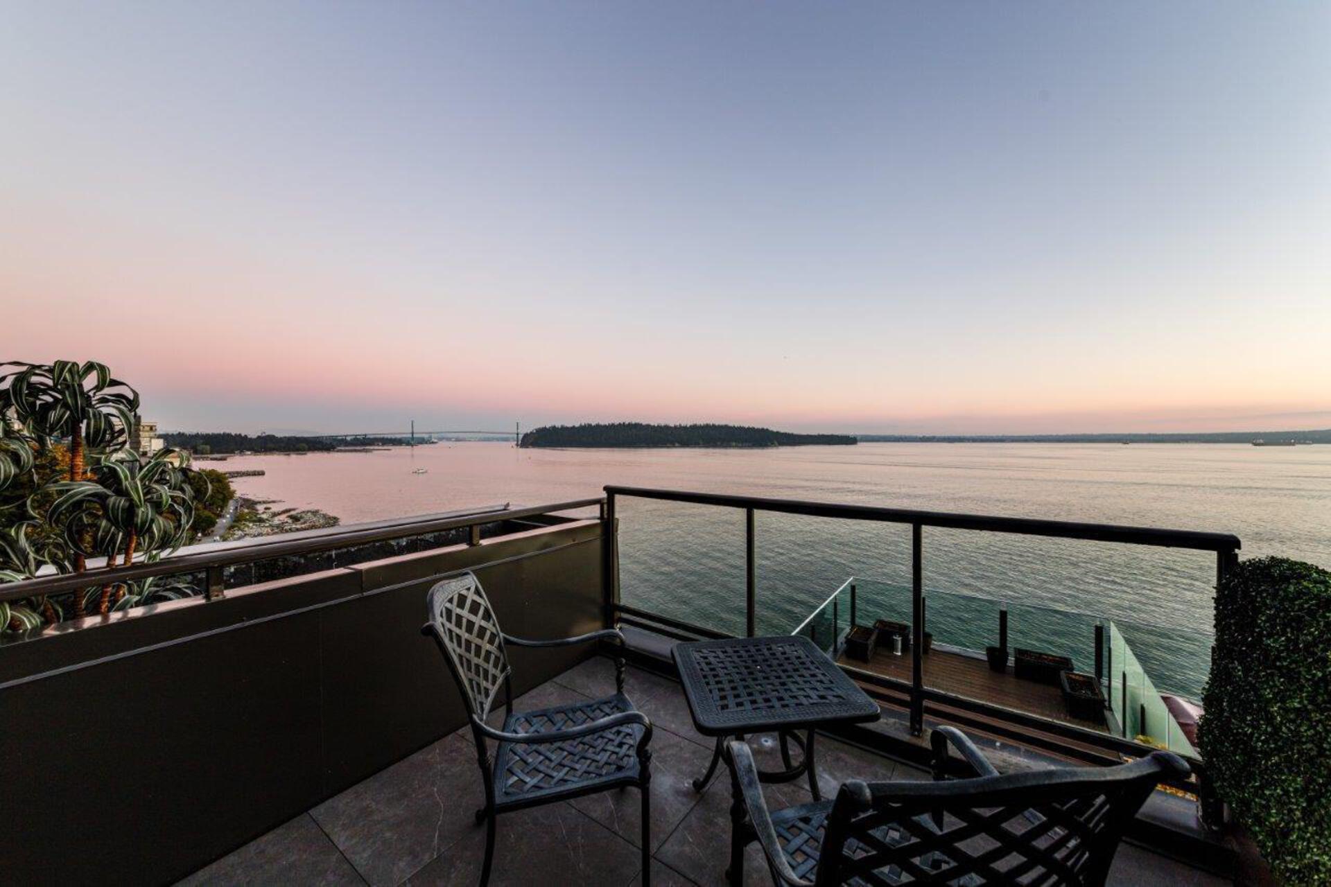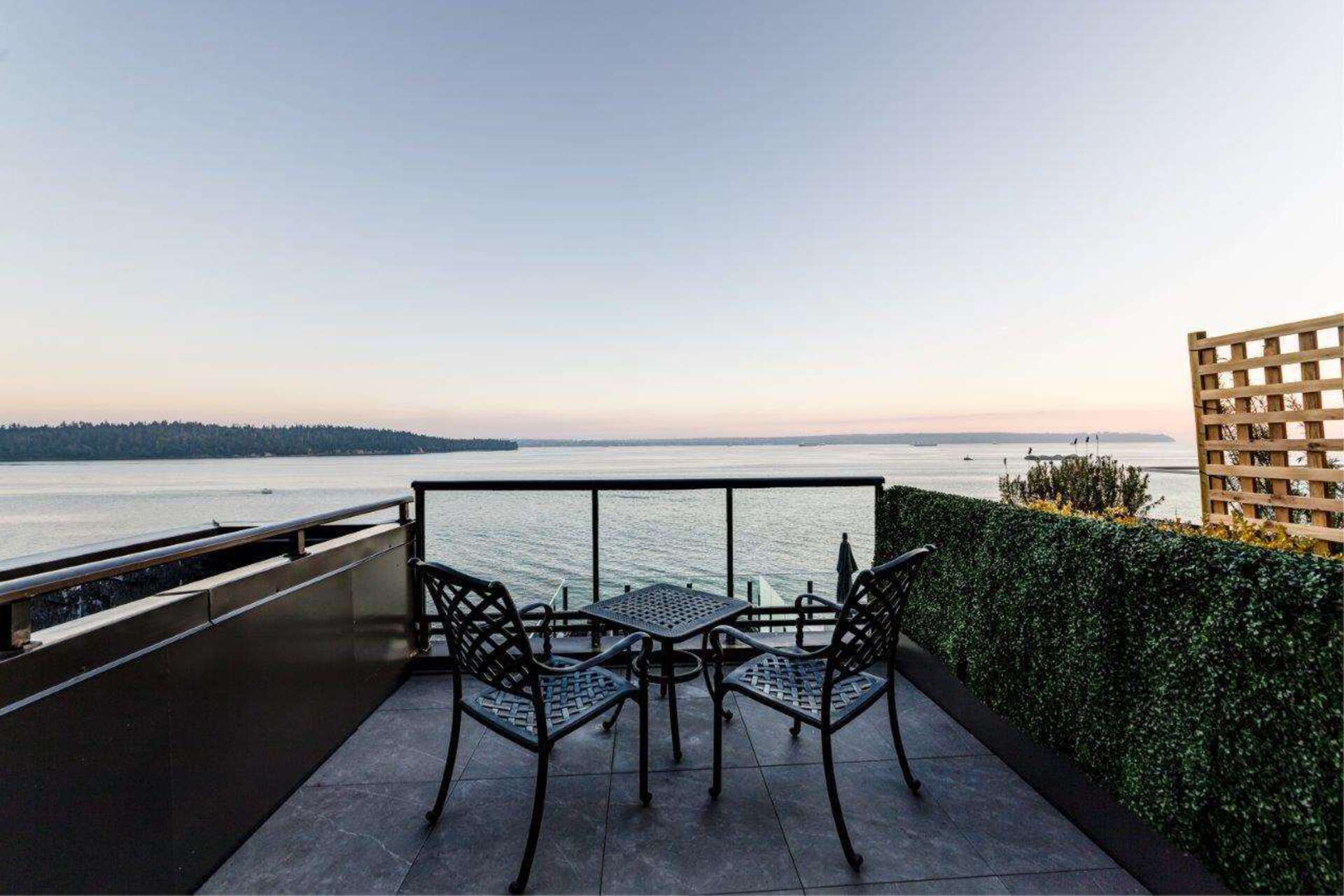 A rare opportunity to take this breathtaking FOREVER view and turn this into your masterpiece PENTHOUSE apartment. The views are endless and the floor plan is generous in it's sizing; a blank canvas for you to bring this home up to your standards. This is one of only two penthouse level units in this boutique CONCRETE 18 unit, 7 story building. Take a stroll on the Seawall and walk to all the conveniences of Dundarave. Opportunities to own a unique home like this don't come up often.