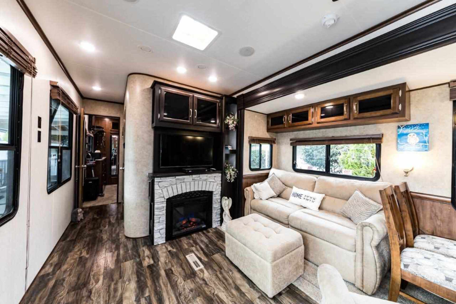 Unique lifestyle; fully furnished Jayco trailer located in the Capilano Mobile Home Park just steps to the river and Park Royal shopping. Features include open plan living, dining and kitchen, tons of built-ins with lots of storage, air conditioning, built in vacuum, laundry, 2 wall mounted T.V.'s.
