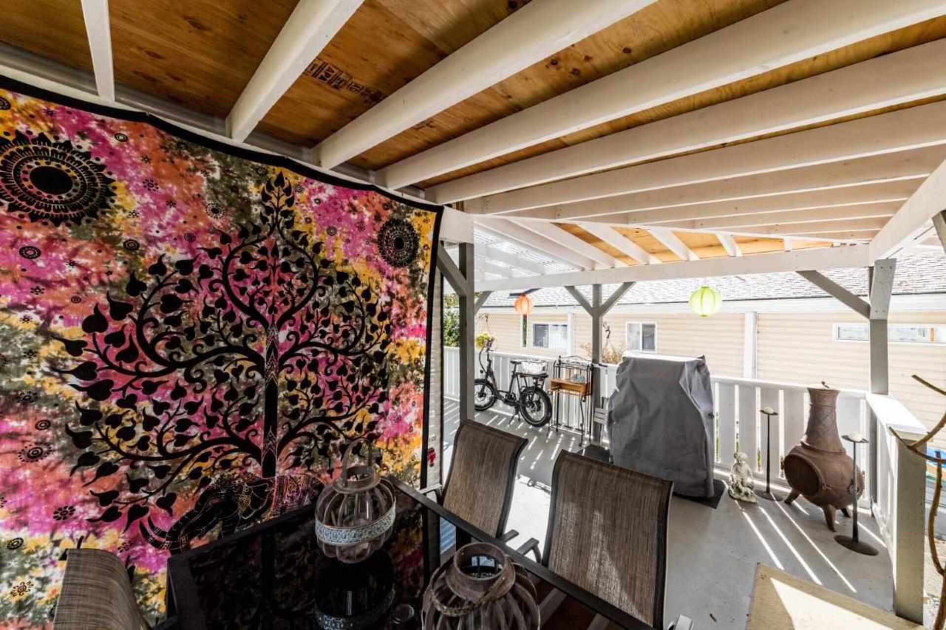Unique lifestyle; fully furnished Jayco trailer located in the Capilano Mobile Home Park just steps to the river and Park Royal shopping. Features include open plan living, dining and kitchen, tons of built-ins with lots of storage, air conditioning, built in vacuum, laundry, 2 wall mounted T.V.'s. Outside is a large 400 sq.ft. covered deck ideal for year round living. 2 freestanding sheds/workshop with power. Open parking for 3 cars and approval for carport. Pad lease includes cable and use of park amenities, 55 plus and small pet allowed. Great year round living or pied-a-terre!
