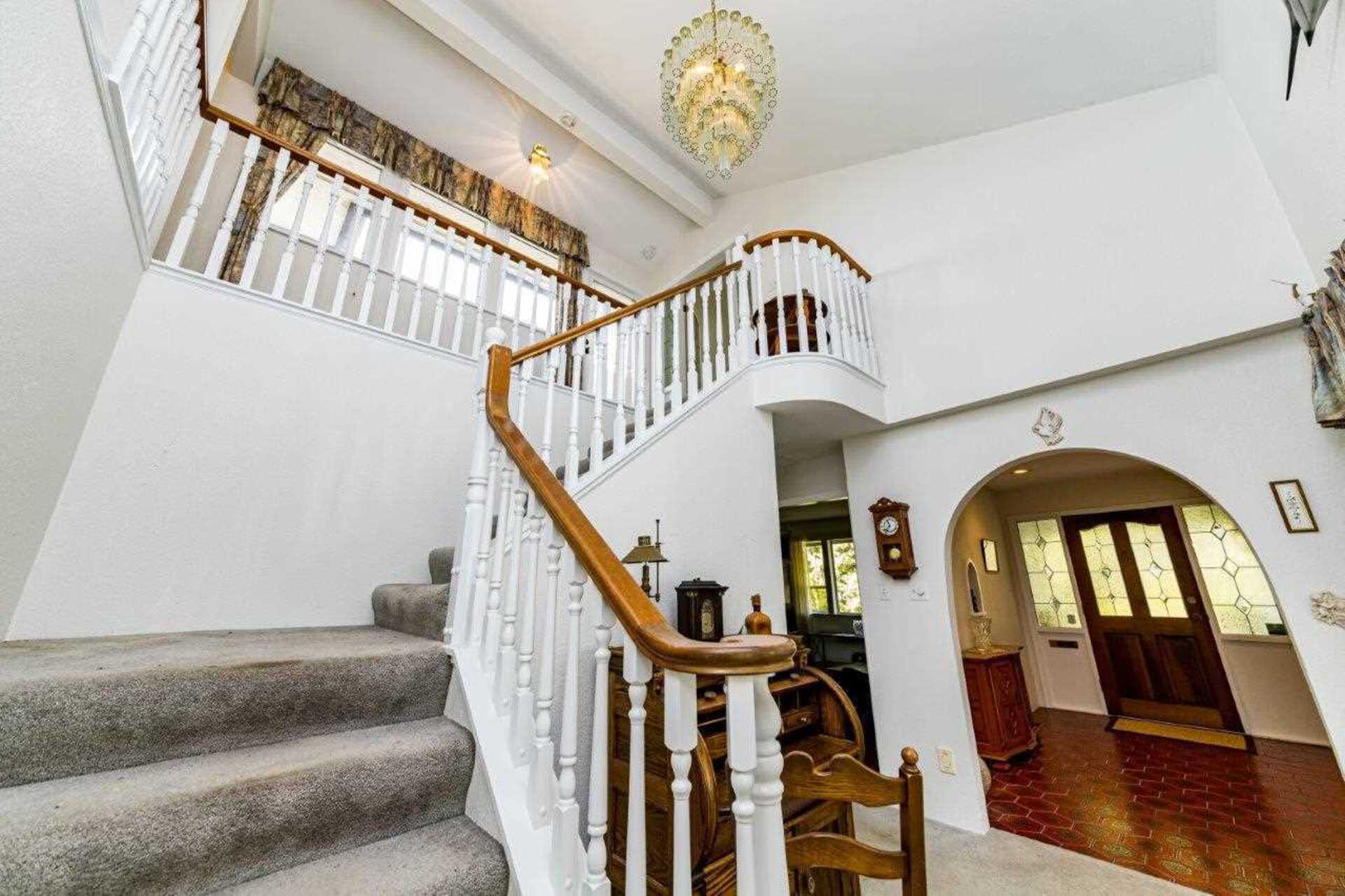 Spacious family home with views and located in prime Central Lonsdale location. This one owner Mediterranean inspired home features formal entry, large sunken living room with bay window and gas fireplace, separate office with oak floors, formal dining with views, large kitchen with oak cabinets and centre island, adjoining eating area with bay window, separate family room, interior courtyard and huge south-facing sundeck. Upper floor features 3 large bedrooms and 2 full bathrooms, including an oversized master bedroom with 4 piece ensuite and west facing deck with sweeping views. Lower level features a 4th bedroom, full bath, rec room, large storage room and attached double garage. Large south facing 55'x147' lot on sought after no-through street. Level lane access.