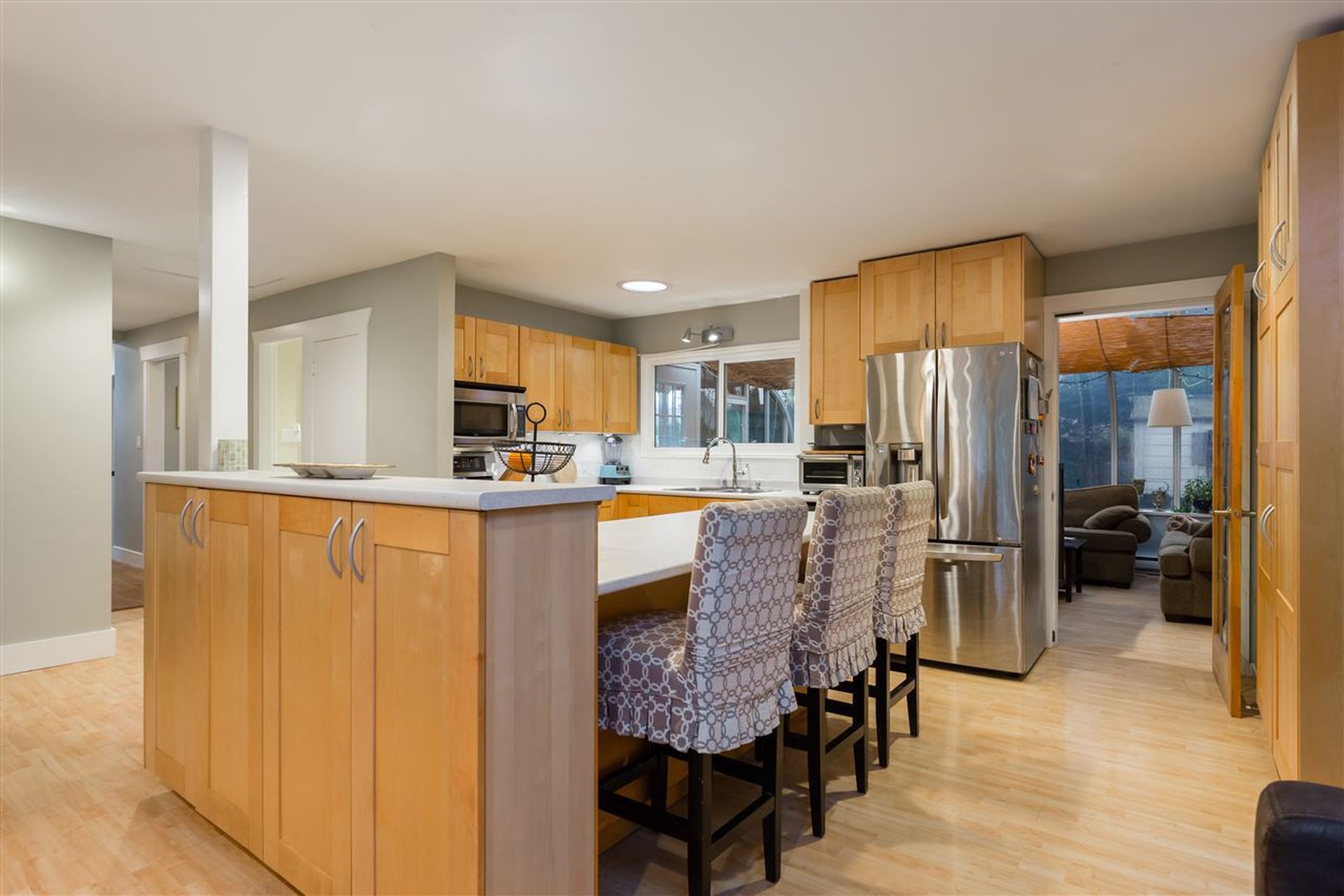 Community Proud Norgate! This fantastic Norgate home was renovated and expanded in 2014, to 2195 square foot, featuring 4 bedrooms, 3 full bathrooms with the outstanding master bedroom on the main floor with en-suite, two good sized bedrooms up with its own 4 pc washroom. Situated on a 6000 square foot level lot on a child friendly street this home is perfect for a young family. The kitchen is open to the dining room and steps away from the solarium that extends your living space. The home is conveniently located to Norgate Elementary School, parks, pediestrian walks, shopping, recreation and only minutes to downtown Vancouver.