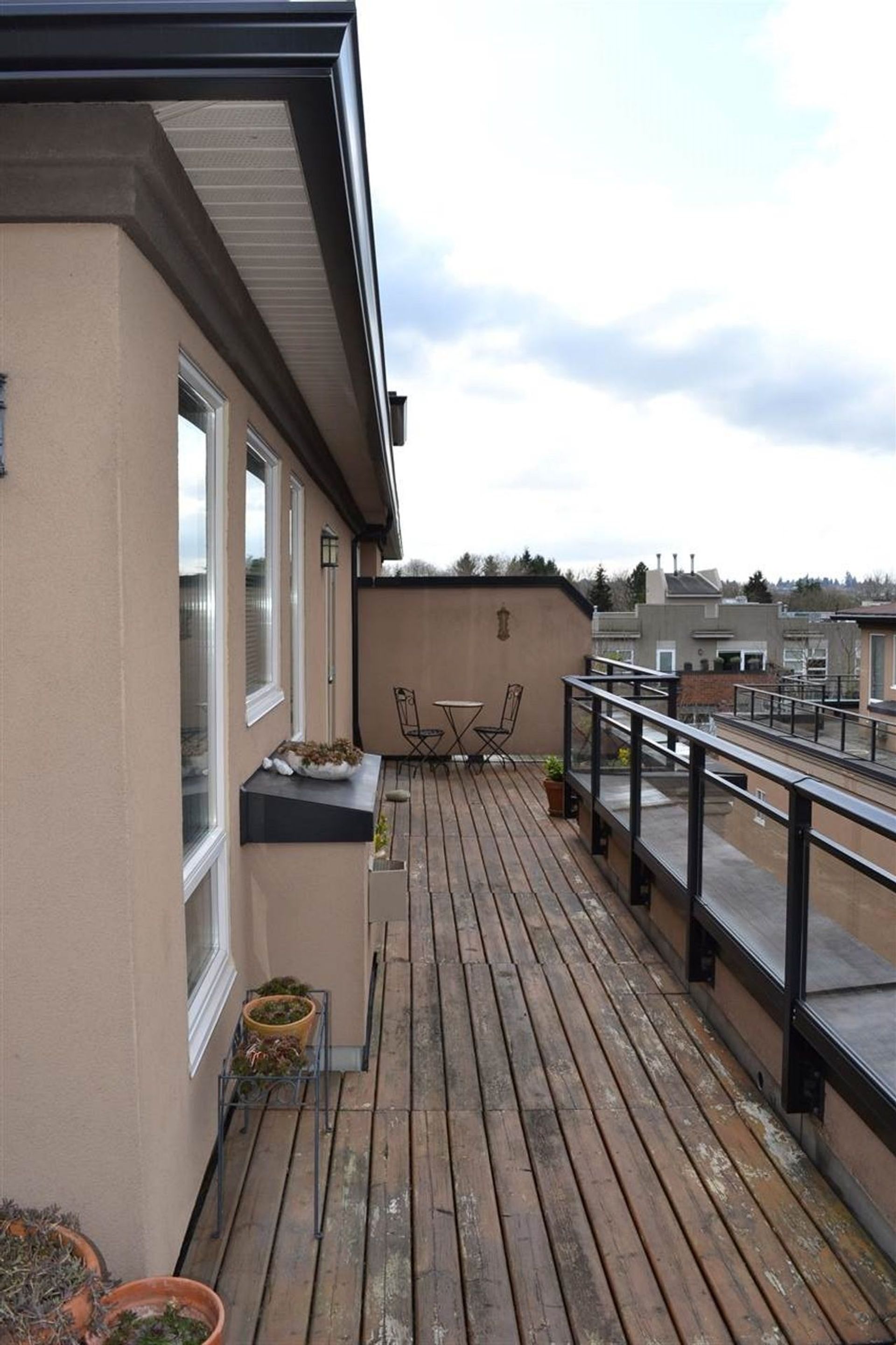 Top floor Penthouse with wrap around decks on West Corner of Arbutus Walk in the Savona building. Excellent quality throughout in a well maintained building. Unique one bedroom and den floor plan with bonus- 2 parking stalls, storage locker, and secure bike room. Approximately 400 square feet of outdoor living space. Crown mouldings, skylights, windows are floor to ceiling giving plenty of light in the suite. Walking distance to Connaught Park, Kits shopping, Restaurants, Cafes, Beaches & Transportation.Listing provided by: Macdonald Realty