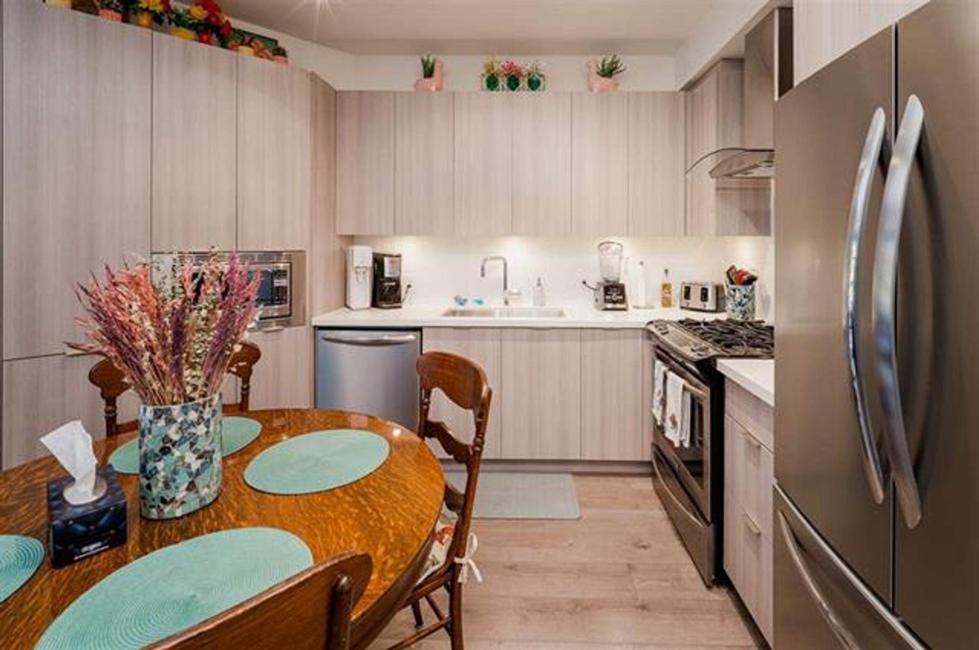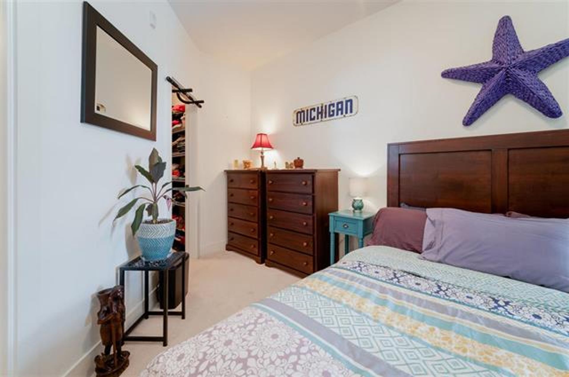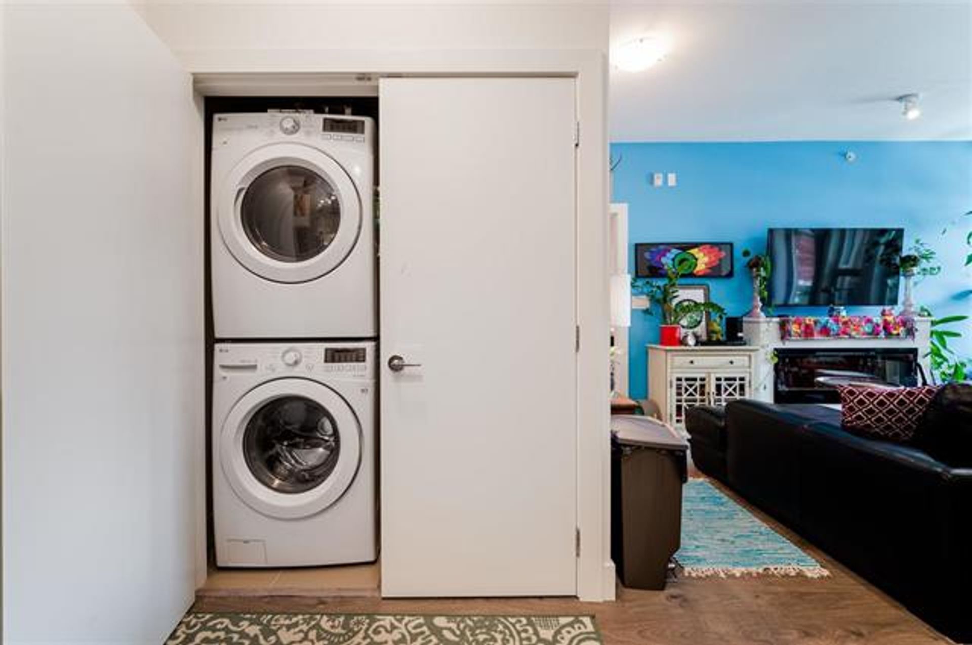 Seldom offered to market, welcome to this one-of-a-kind 1-bedroom home at DESTINY II in prestigious Ravenwoods.This stunning home of nearly 700 SQFT of indoor living faces south and includes an accommodating sized terrace that's literally perched over the infinity pond making it feel like a "year round vacation" (and yes BBQs are allowed!).Some of the notable highlights include: stainless steel appliances (gas range cooktop), 9' ceilings, designer finishings, expansive windows and extensive storage. Technically a woodframe building, homes on the ground level are enclosed in concrete, allowing for complete noise protection.One parking and a locker is included. Destiny is renowned for its quality finishing, and high end amenities.