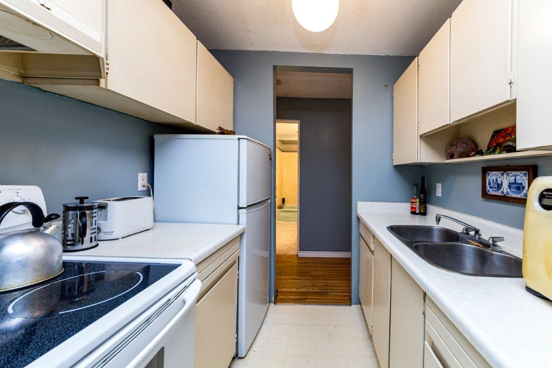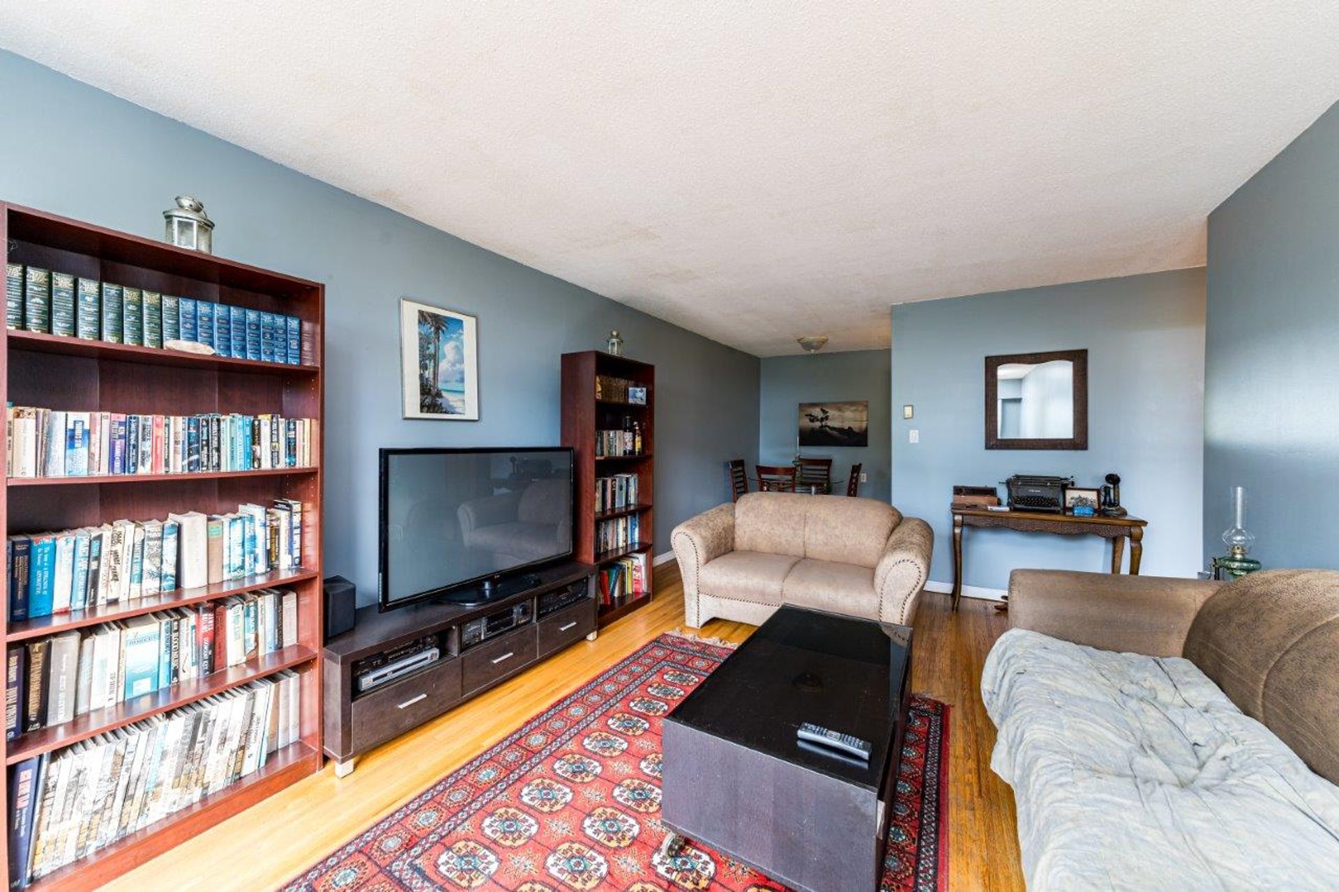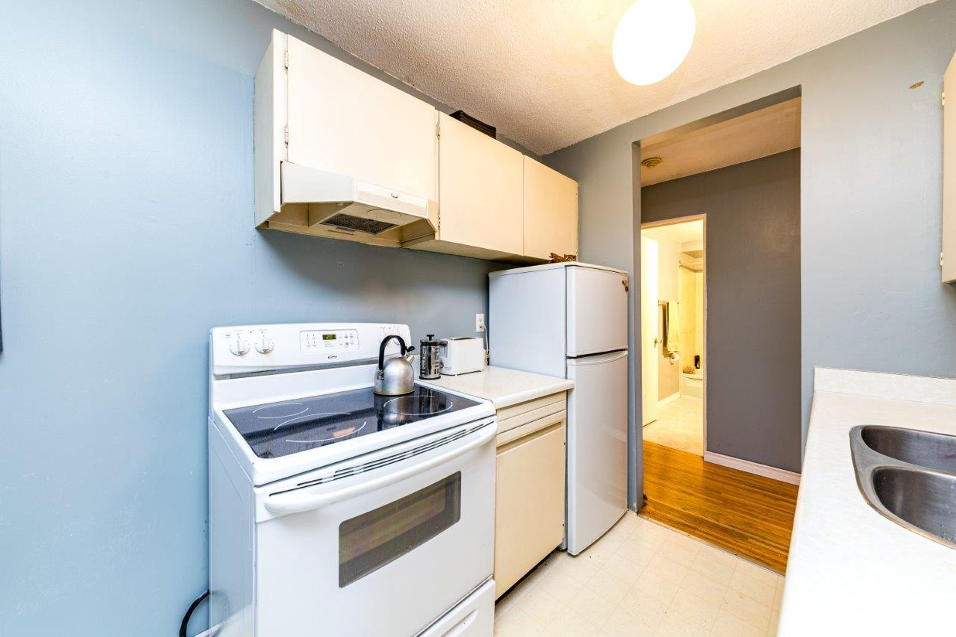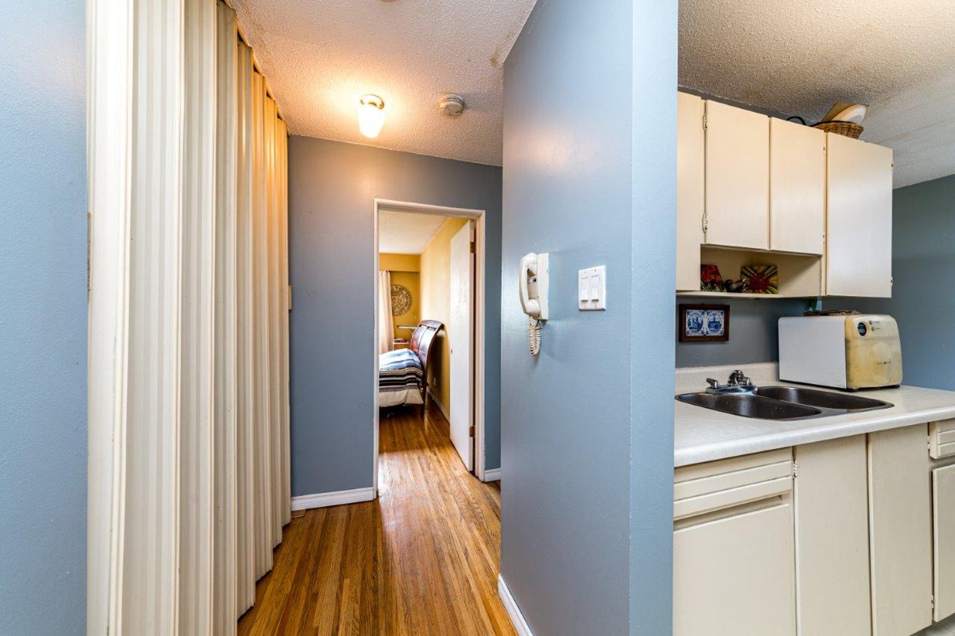 Lots of opportunity here. Mountain facing one bedroom unit with hardwood floors, large living room, hot water heat, and spacious bedroom.Building features low maintenance fees, in house caretaker and amazing central location.Unlimited rentals, 19 plus and no pets.