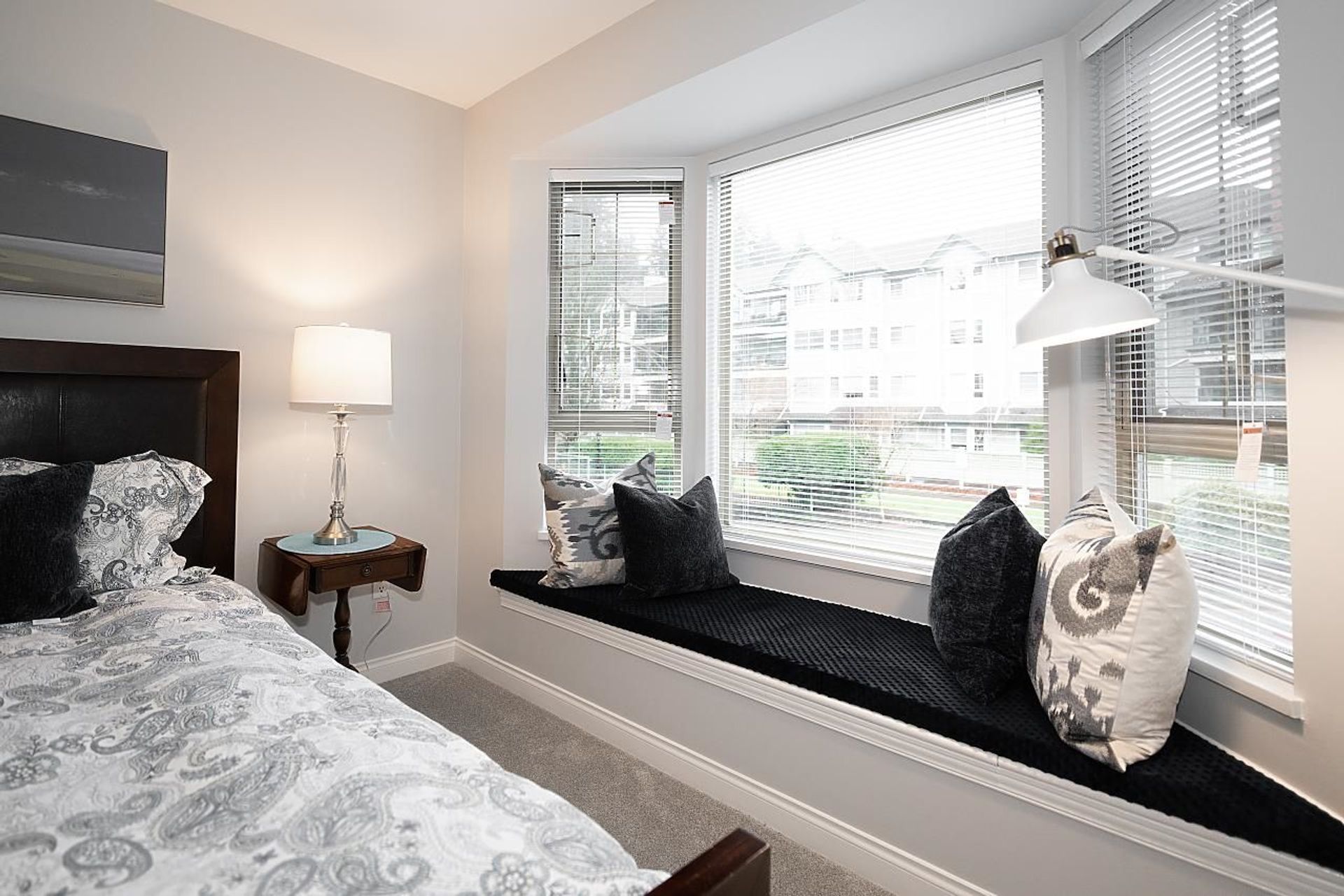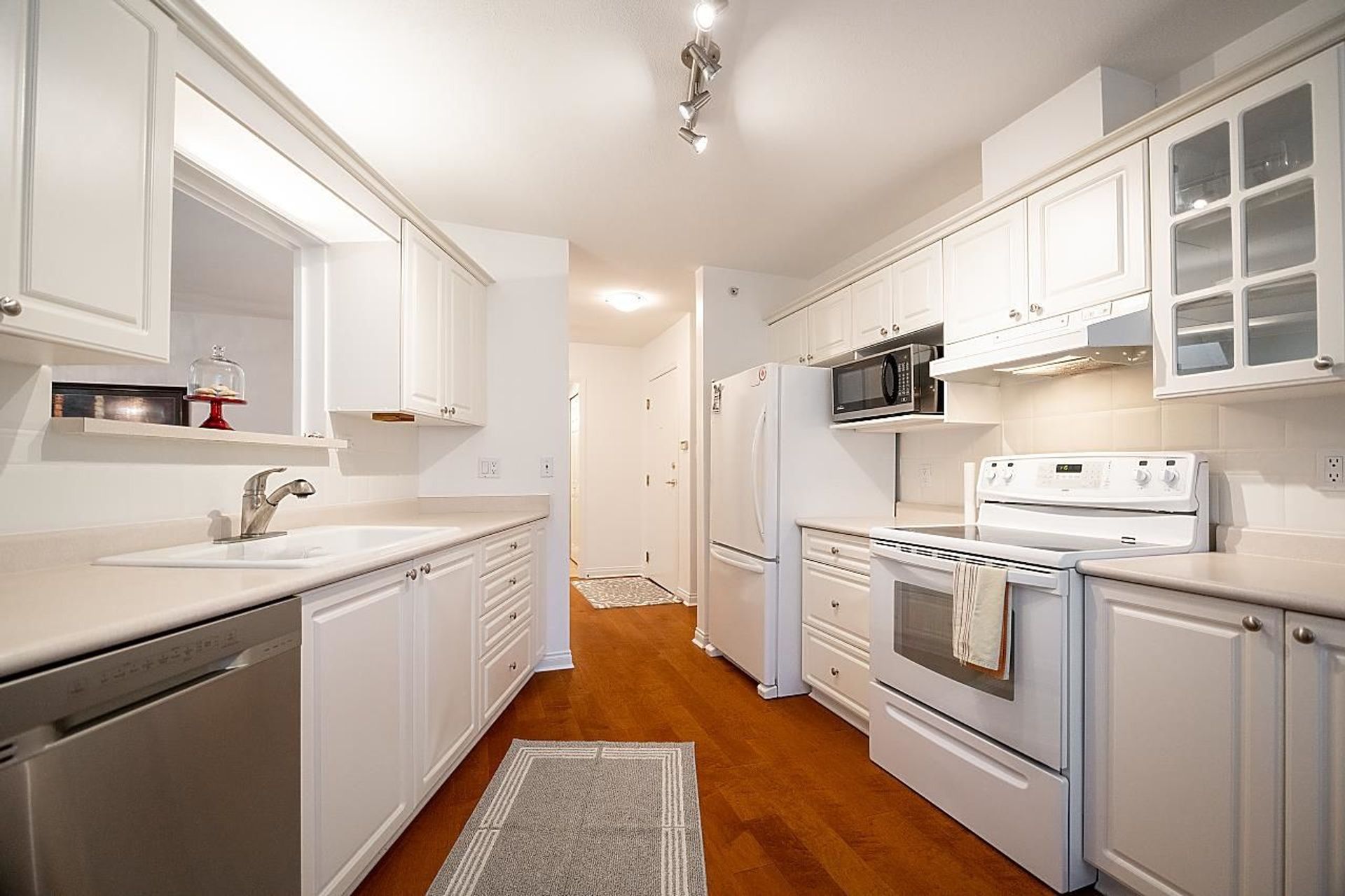 Top floor, vaulted ceilings, 2 skylights and expansive windows allow natural light to pour through this extremely private oasis.Impeccably maintained 2 bedroom, 2 bathroom, 1141 sqft suite with huge master bedroom, big enough for a king size bed and room to spare, walk-in closet and ensuite master bath.Professionally painted, with new carpets, new blinds and lighting, gas fireplace, large storage room down the hall (same level as suite), plus a storage on parking level and in-suite laundry room. 2 parking stalls.Located in the Classics, an extremely well managed 50-unit complex at the end of a cul-de-sac in the Northlands neighbourhood.Only steps from Trails, Parkgate Mall, Shopping, Park, Restaurants, Transit, Community Centre, Library, Tennis Courts, and Golf courses.