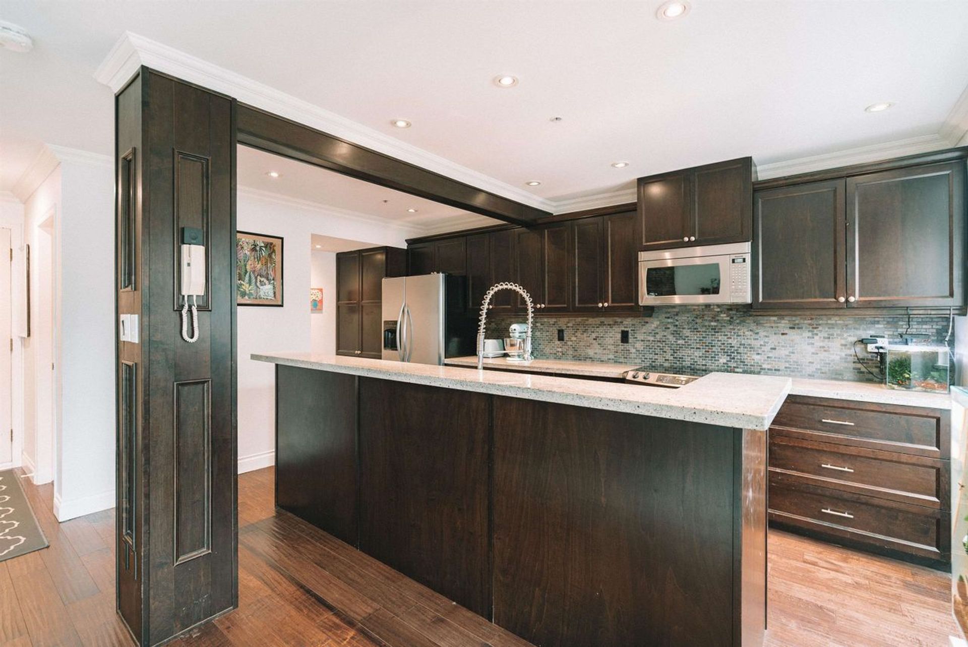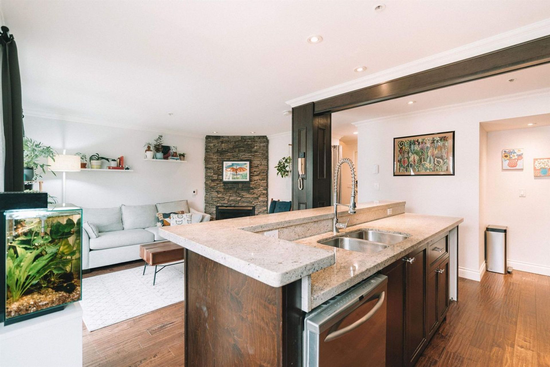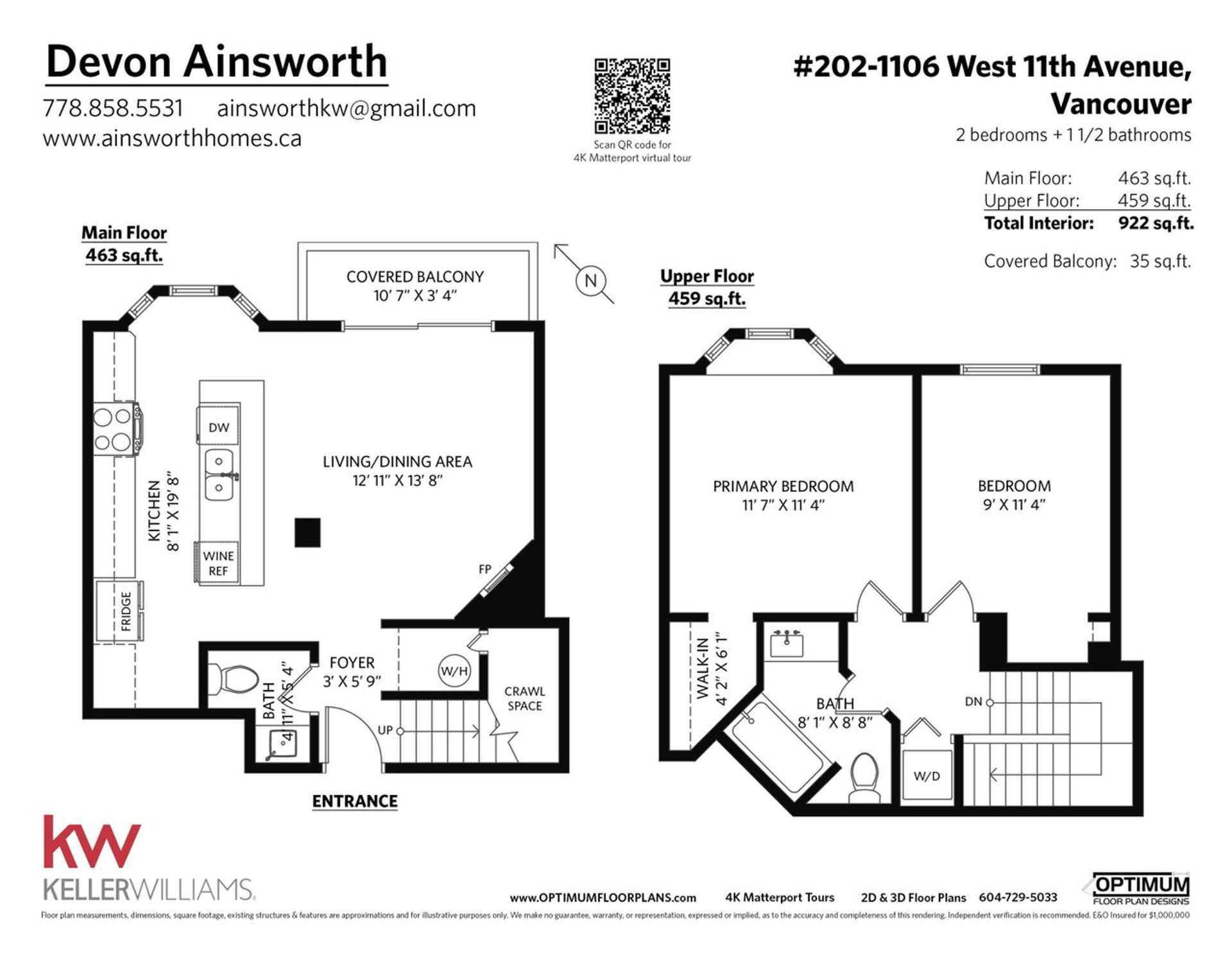 Welcome home to this gorgeous 2 level townhouse style condo in the heart of Fairview Slopes!Featuring a huge chefs kitchen with no shortage of cabinetry and updated appliances - including a brand new in suite washer/dryer and hot water tank - and smart home features throughout.Main floor offers open concept living with hardwood floors and a cozy gas fireplace set on a beautiful feature wall. Enjoy views of the tree lined street below on your updated, covered balcony.Upstairs has 2 ample sized bedrooms, laundry, and a full bathroom with a deep tub and heated floors (plus the the convenient 2 piece bathroom on the main!) This self managed, pet friendly building has taken great care over the years to maintain the integrity of the property. Centrally located on a quiet side street.