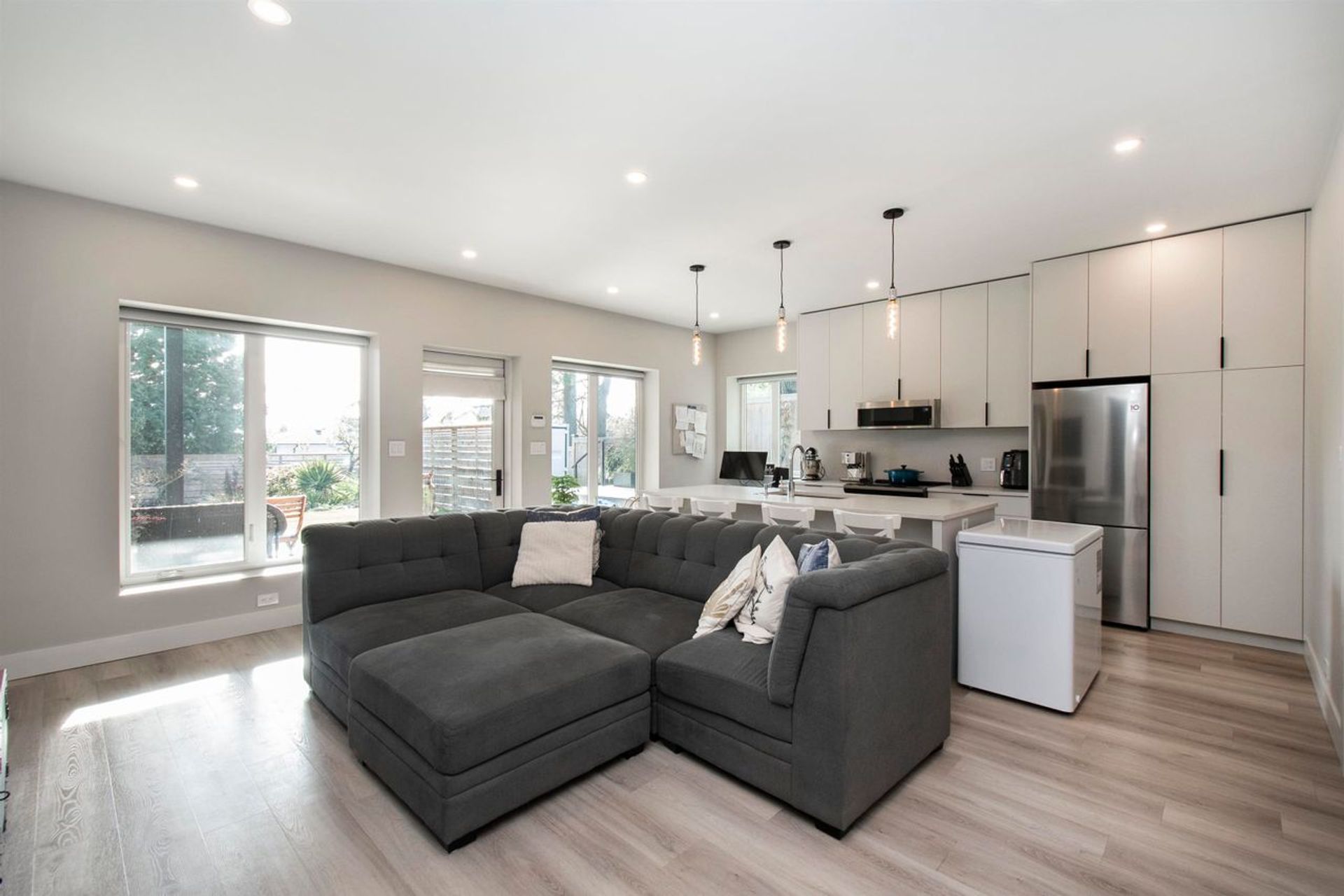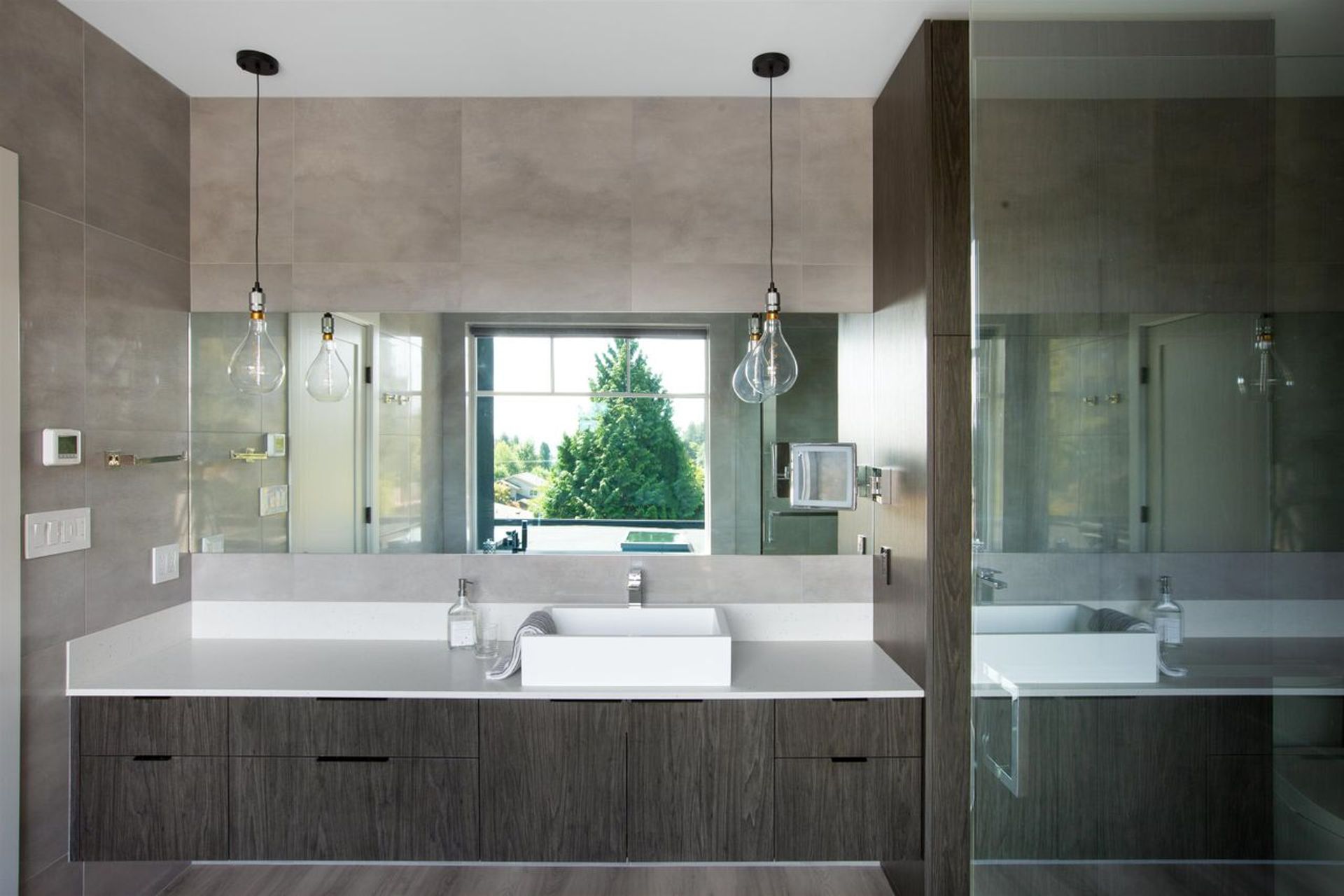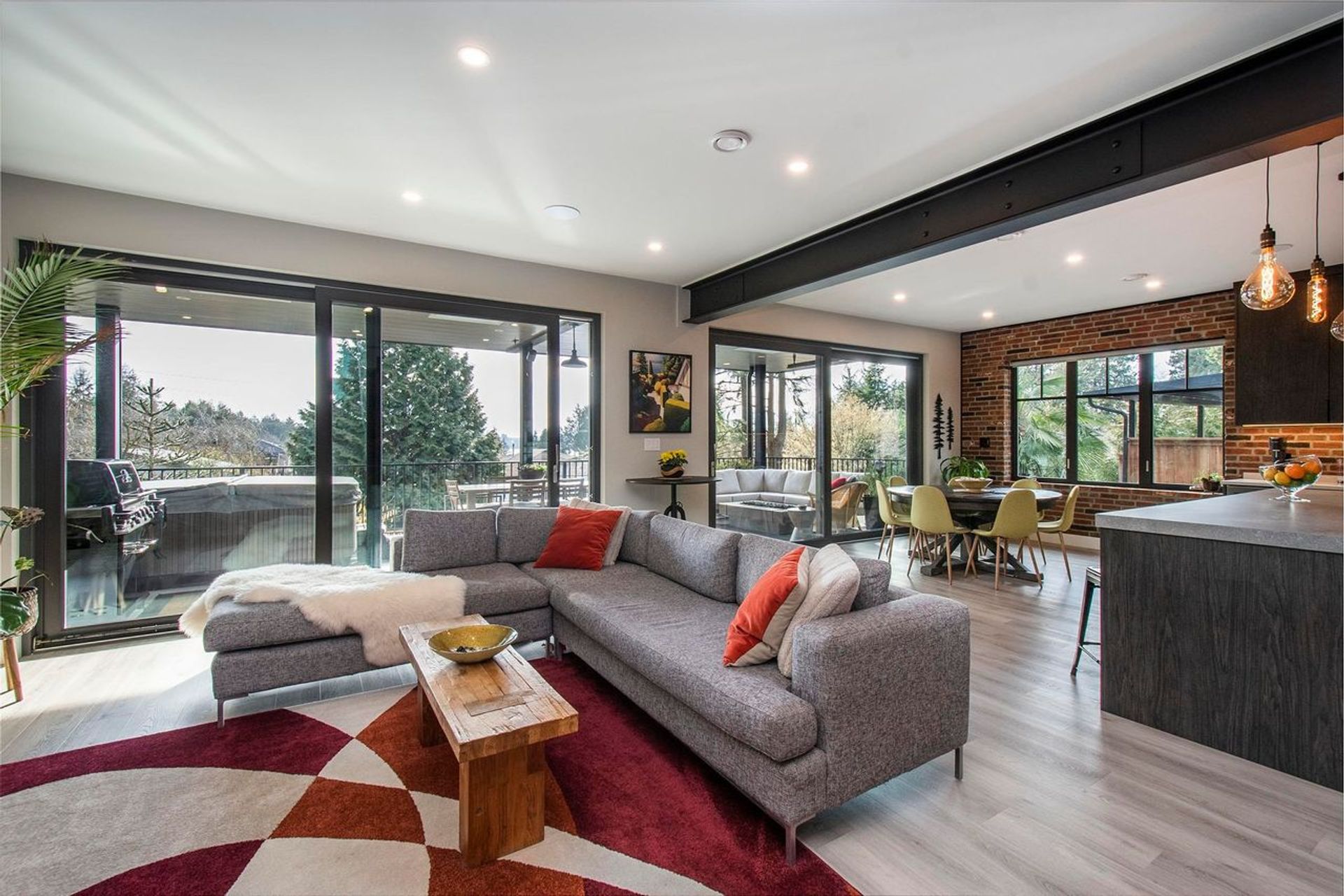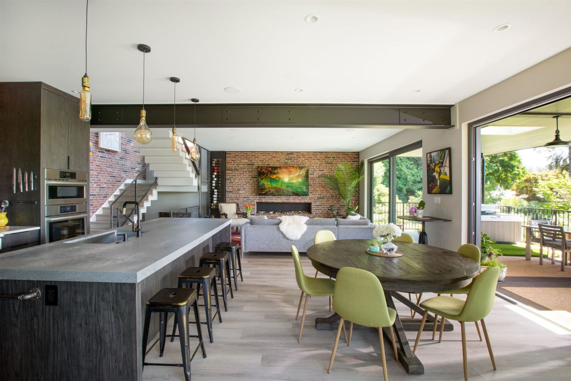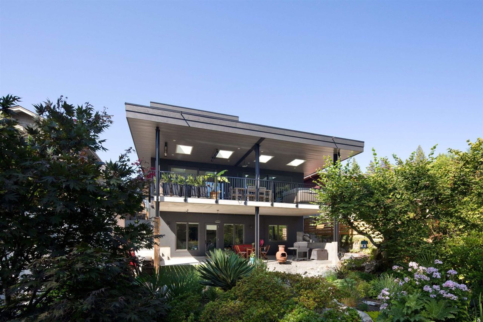 This stunning contemporary build features brick and steel blended with a modern warmth reminiscent of a NY loft. This magnificent south facing home boasts city and water views on a centrally located, no-through street.Main floor features dramatic open living plan with exposed structural beam and floor to ceiling lift and slide doors opening onto a 464 sqft covered deck with hot tub and fire table. This house is an entertainer's paradise!Upper floor includes three generous bedrooms including a large master suite with fabulous view, four piece ensuite and custom walk-in closet.Lower level includes a gym and a fully self-contained two bedroom legal suite with covered patio space looking onto the gorgeous, professionally landscaped, mature garden.