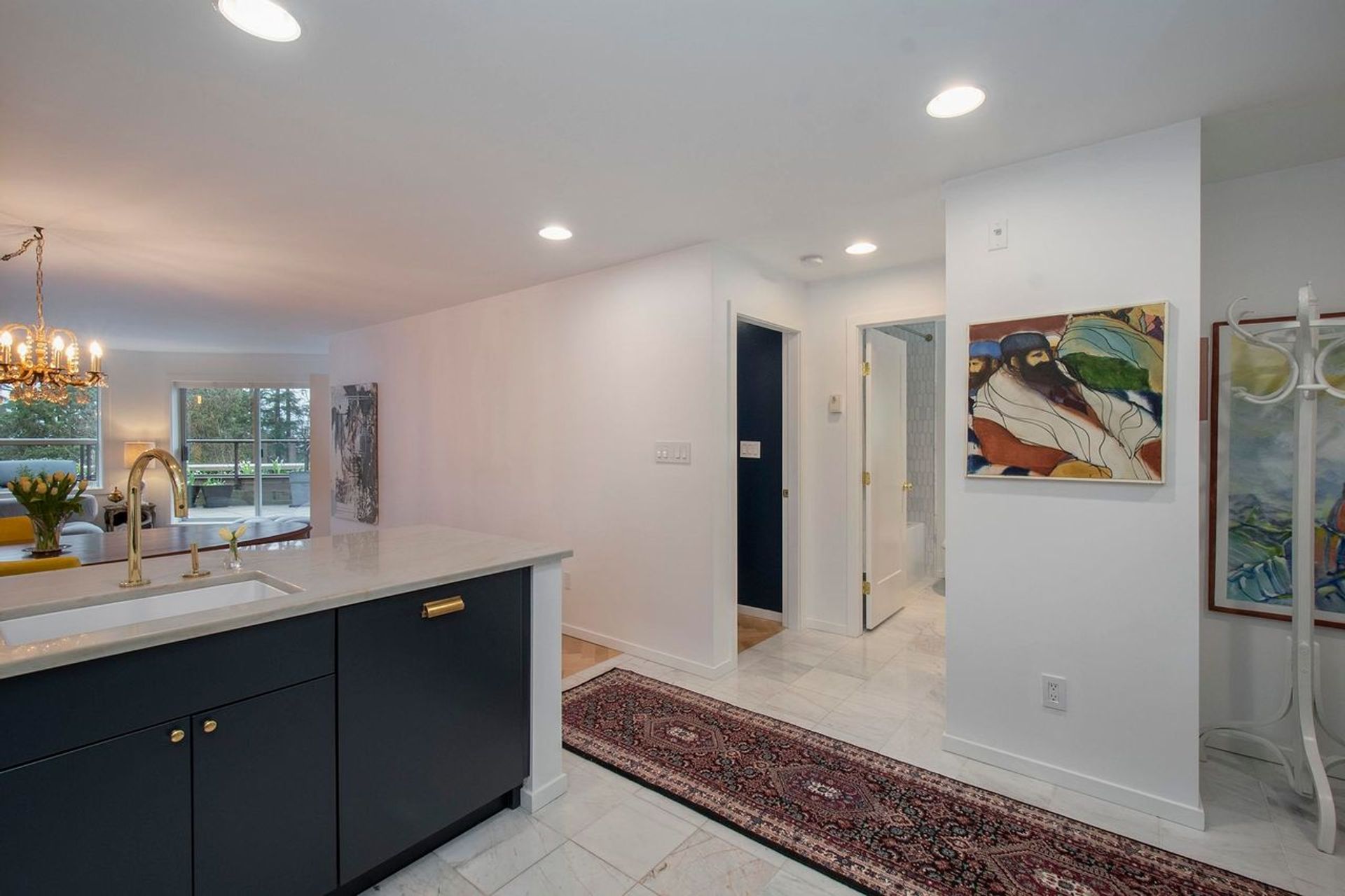 Bring your house sized furniture! Luxury swaddled in nature.Renovated suite with marble and herringbone birch floors; spacious kitchen with quartzite counters, brass pulls and faucet, marble backsplash, Miele dishwasher, Fisher Paykel fridge, KitchenAid convection range; marble bath with champagne brass fixtures from Crosswater London, smart bidet toilet, backlit mirror with dimmer and defogger; laundry room with custom cabinets, LG steam washer and dryer; cedar lined closets with custom fittings.Watch eagles play while you sip wine on the expansive deck and admire the mountain view through the forest in your backyard.The strata is in the final stage of a fully funded $2M membrane replacement, with a proactive council.One dog or cat welcome. Two side-by-side parking spaces!