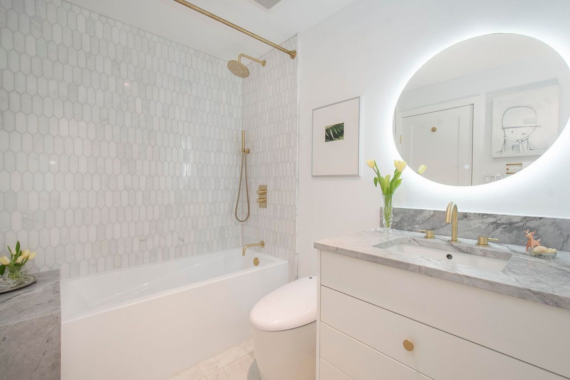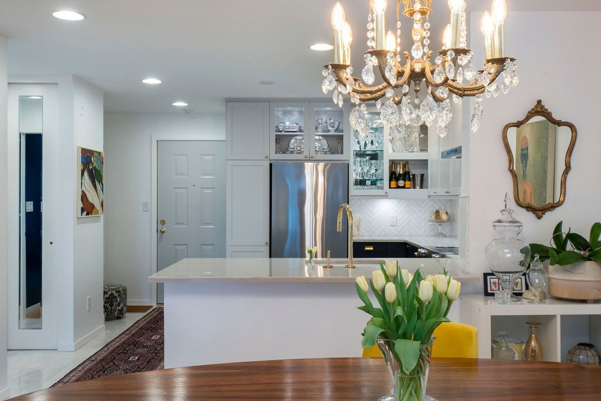 Bring your house sized furniture! Luxury swaddled in nature.Renovated suite with marble and herringbone birch floors; spacious kitchen with quartzite counters, brass pulls and faucet, marble backsplash, Miele dishwasher, Fisher Paykel fridge, KitchenAid convection range; marble bath with champagne b