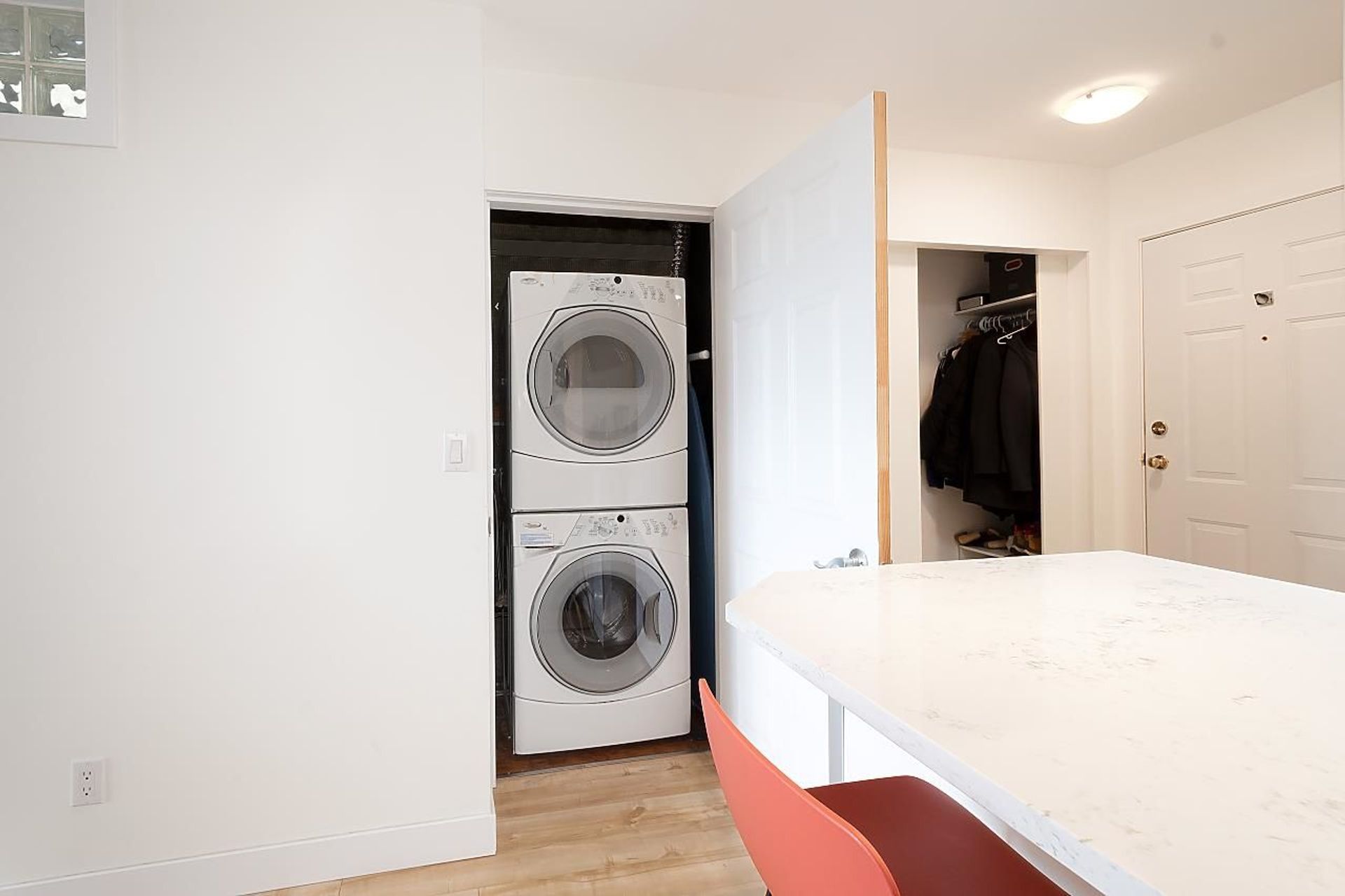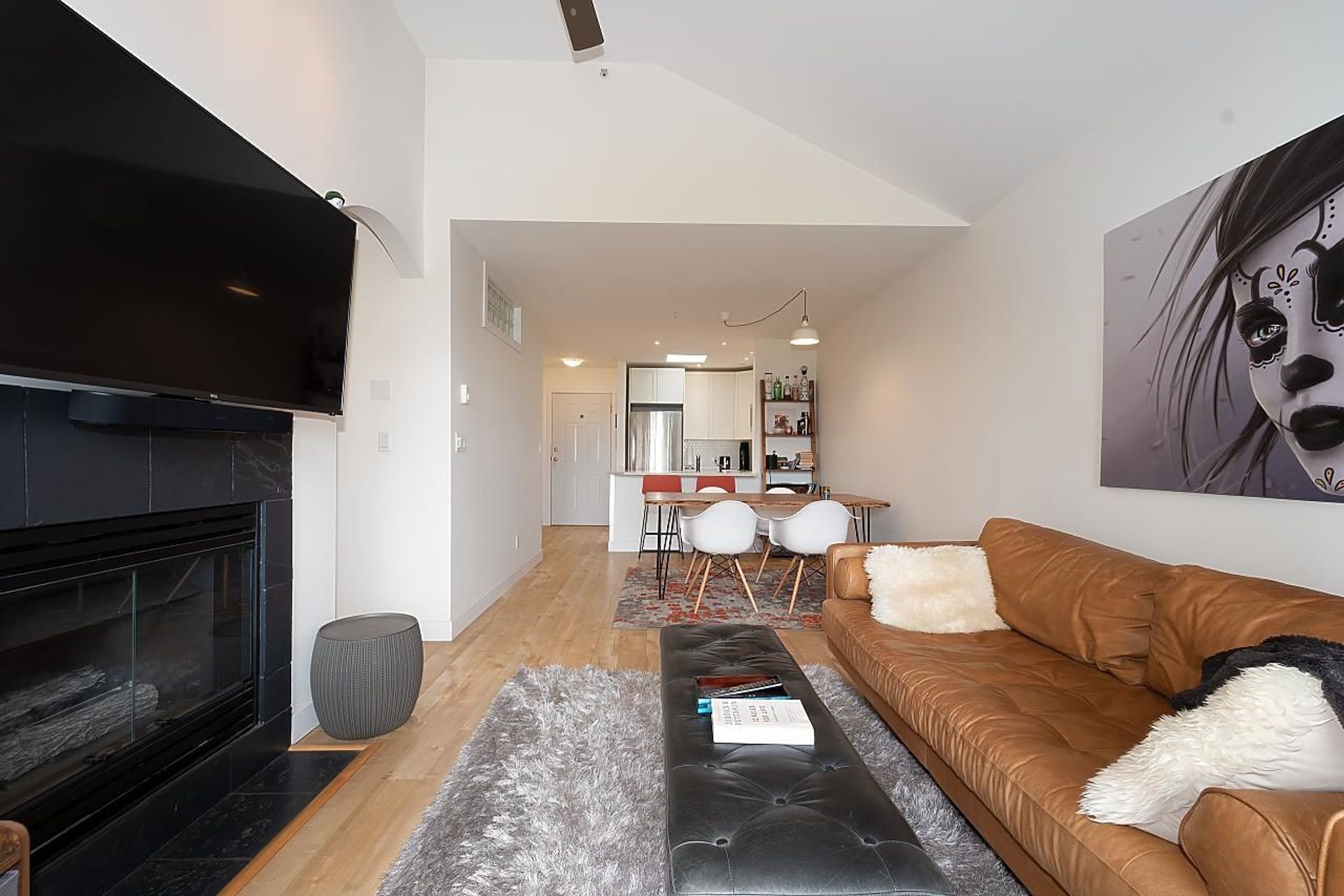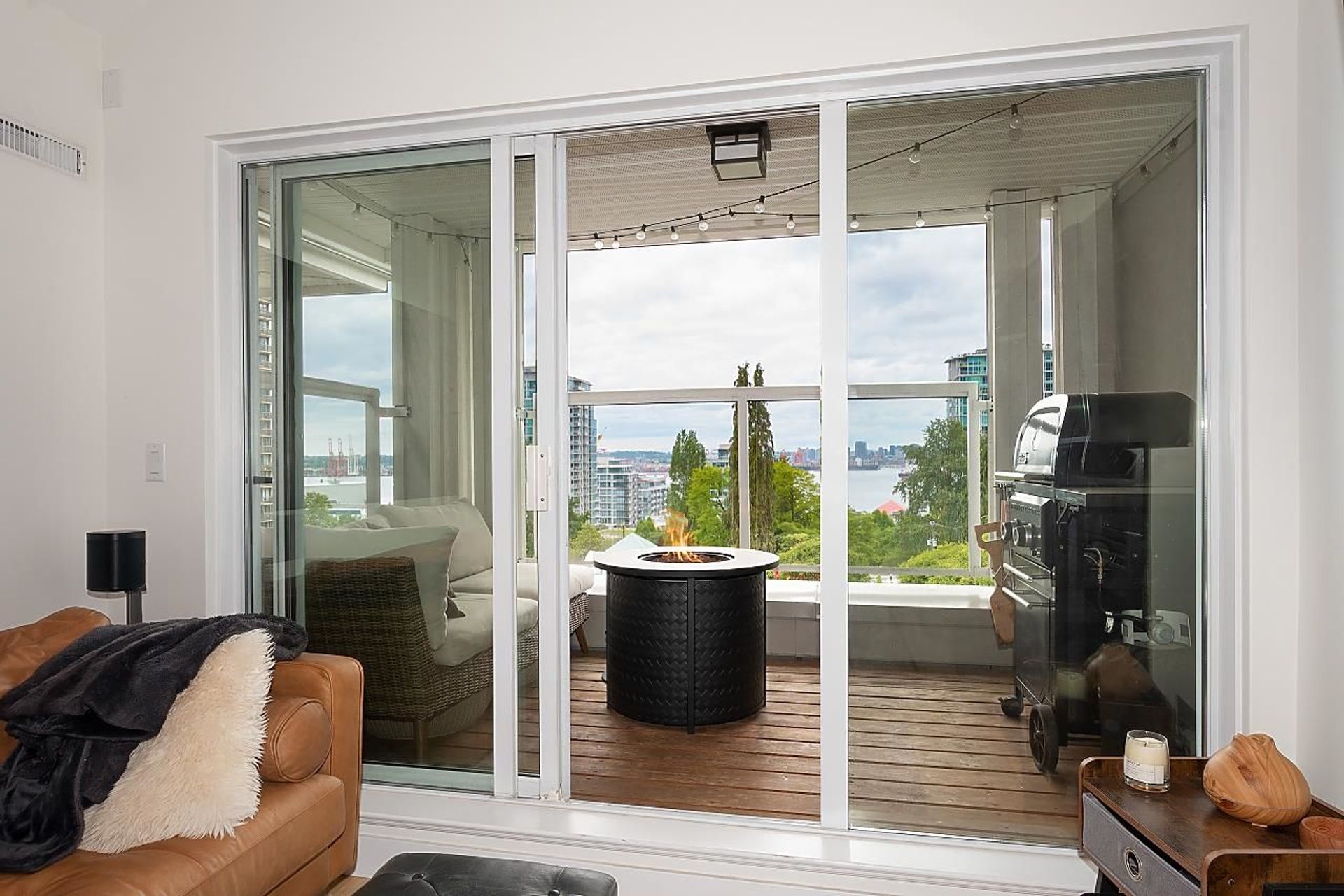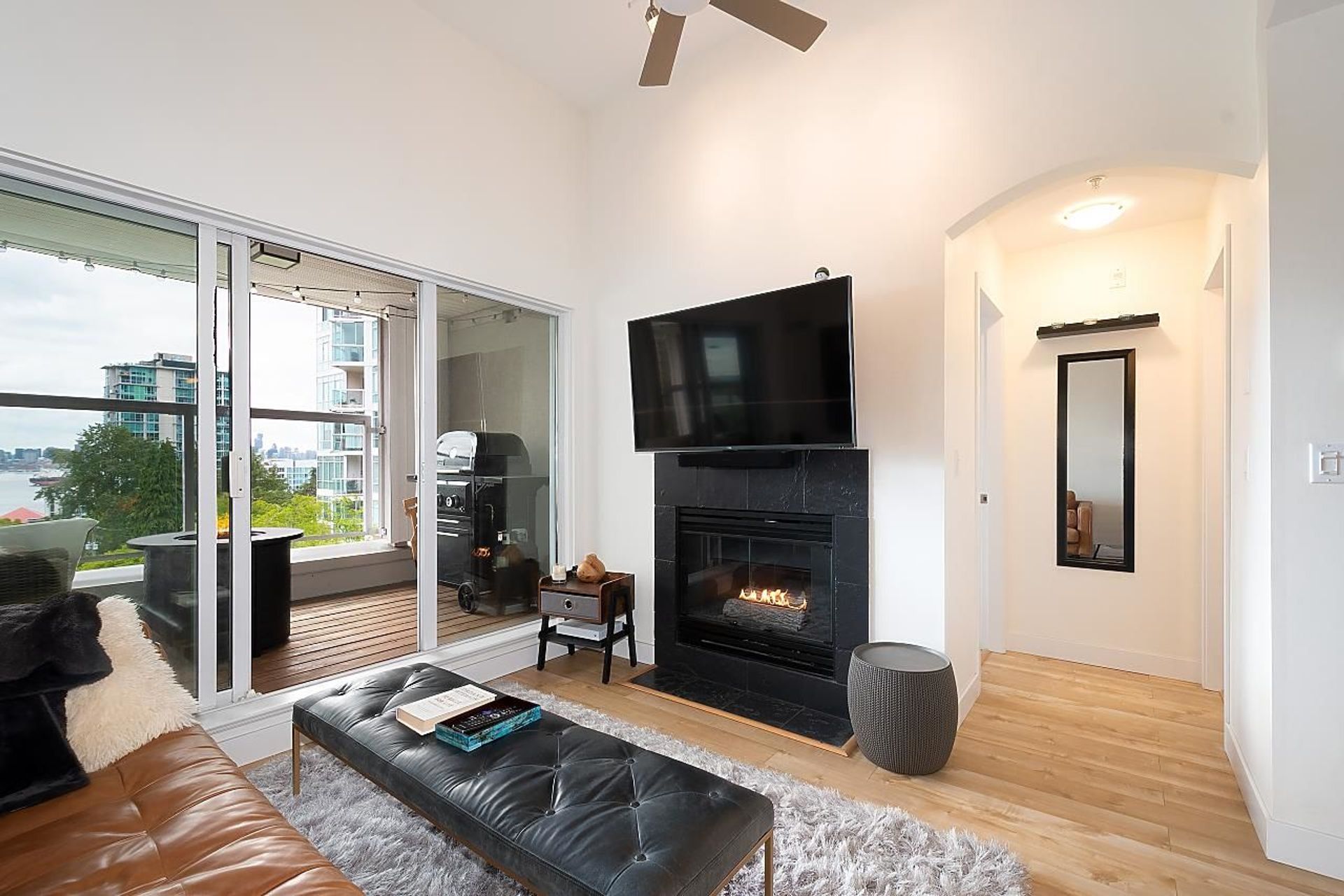 Top floor South facing, view suite on the quiet side of the building! Fully renovated in 2016, you will be impressed with this home the moment you walk through the door!The open concept layout offers a view out towards the harbour and city from all areas. The floor plan is generous with a large kitchen, full sized dining area and comfortable living room with vaulted ceilings and a cozy gas fireplace.There are skylights in the kitchen and bathroom for extra brightness. Enjoy your fully covered patio all year long! The building itself has undergone tons of upgrading including a full enclosure project (rainscreened stucco, windows, balconies, podium membrane, roof) in 2009.In suite laundry, one parking, one storage and two dogs or cats allowed!