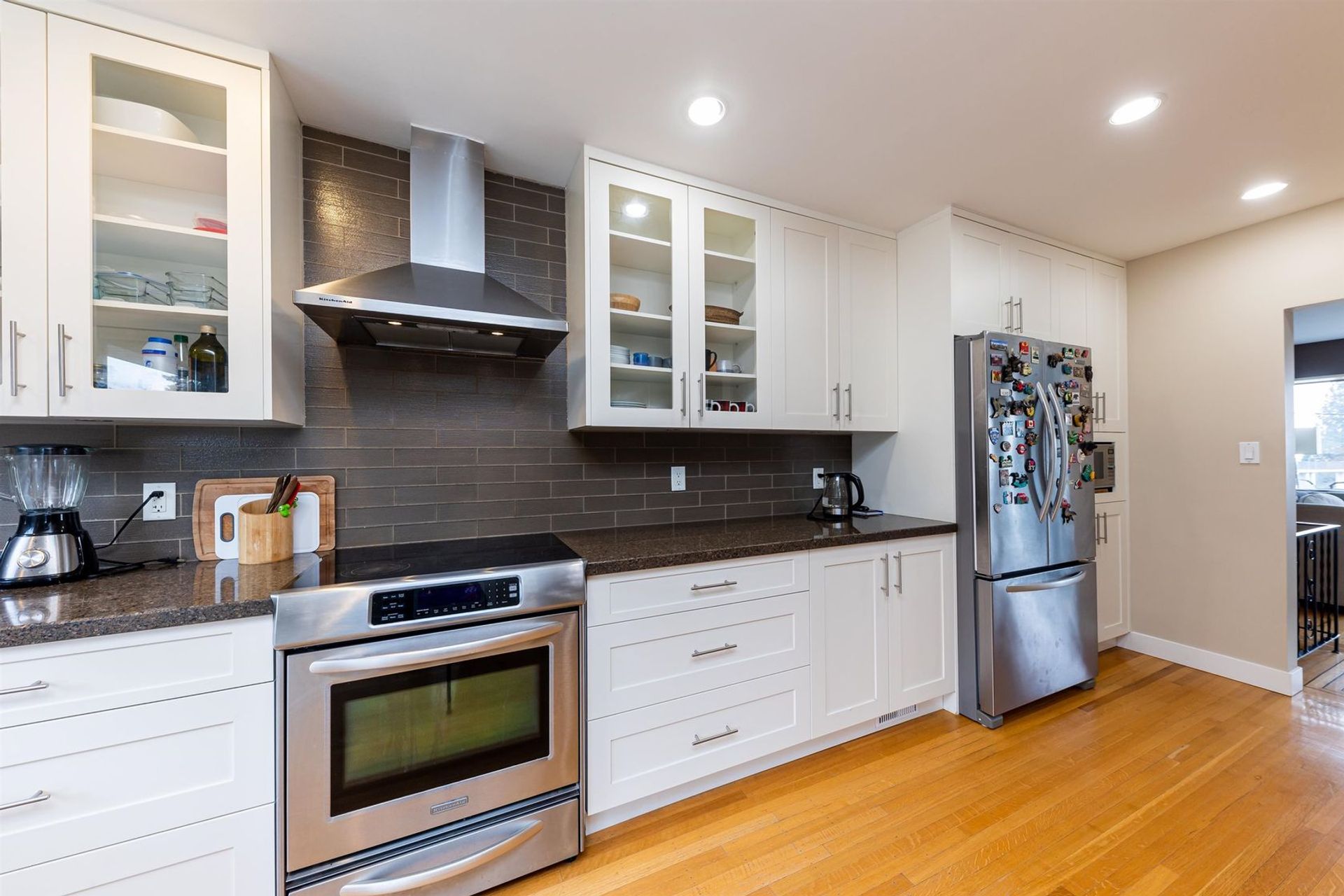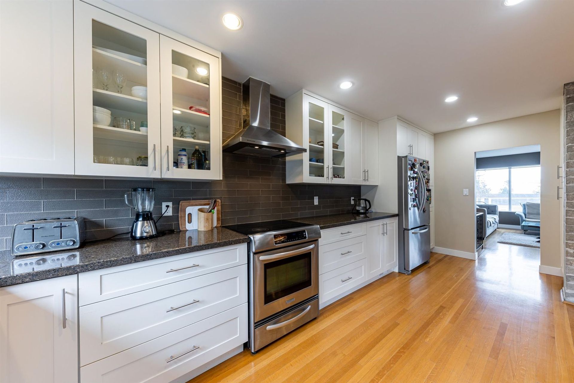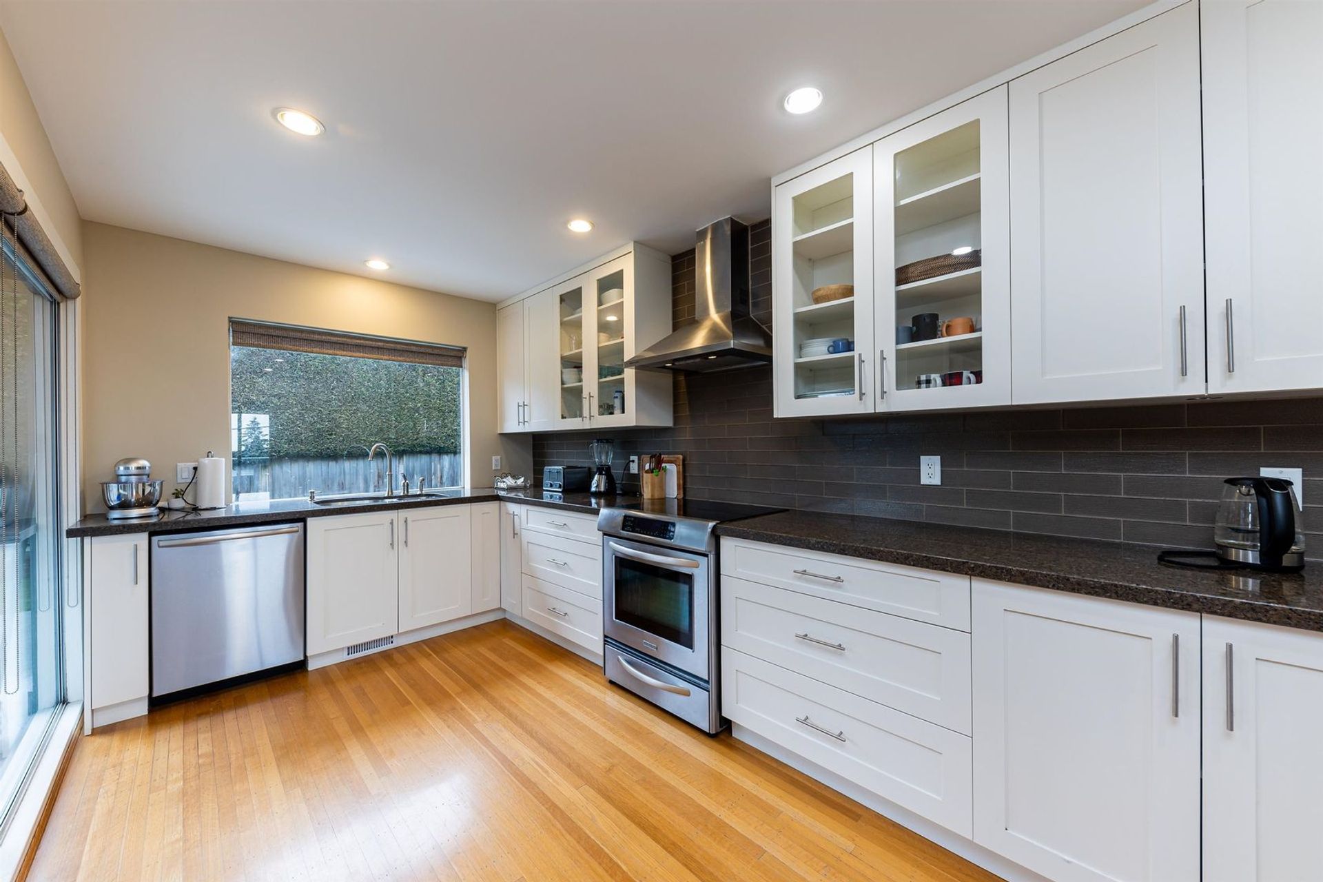 Beautifully maintained and updated home on sought after street.Rare four bedrooms, all on one level. Perfect for entertaining with a large open plan living room and dining room with access to huge South facing front deck and rear covered deck for BBQ's.Updated Shaker kitchen with granite counter top