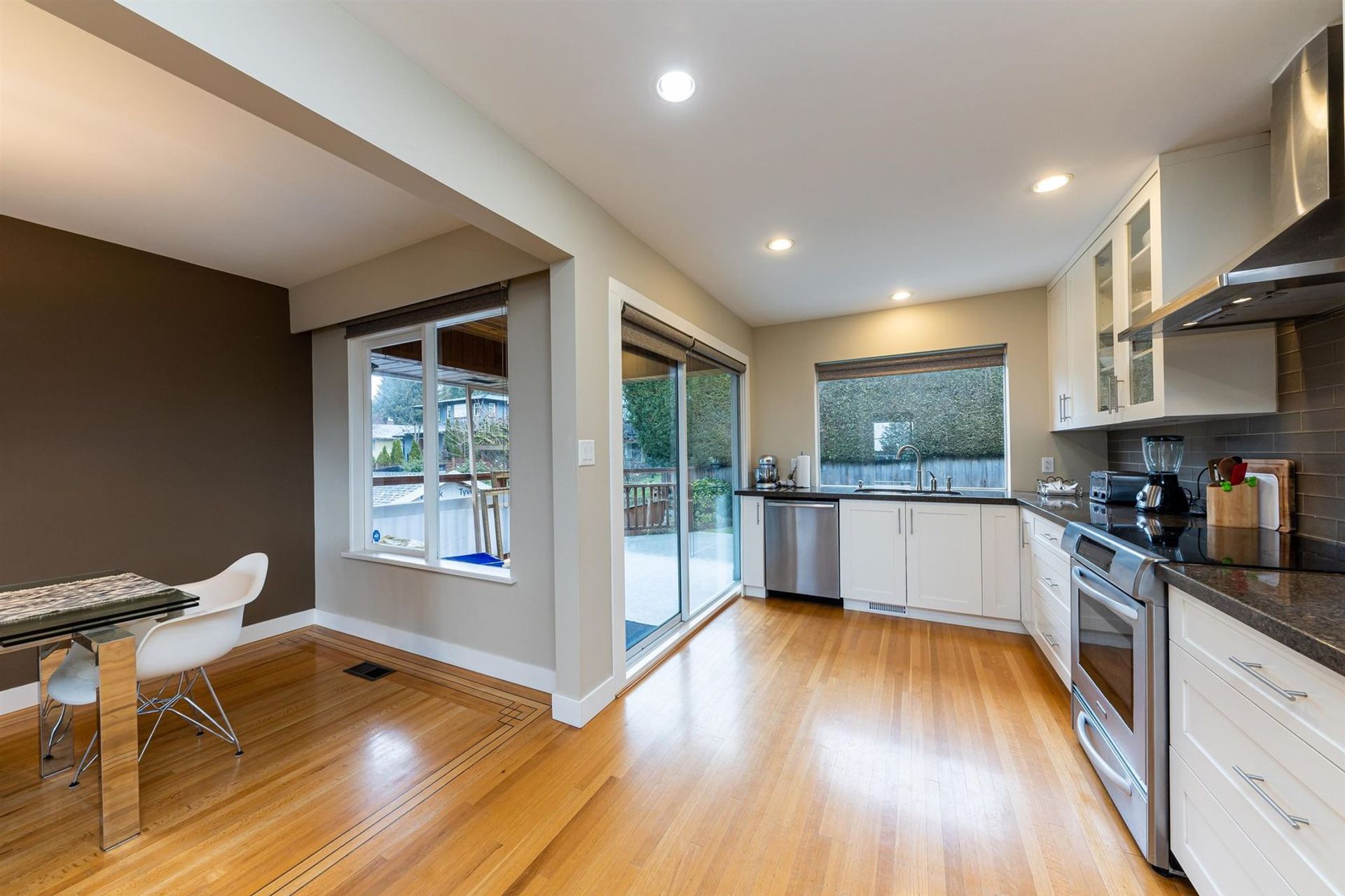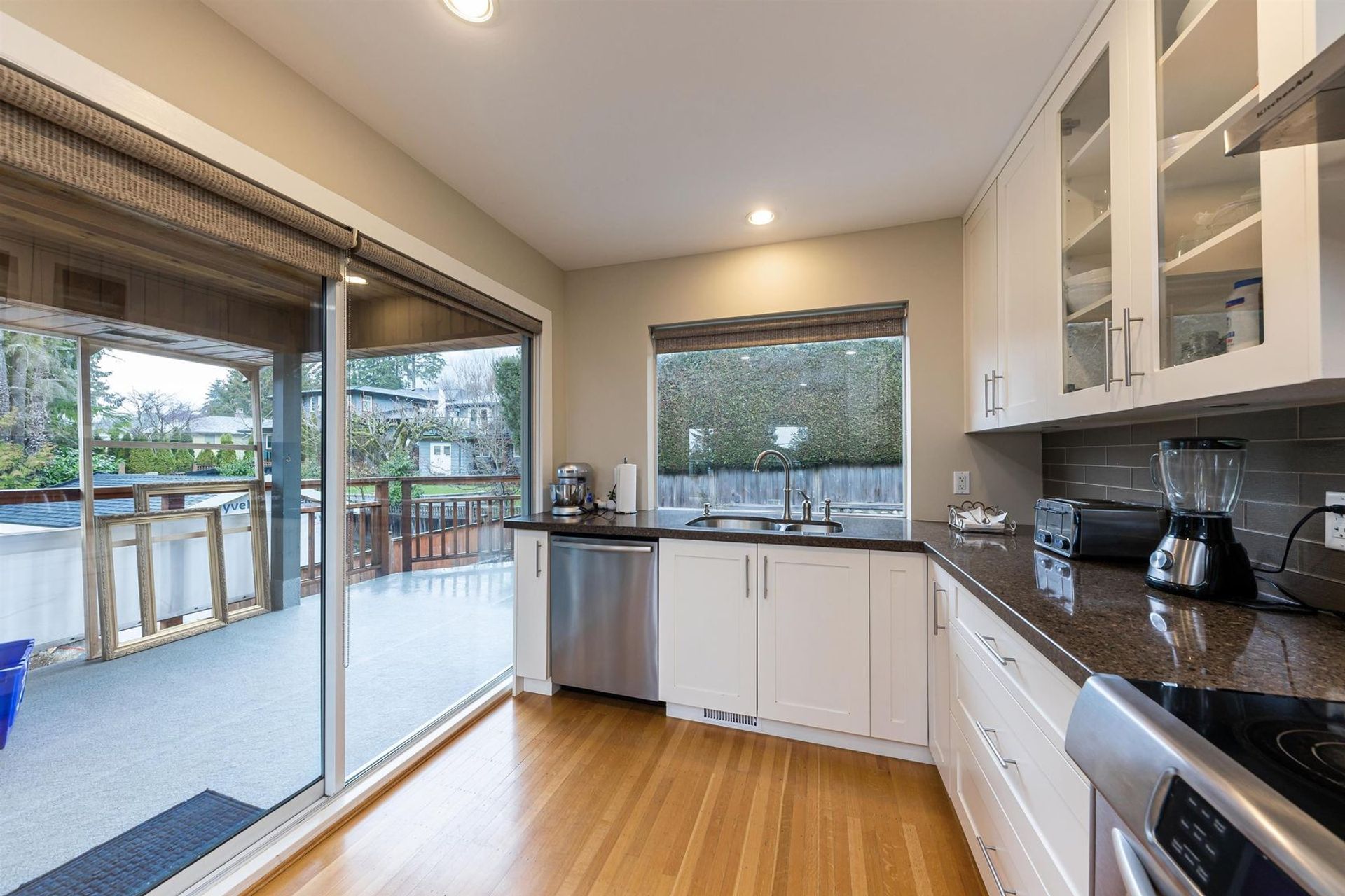 Beautifully maintained and updated home on sought after street.Rare four bedrooms, all on one level. Perfect for entertaining with a large open plan living room and dining room with access to huge South facing front deck and rear covered deck for BBQ's.Updated Shaker kitchen with granite counter tops and stainless appliances and clear view of the backyard to watch the little ones.Gleaming hardwood throughout. Lower walk out level featuring cozy rec room, second bathroom, huge laundry/mudroom and tons of storage.Mountain and partial city views. Level yard and driveway with double carport.Walking distance to Canyon Heights Elementary and Handsworth Secondary.