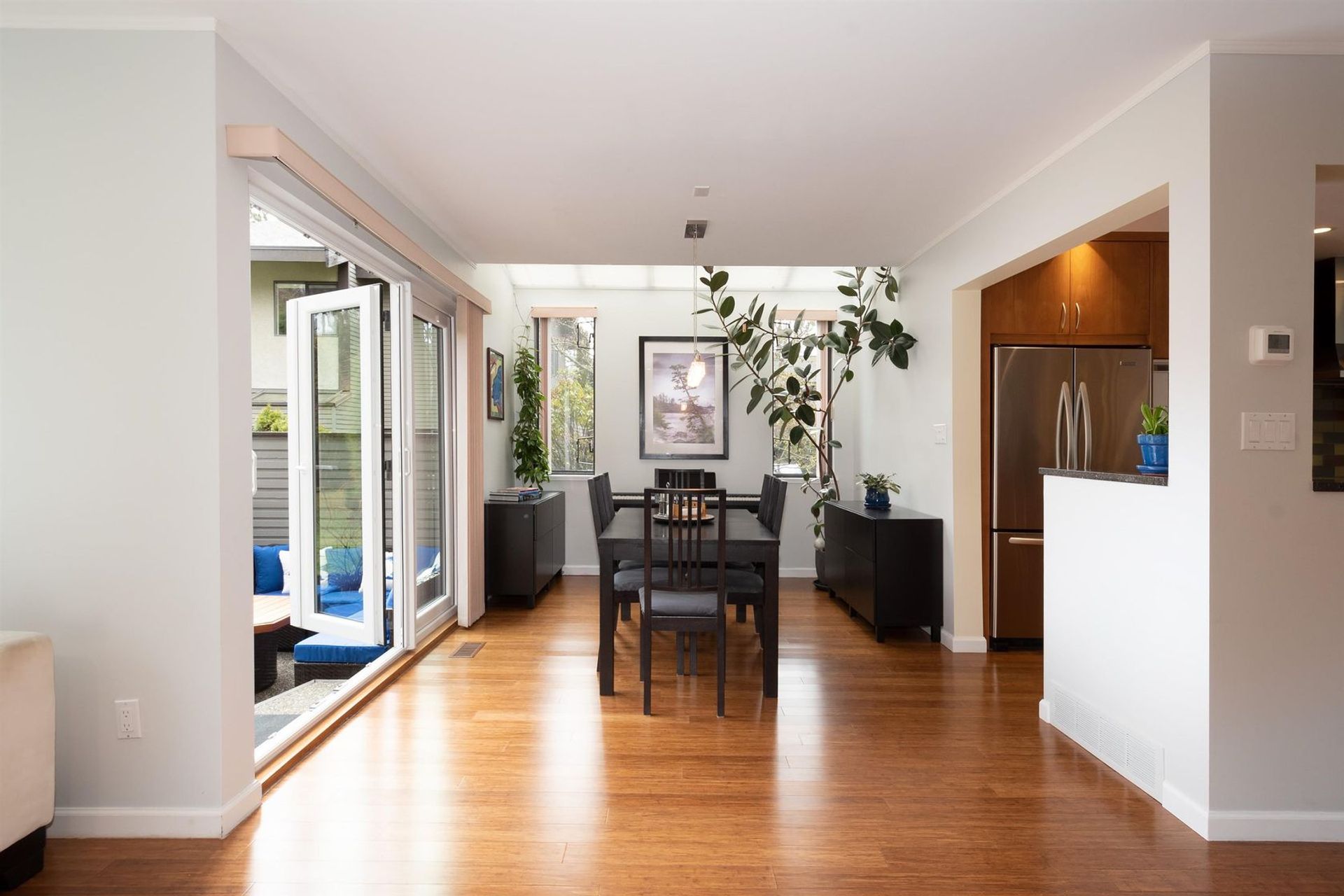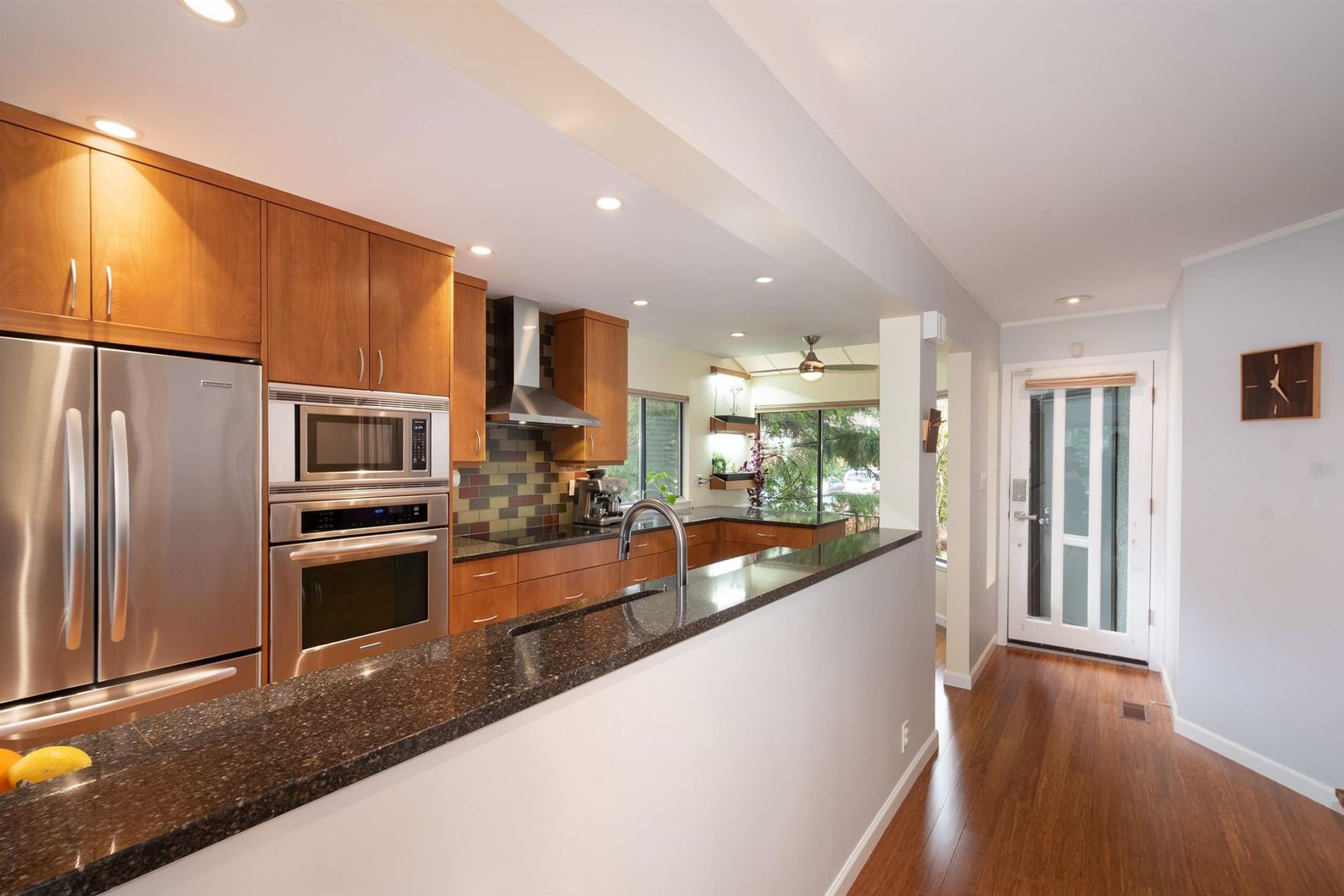 A harmonious floor plan provides grand living on the main, three flexible bedrooms upstairs, plus a basement level with a family room, a fourth bedroom (connected to it's own en-suite bathroom), a laundry room & an abundance of storage solutions.End unit with majestic vaulted ceilings, inspiring