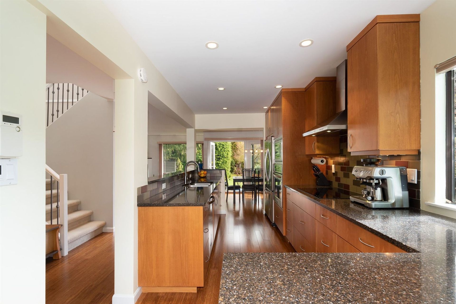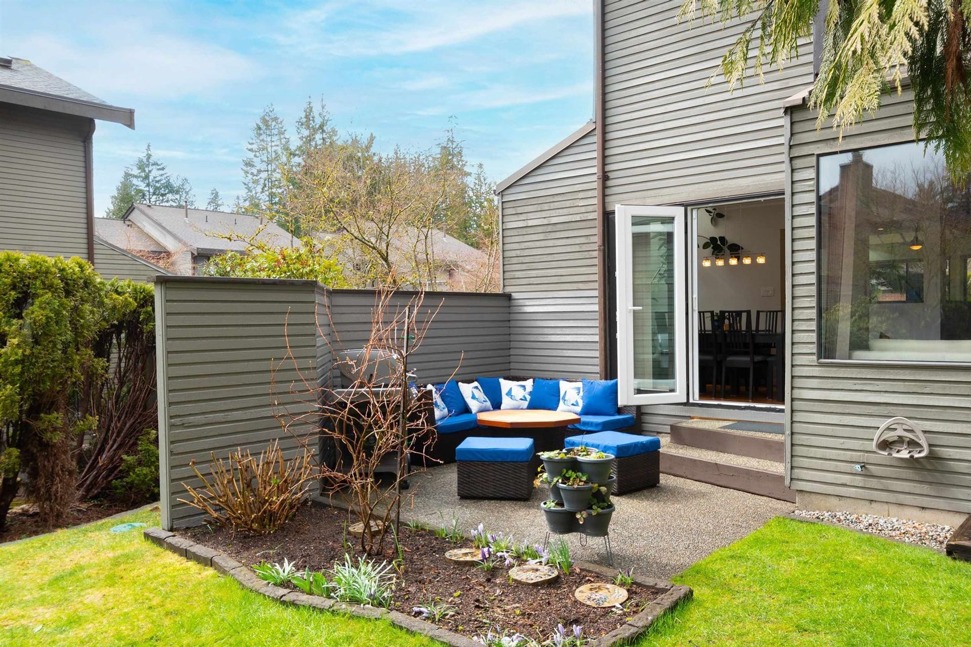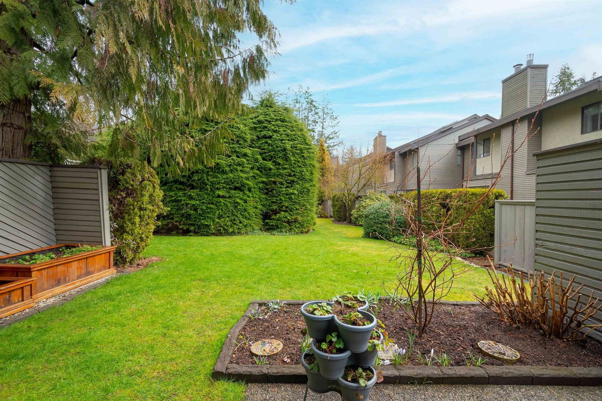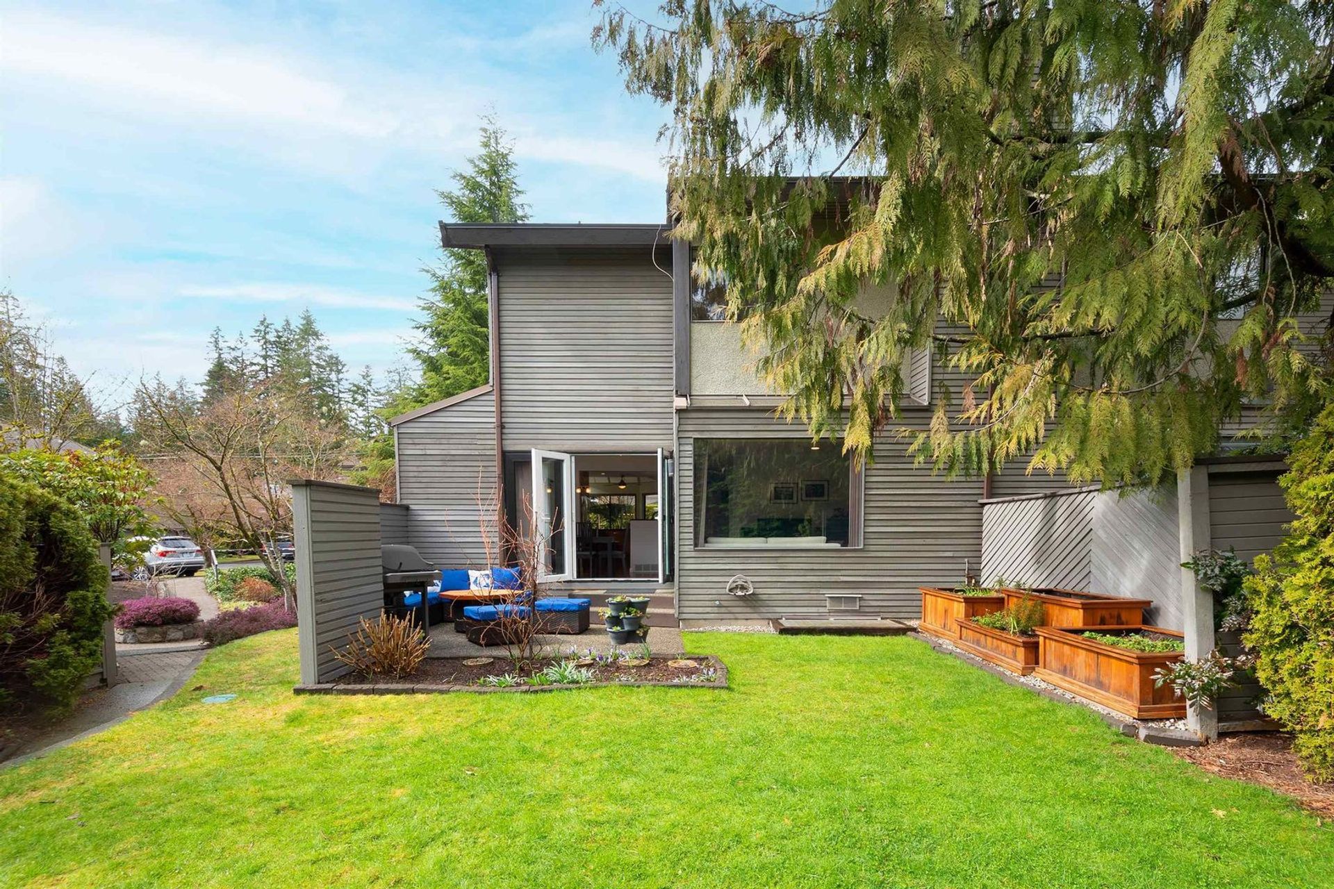 A harmonious floor plan provides grand living on the main, three flexible bedrooms upstairs, plus a basement level with a family room, a fourth bedroom (connected to it's own en-suite bathroom), a laundry room & an abundance of storage solutions.End unit with majestic vaulted ceilings, inspiring skylights & a serene backyard & patio overlooking tranquil trees as well your own garden boxes. Parking for two vehicles with your own private garage & driveway.Steps from Barrio cafe, convenient shopping, trails of the Capilano Canyon, Grouse Mountain, Canyon Heights Elementary & Handsworth Secondary. Montroyal Village is a 2.33-acre site in prime location minutes from Edgemont Village, HWY 1 & the Lions Gate Bridge.