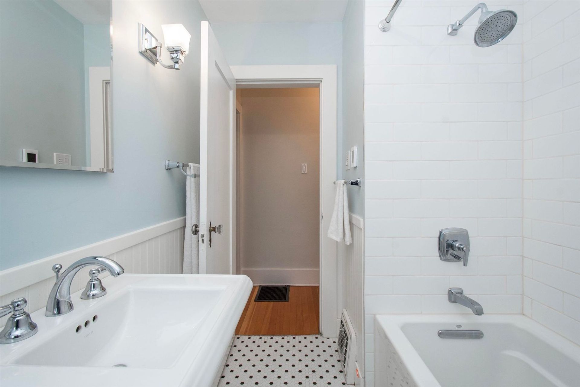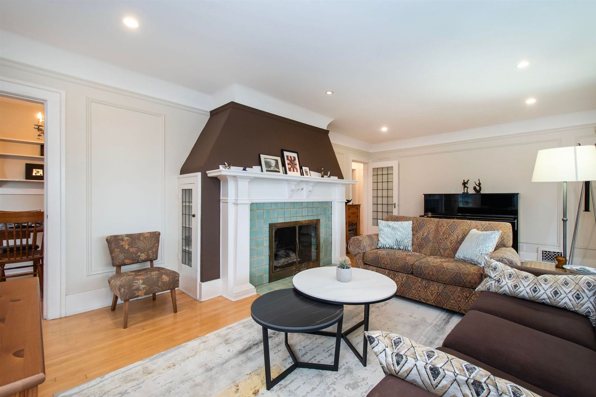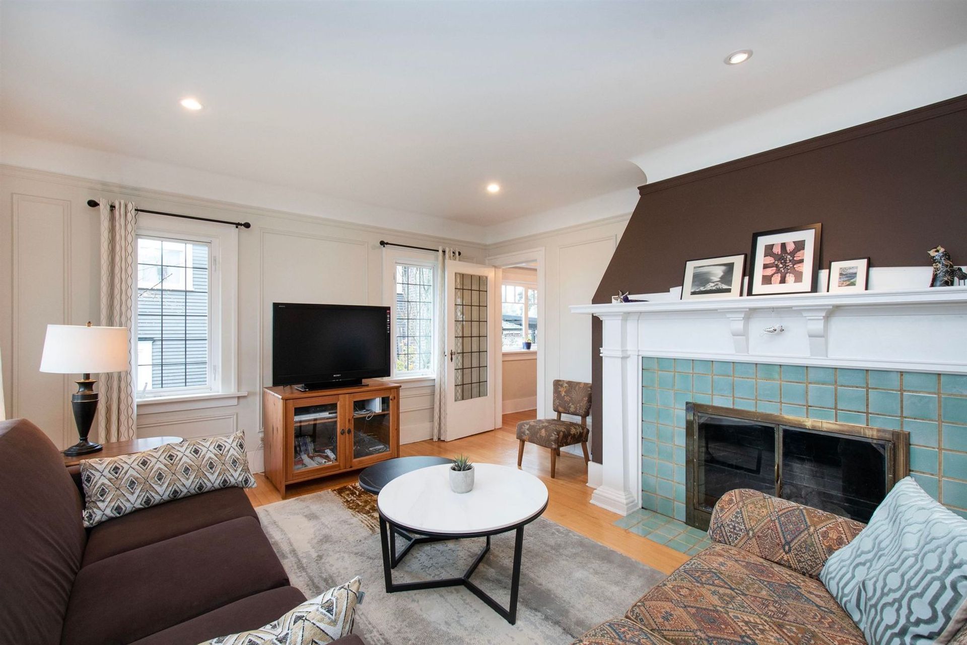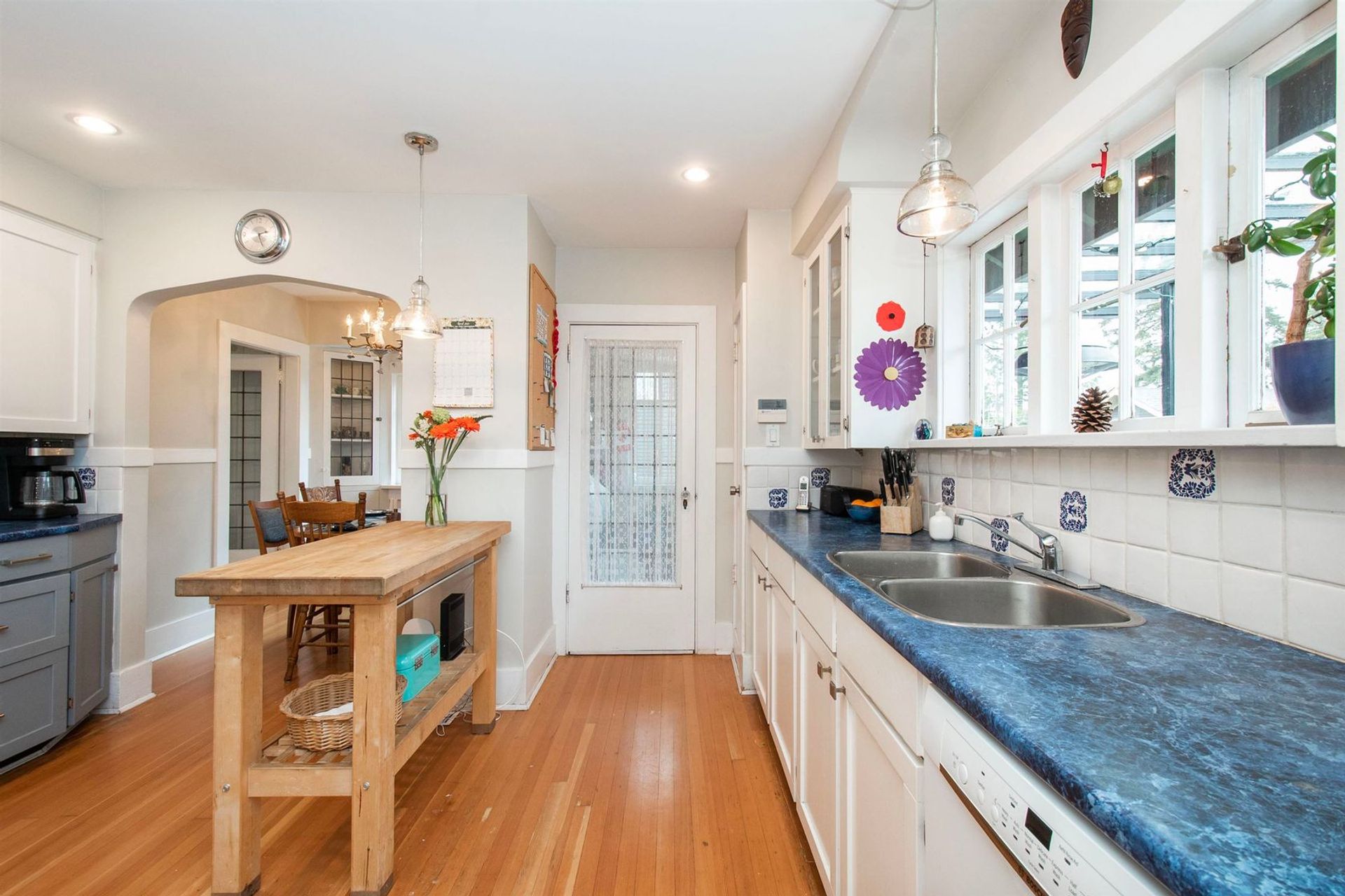 Queensbury Charmer - circa 1929 this gorgeous character home features classic stucco dash exterior, covered front veranda for watching the world go by.Formal entry, huge living room with prominent Art Deco fireplace with leaded glass built-ins, separate dining room also with leaded glass cupboards, large country kitchen with backyard outlook, mudroom with access to covered entertaining deck, two bedrooms, fir floors throughout and updated four piece bath with Nu-heat.The house was professionally raised and renovated with permits in 2011 creating a full height bright and airy basement featuring two generous bedrooms, huge rec room, big laundry/mudroom, three piece bath, storage area and outside access secure bike/sports storage.Extra large garage with 200 amp service. Great location on a quiet street.