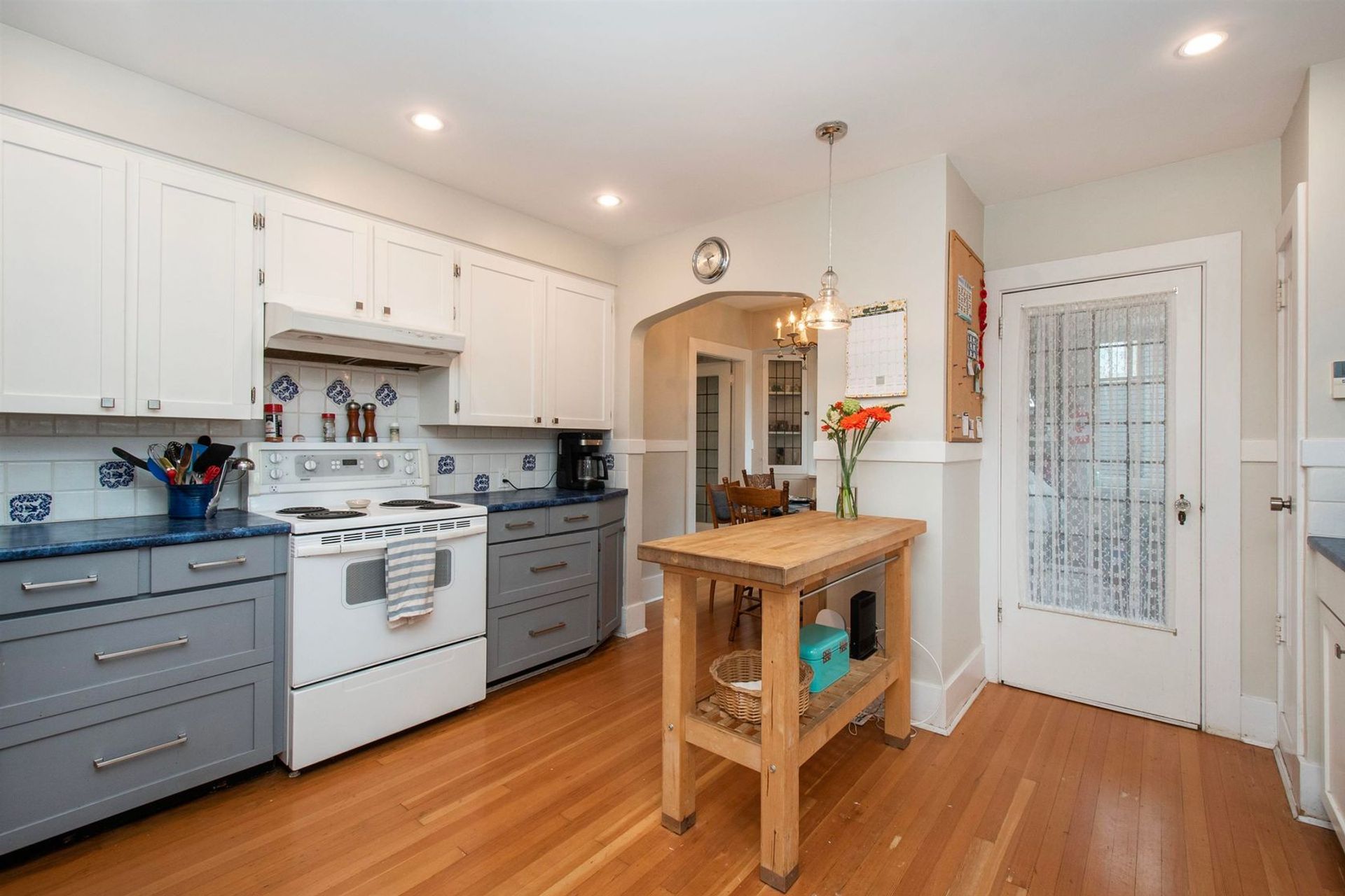 Queensbury Charmer - circa 1929 this gorgeous character home features classic stucco dash exterior, covered front veranda for watching the world go by.Formal entry, huge living room with prominent Art Deco fireplace with leaded glass built-ins, separate dining room also with leaded glass cupboards,