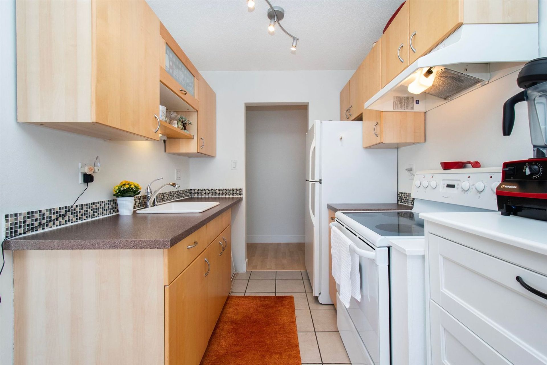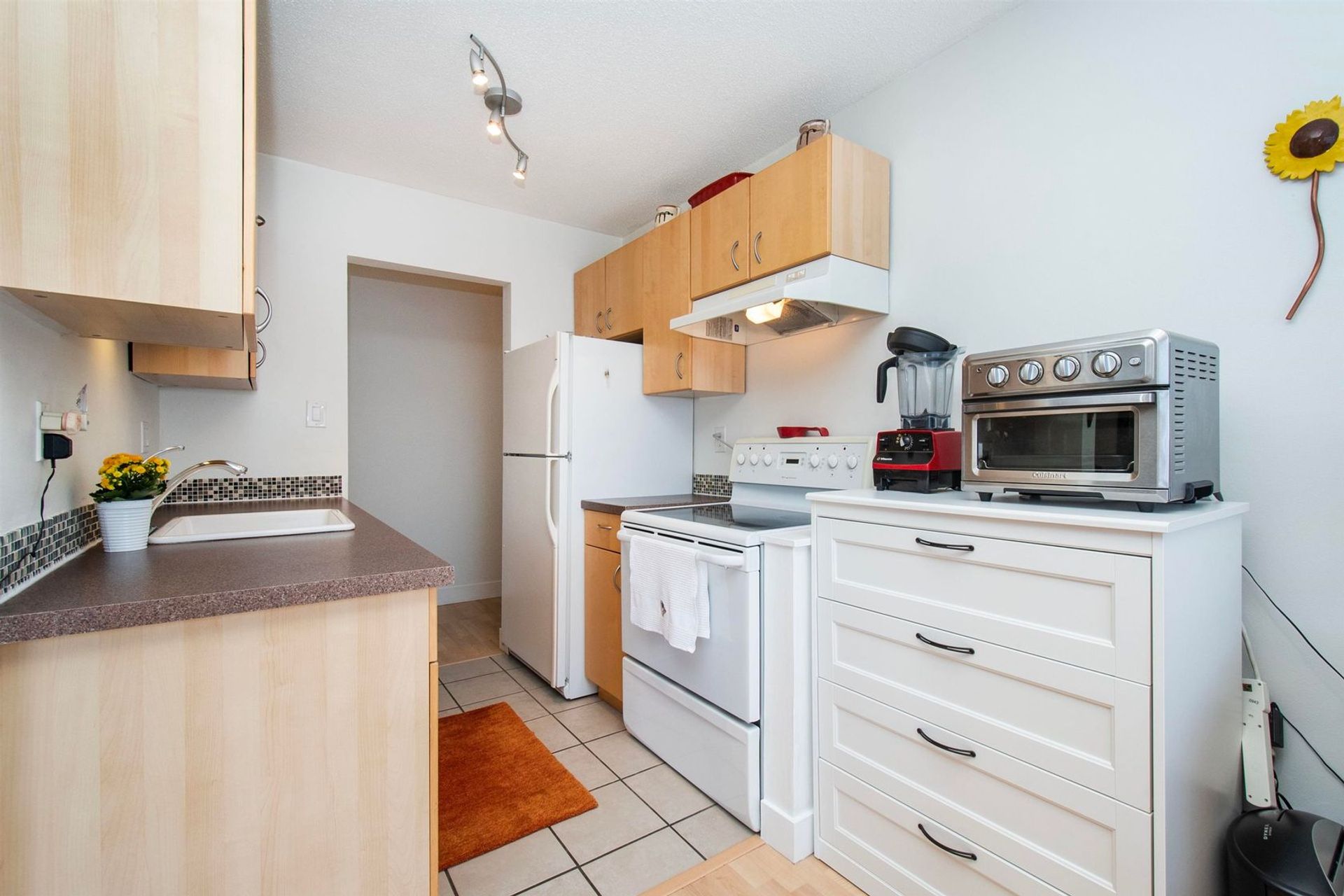 1 bedroom TOP level unit. Recently painted, updated bathroom & kitchen. XL Deck. Hook ups for ln-suite laundry w/ permission from strata. Hot water and Heat are included In the maintenance fee! 1 parking stall & 1 locker. Well maintained over the years, many upgrades: plumbing, balconies, roof, boiler, intercom. Proactive strata! 1 dog or 2 cats allowed. This property is as central as it gets! Whether you are a 1st time buyer, Downsizer or Investor, this home ticks all of the boxes!