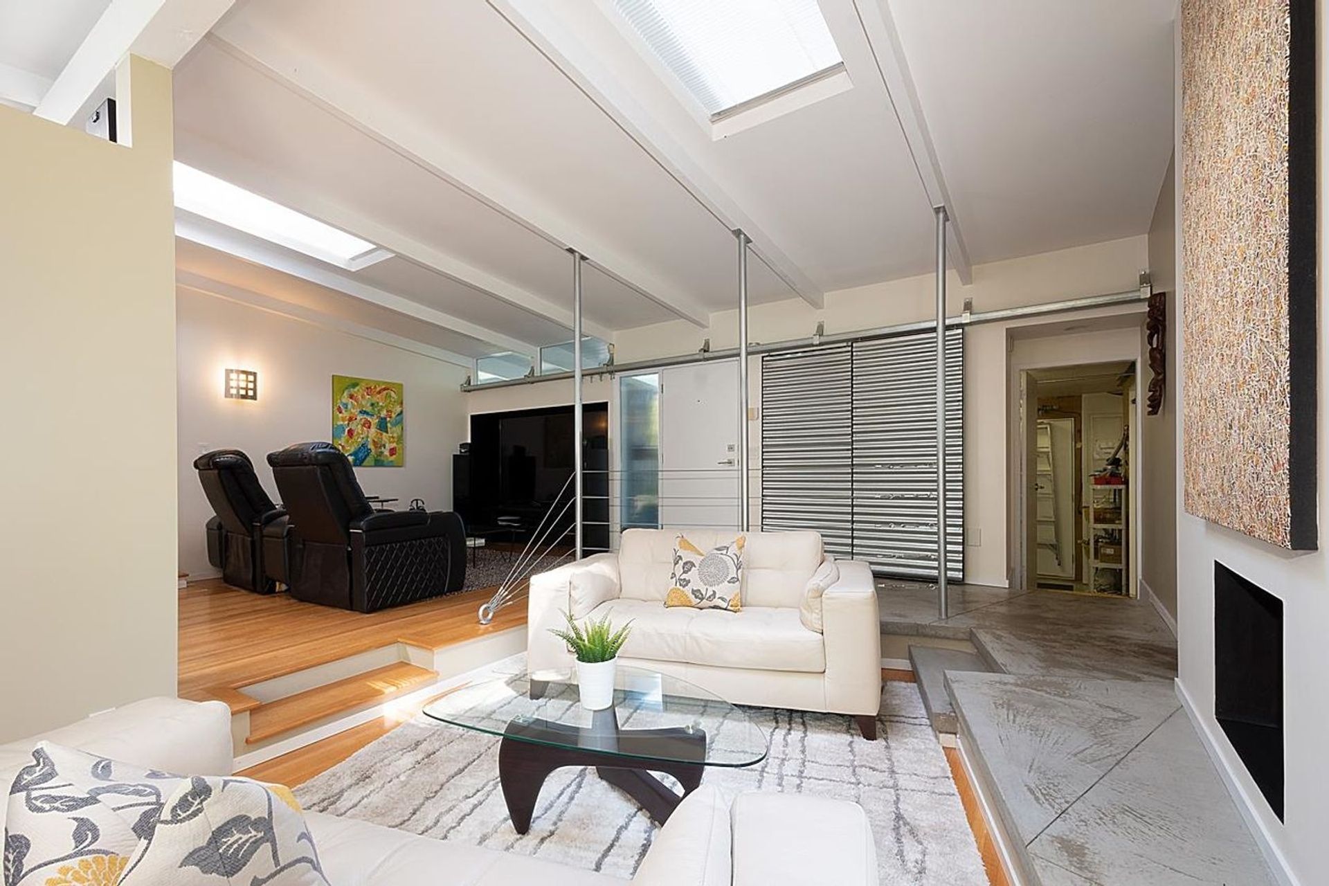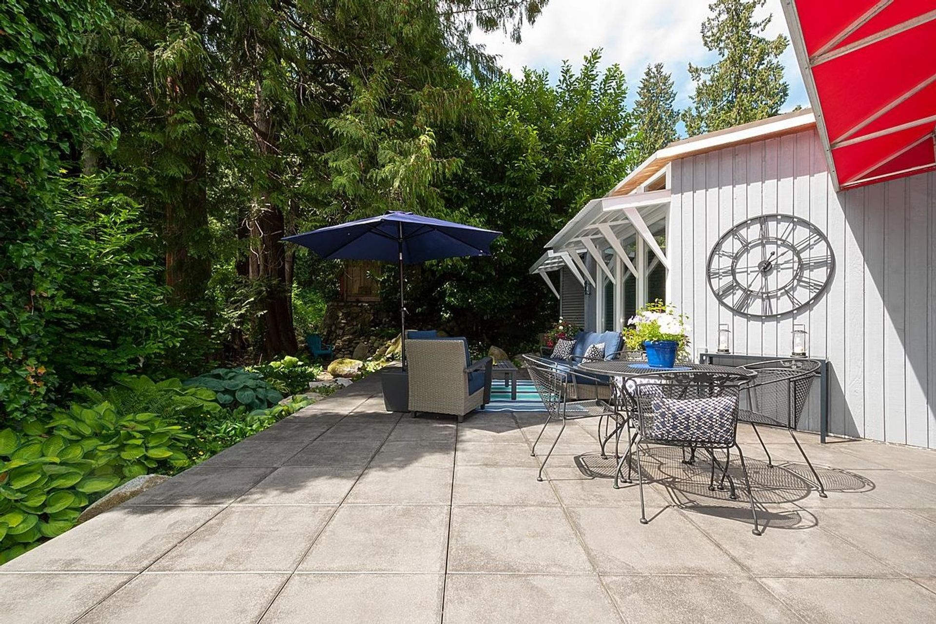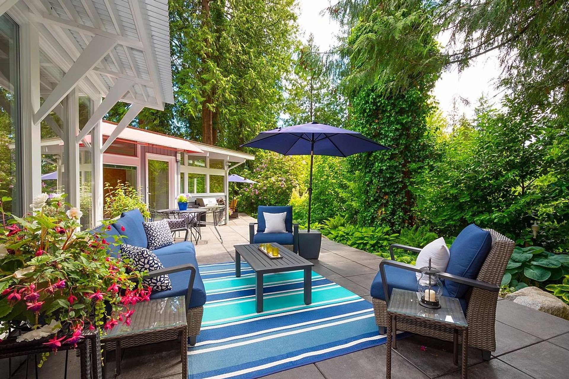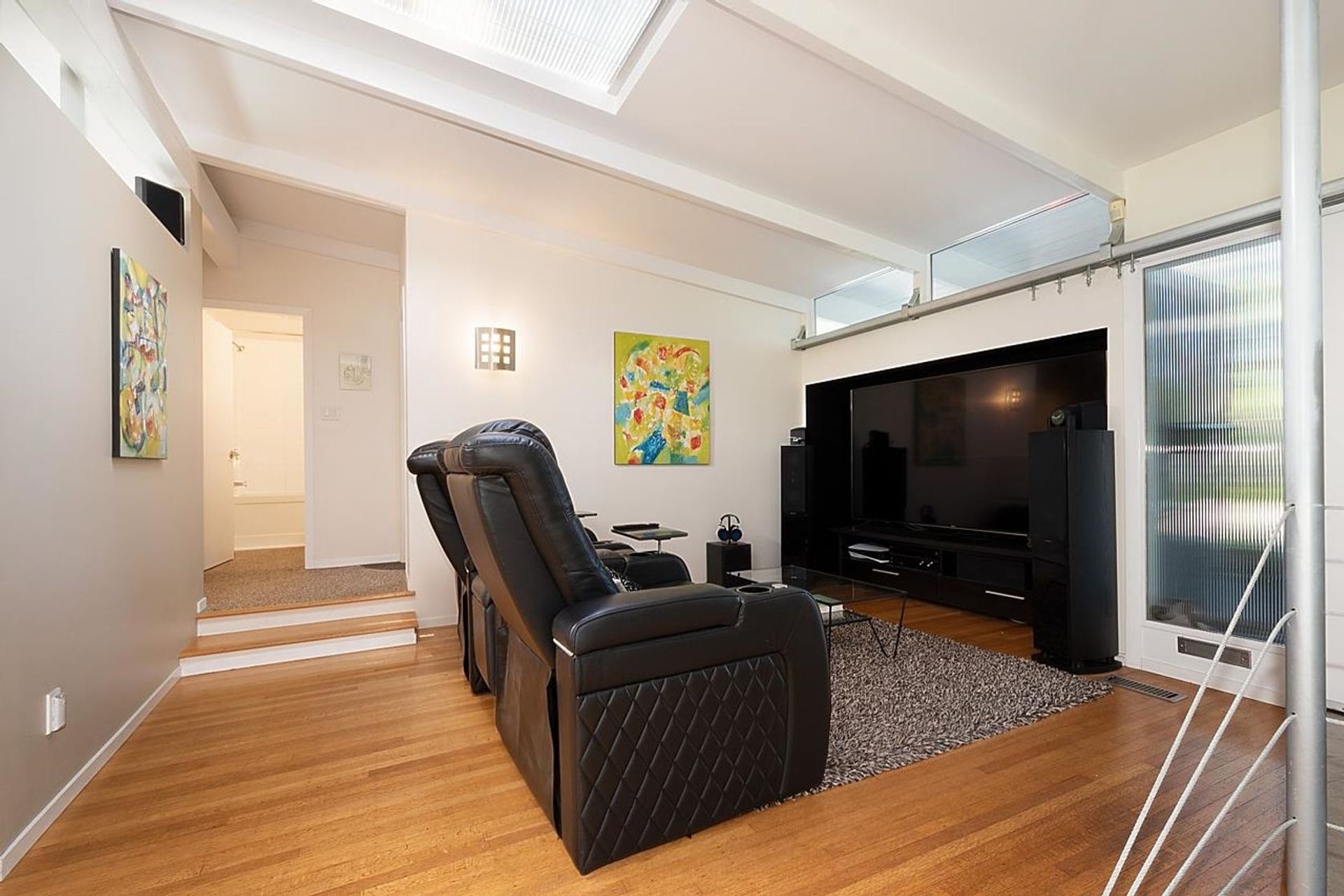 Mid Century serenity - you will get a sense of calm as you enter into this beautifully renovated post and beam rancher. Located on a private and sunny stream side lot.Features include polished concrete entry, open plan living, dining and media room with original oak floors, dramatic vaulted ceiling and floor to ceiling windows, large bright kitchen with quartz counters and eating area, traditional office with original wood paneling and double sided fireplace.Oversized primary bedroom four piece ensuite, walk in closet and striking corrugated steel feature wall, two additional bedrooms and a second full bathroom.Outdoors is an entertainers dream with a 790 sqft patio, covered area with N/G space heater and gorgeous forested and creek side outlook. A dramatic home in a central location. Hurry!