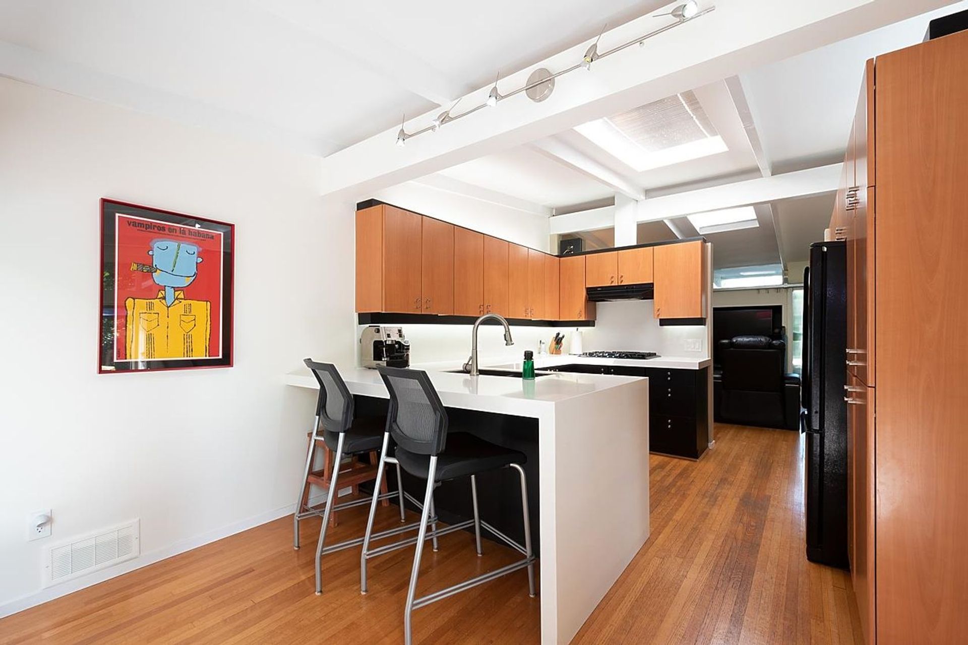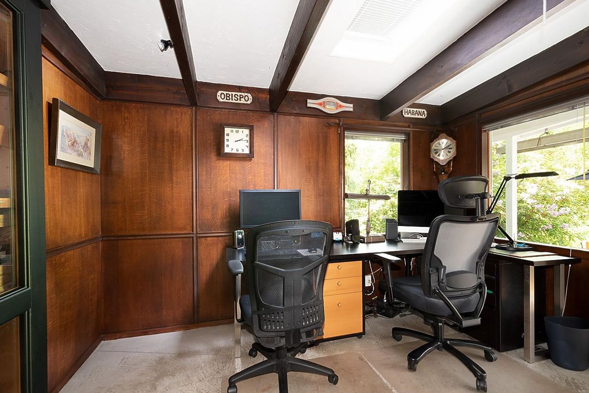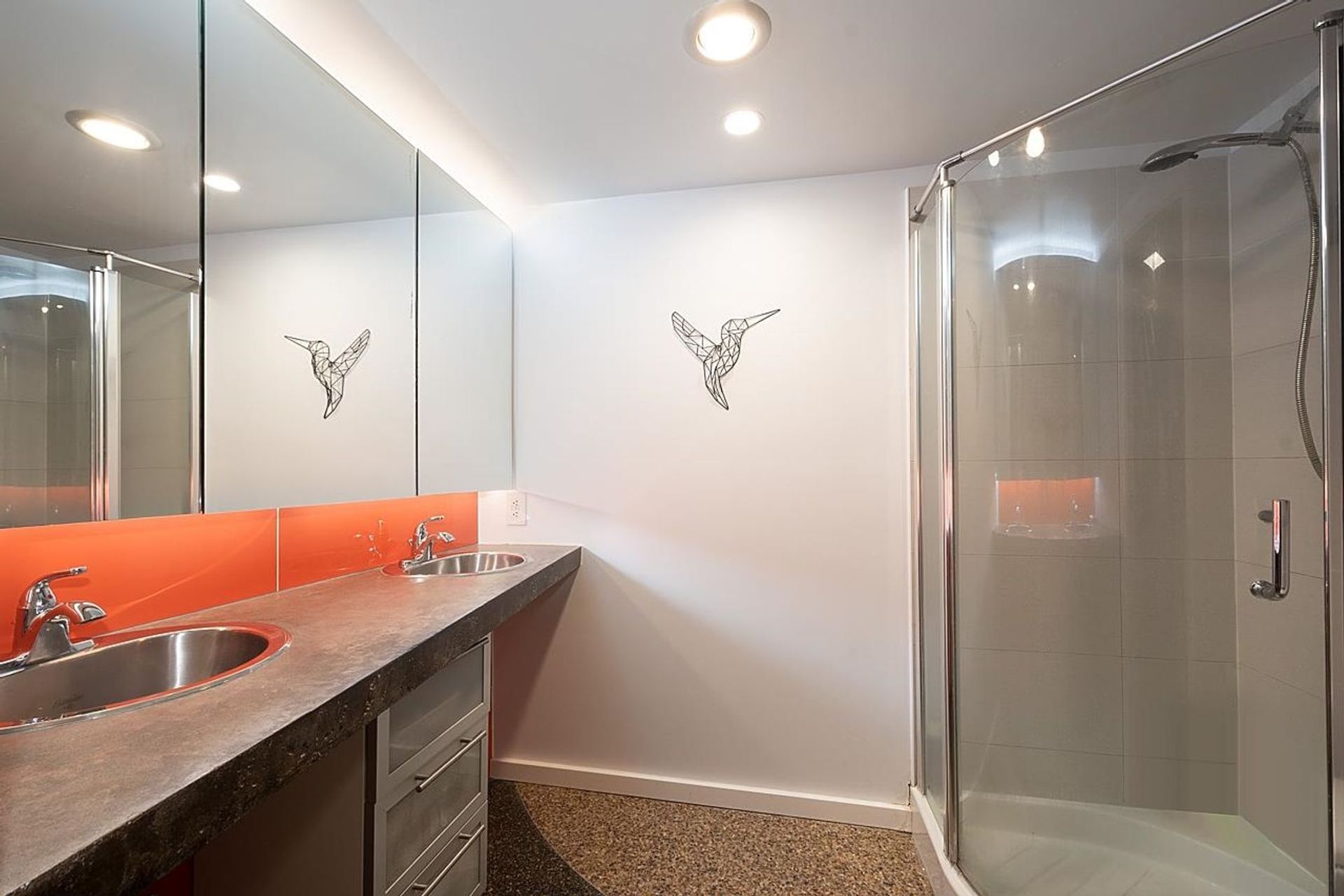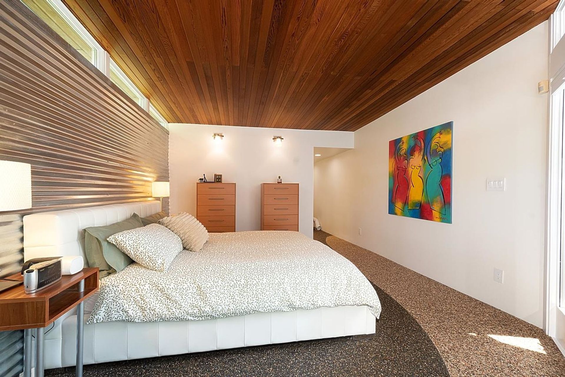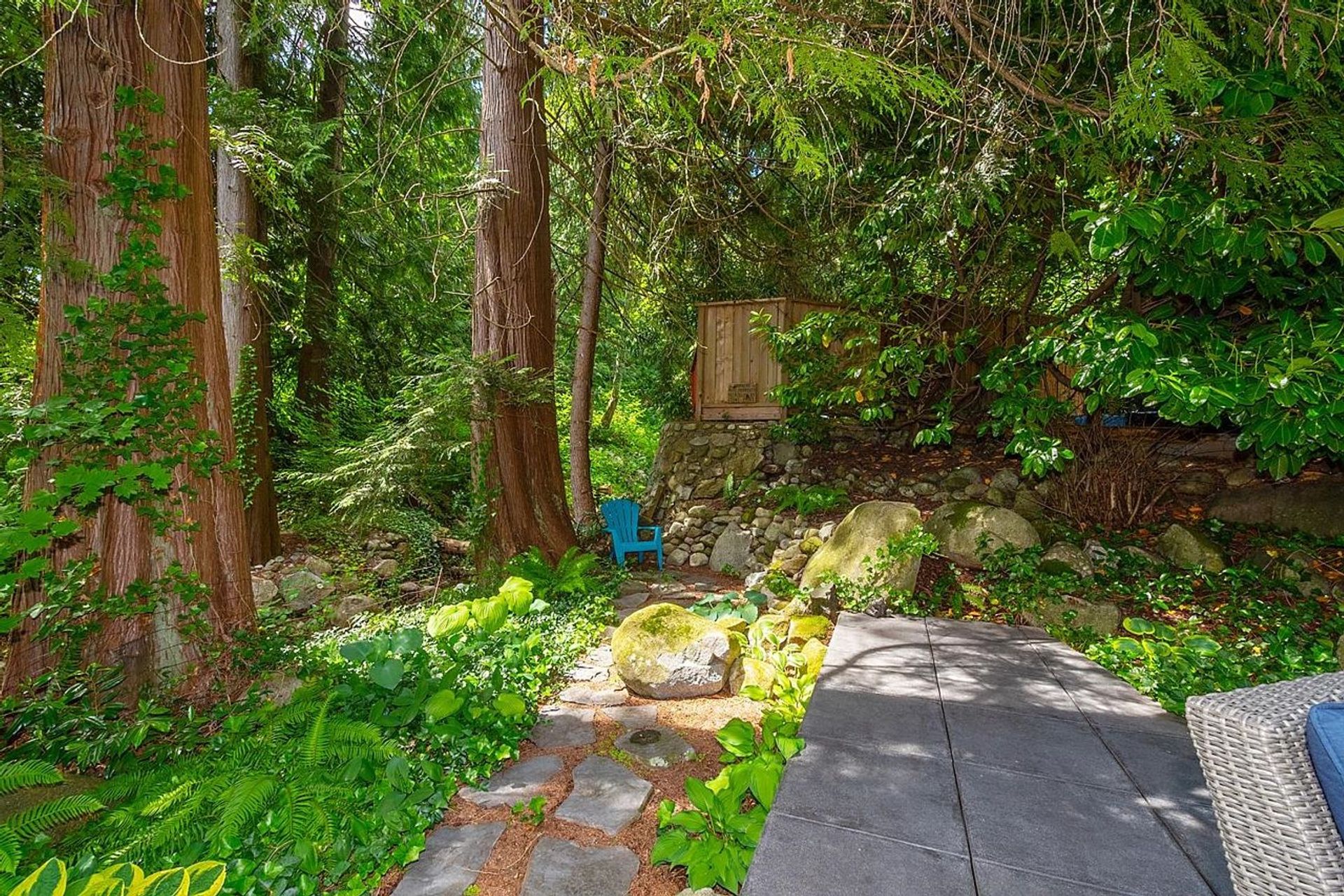 Mid Century serenity - you will get a sense of calm as you enter into this beautifully renovated post and beam rancher. Located on a private and sunny stream side lot.Features include polished concrete entry, open plan living, dining and media room with original oak floors, dramatic vaulted ceiling and floor to ceiling windows, large bright kitchen with quartz counters and eating area, traditional office with original wood paneling and double sided fireplace.Oversized primary bedroom four piece ensuite, walk in closet and striking corrugated steel feature wall, two additional bedrooms and a second full bathroom.Outdoors is an entertainers dream with a 790 sqft patio, covered area with N/G space heater and gorgeous forested and creek side outlook. A dramatic home in a central location. Hurry!