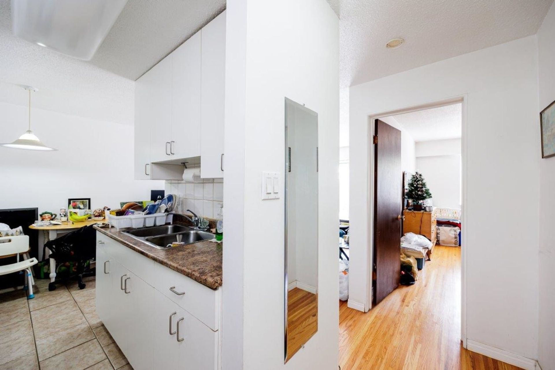 Calling all sun lovers. South facing ground floor unit with huge secure patio of 380 sq.ft. with . Gleaming oak hardwood floors, updated kitchen and bathroom. and good internal storage Hot water heat included in historically low maintenance fee. Great location within walking distance of shops, services and transit.