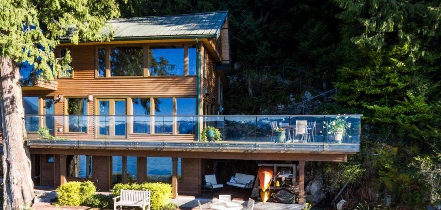 Living and dining with floor to ceiling windows and French doors accessing wrap around oceanside deck, massive cut granite fireplace, guest bedroom, 3 piece enuite with heated slate floors. Upper floor featuring loft style office/family room, oversized master with high vault ceiling, private deck, walk-in closet, and spa inspired four piece ensuite. Lower level rec room has gym floors and awe inspiring vistas. For visiting guests there is a separate one bedroom freestanding cottage with 3 piece ensuite.