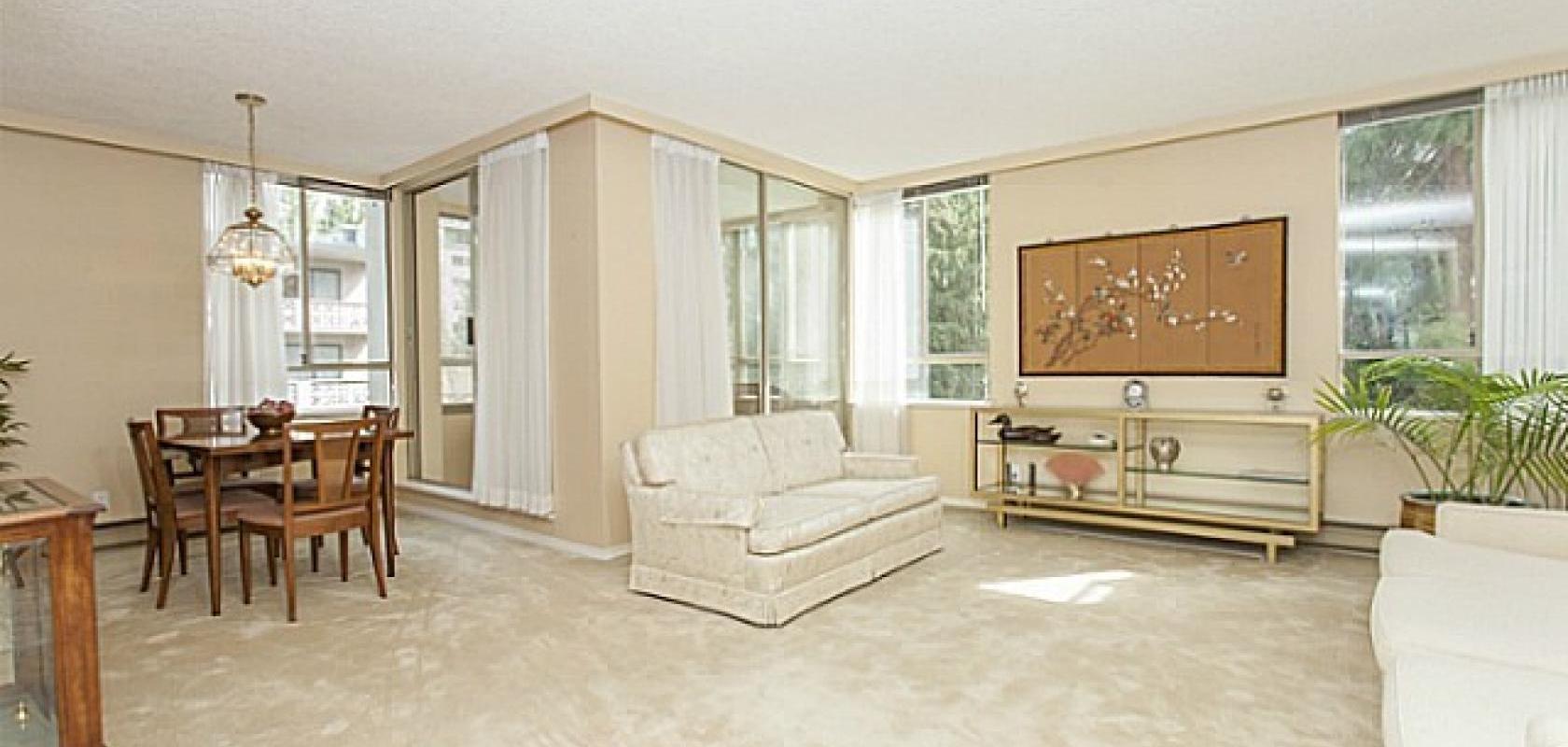 Immaculately kept 2 bedroom 2 bathroom corner unit with balconies off of each bedroom plus a solarium! Less than a block to Marine Drive and the heart of Ambleside: Fresh Street Market, Savary Island Pie, the seawall, beach, restaurants, coffee shops, transit & more! Bring your renovation ideas to this large condo (other units have opened up the solarium to add more living space). Enjoy the peek-a-boo views to the water while you sip your morning coffee in the sunshine! 2 parking stalls, tons of visitor spots & storage. Sorry no pets/rentals. You'll love being on the NE side of the building (the quiet side) with trees outside your windows. What else could you want in the prime location of Ambleside? Call today!