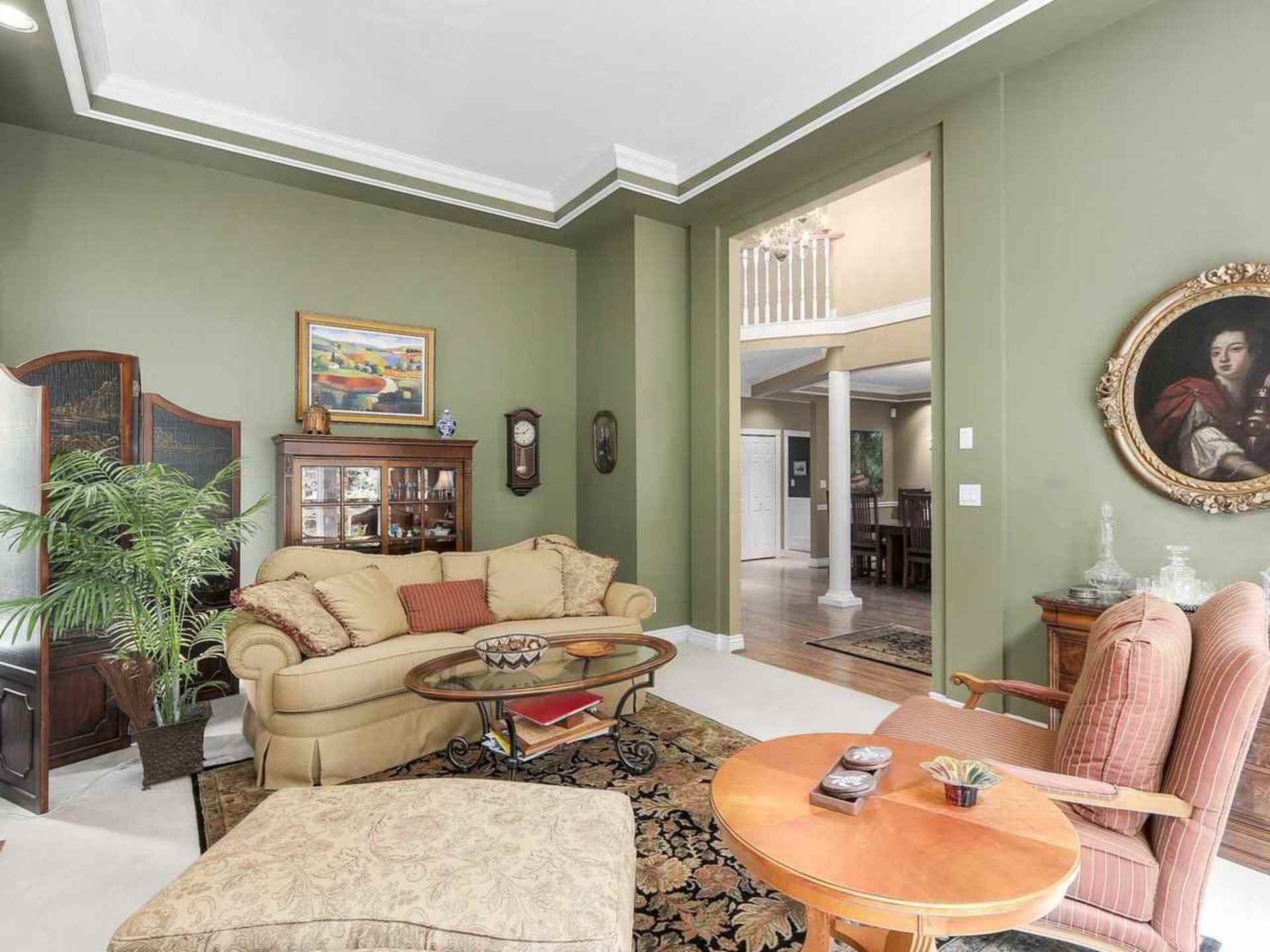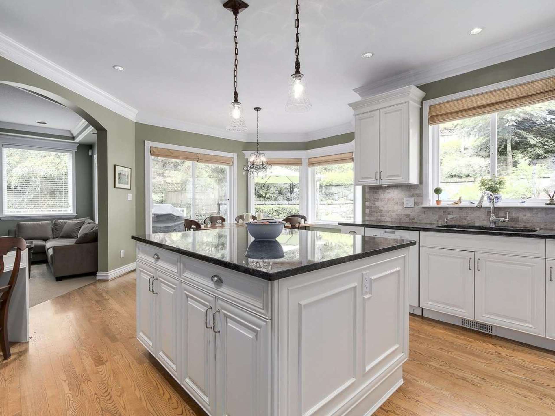 Impressive main floor with grand foyer, over-height ceilings, oak floors, banquet-sized dining, formal living room, den, large central island kitchen with adjoining eating area and cozy family room all with views to an amazing, private and sunny garden.