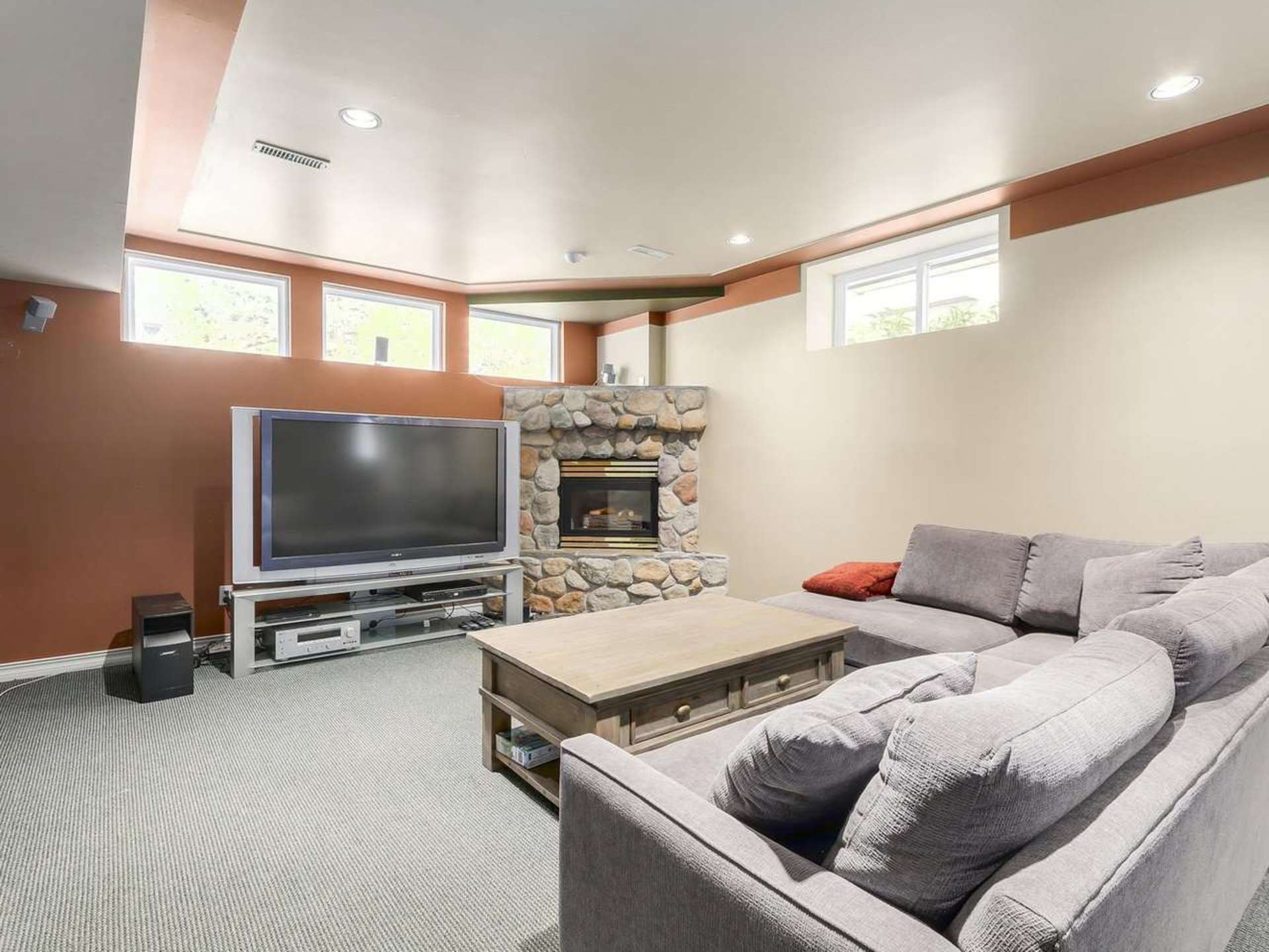 Fully finished lower level features large recreation room/gym, bedroom with walk-in closet, three piece bathroom, living area and separate entrance. Very bright & gracious space as well.