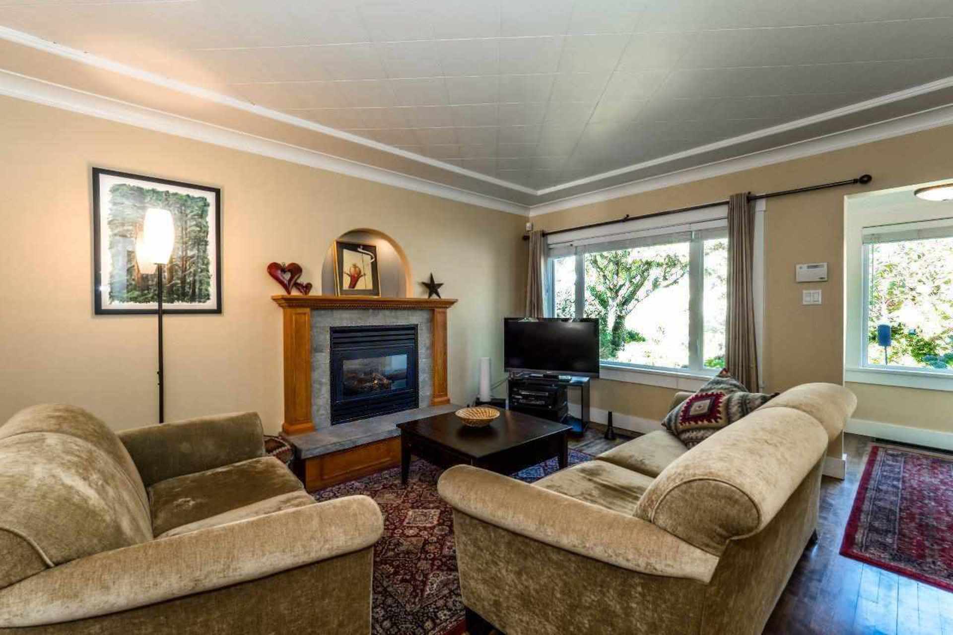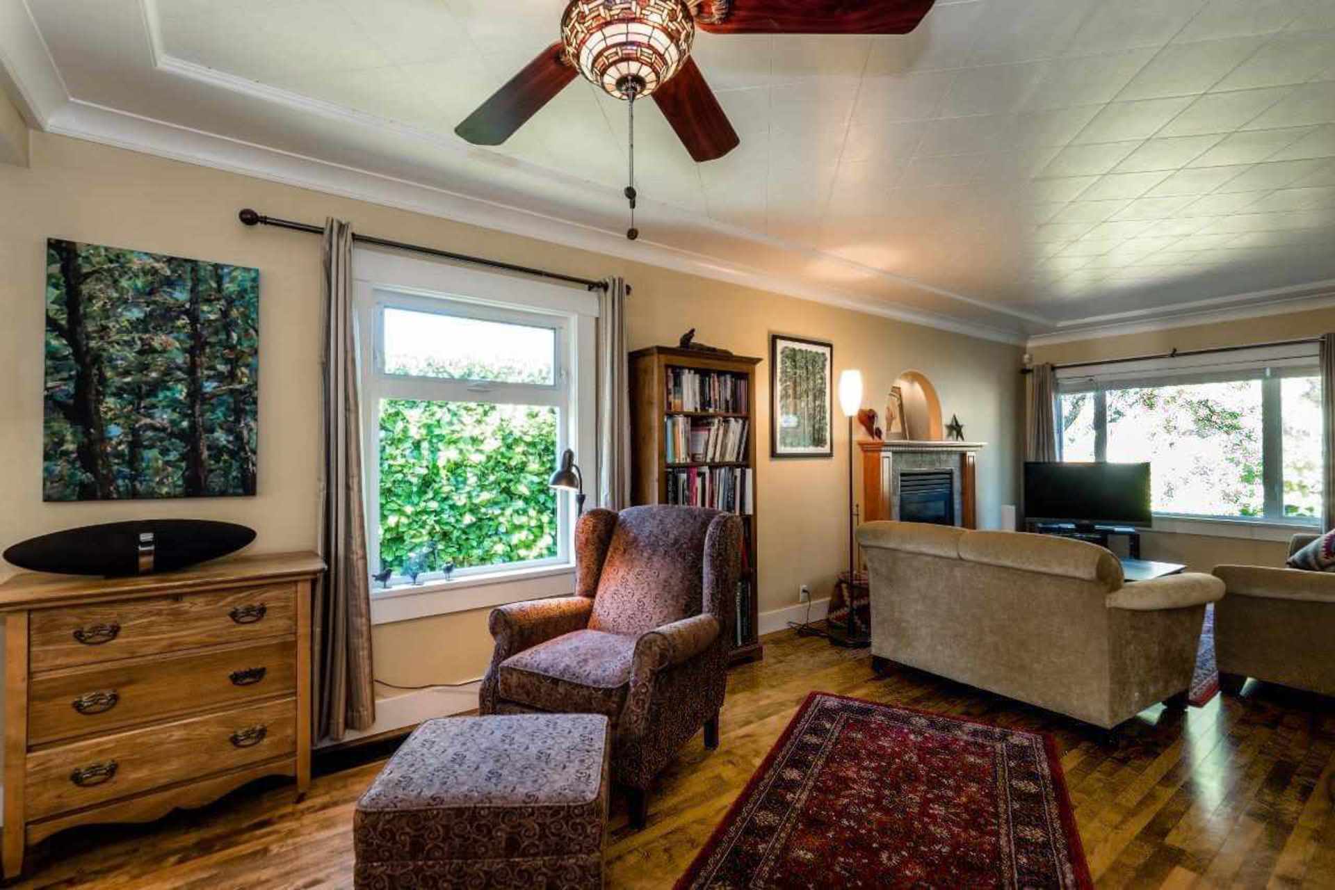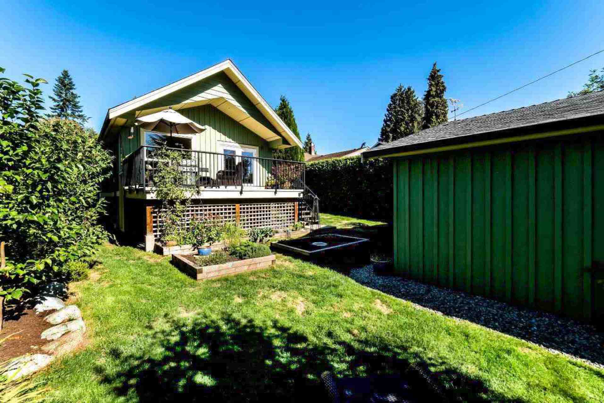 Gorgeous 1911 character home on quiet street with private south facing yard. Main floor features 2 bedrooms, full bath, open plan living, dining with country kitchen, adjoining large sunny breakfast nook with French doors to spacious entertaining deck. Lower level features 2 bedrooms, den, full bath, and rec room with full hobby area. Easy conversion to suite or nanny accommodation. Breathtaking gardens with over sized double garage. Fully fenced yard and lots of parking. Completely updated in 2006 with windows, roof and siding. Just move in!