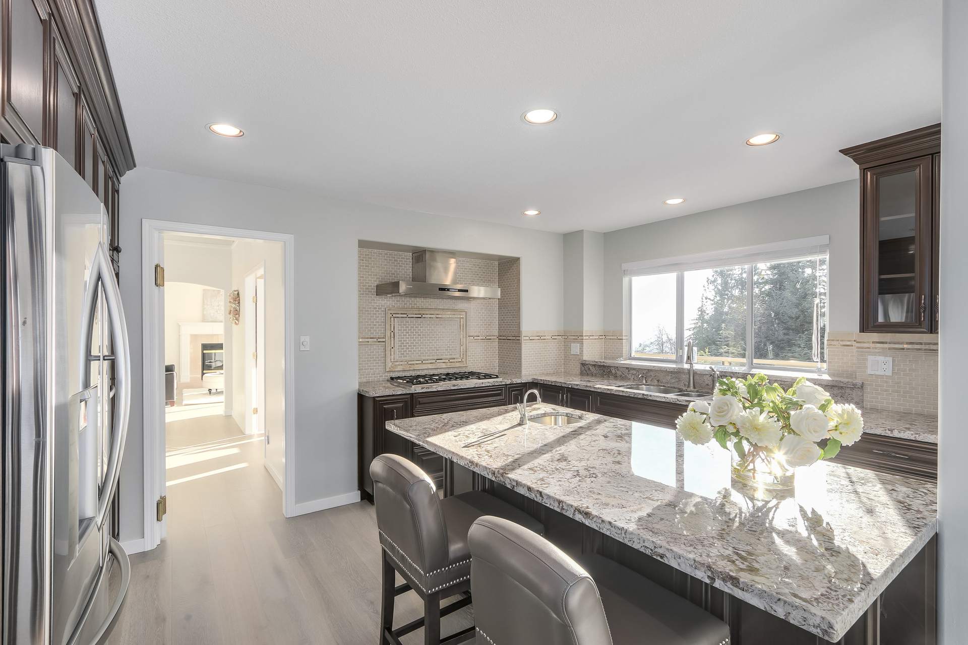 Beautifully updated Braemar executive home situated on huge 17,234 sq. ft. lot with south facing backyard and city views. Over 4,500 sq. ft. on three levels. Main floor features generous sized living, separate dining, stainless and granite kitchen with adjoining family room, private office, powder