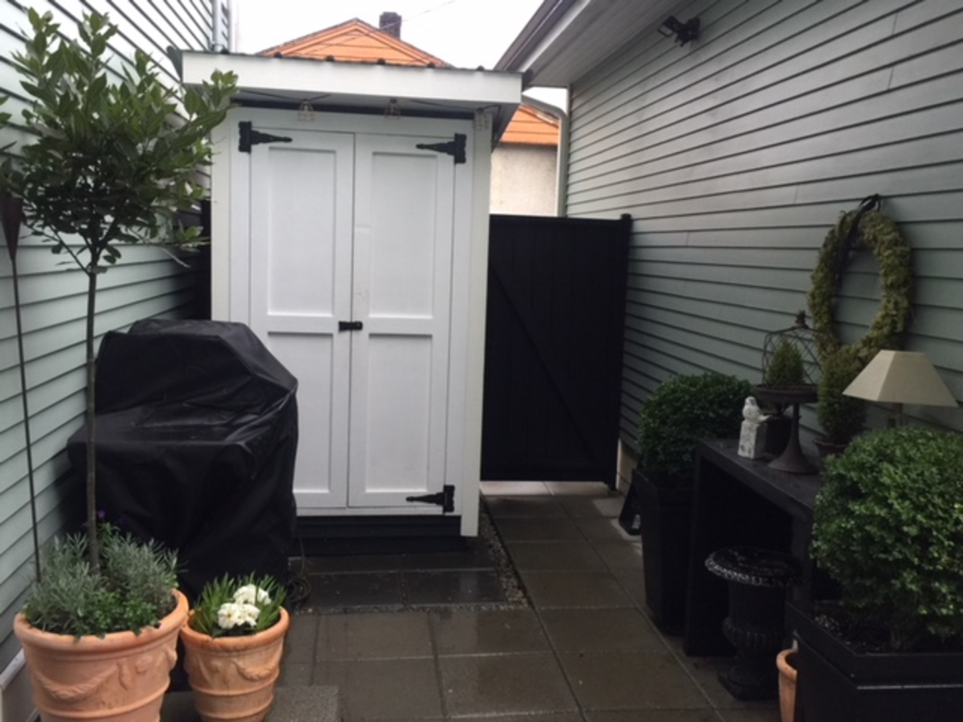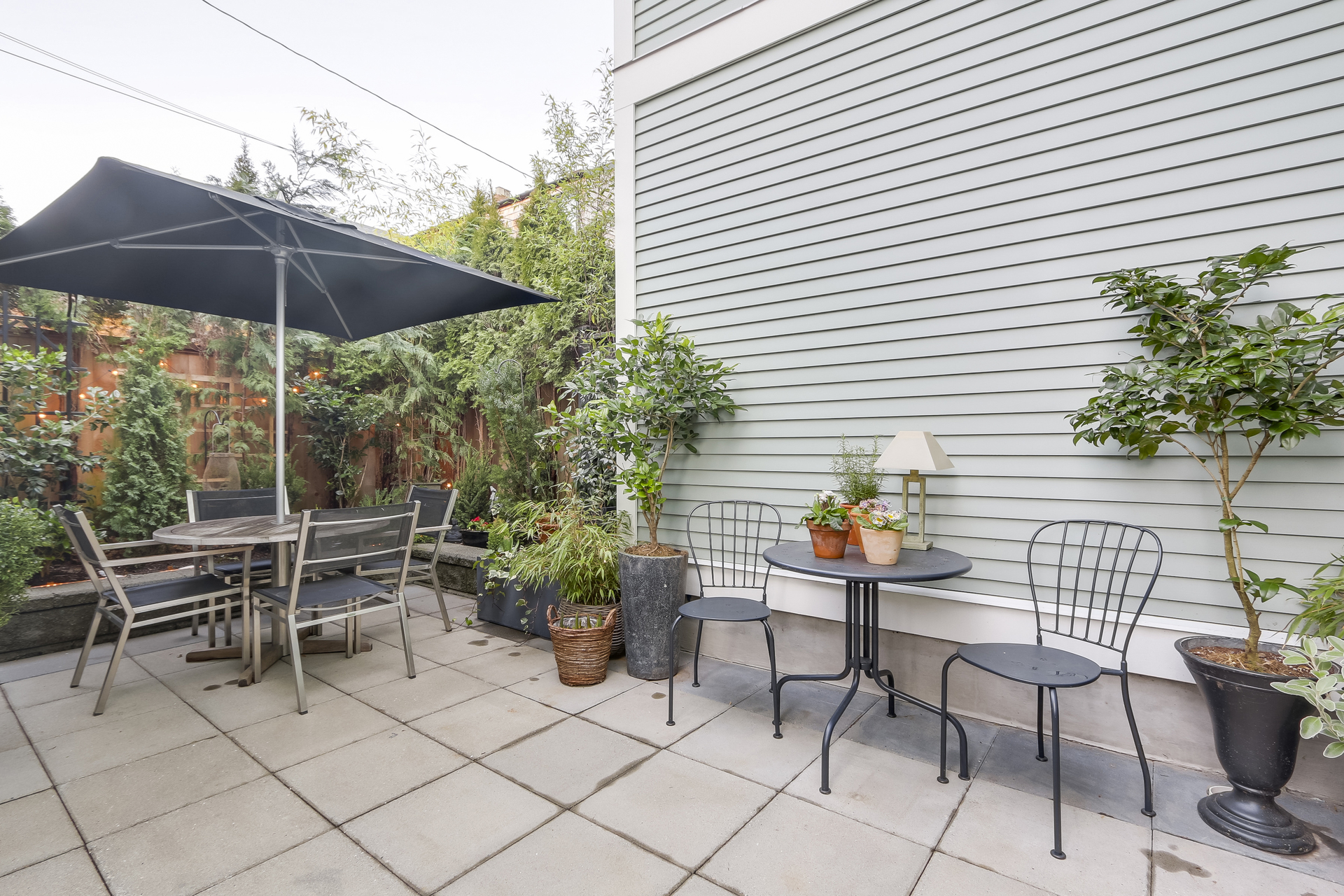 French doors open to private 272 sq. ft. west facing patio ideal for entertaining & access to garage and plenty of storage.