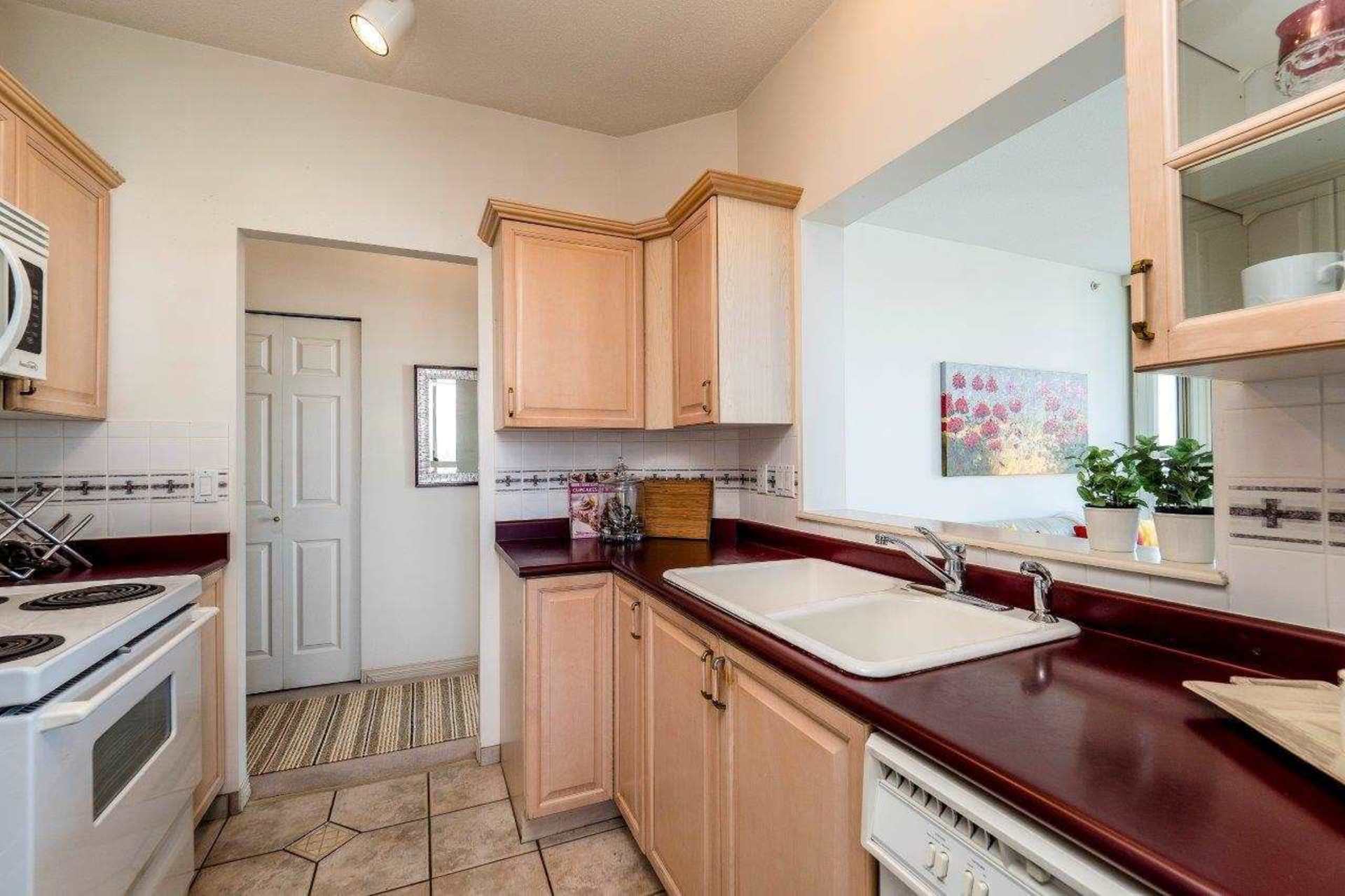 This apartment is located right on beautiful Victoria Park. This sought after concrete building is surrounded by tranquil gardens and water fountains. The setting is perfect. The location is perfect. Close to shops, restaurants, hospital…..it is a wonderfully laid out 1 Bedroom. Large in size at 738 SF; faces South with water, city and mountain views! Highlights are 9’ high ceilings, floor to ceiling windows, gas fireplace and a covered balcony. There is secured parking and storage. The building offers a great gym, library, two guest suites, sauna, swirl pool and a party room. It has lots of extra parking. Your pet is also welcome. A beautiful building in a beautiful location. OPEN May 5th, SAT 2-4pm