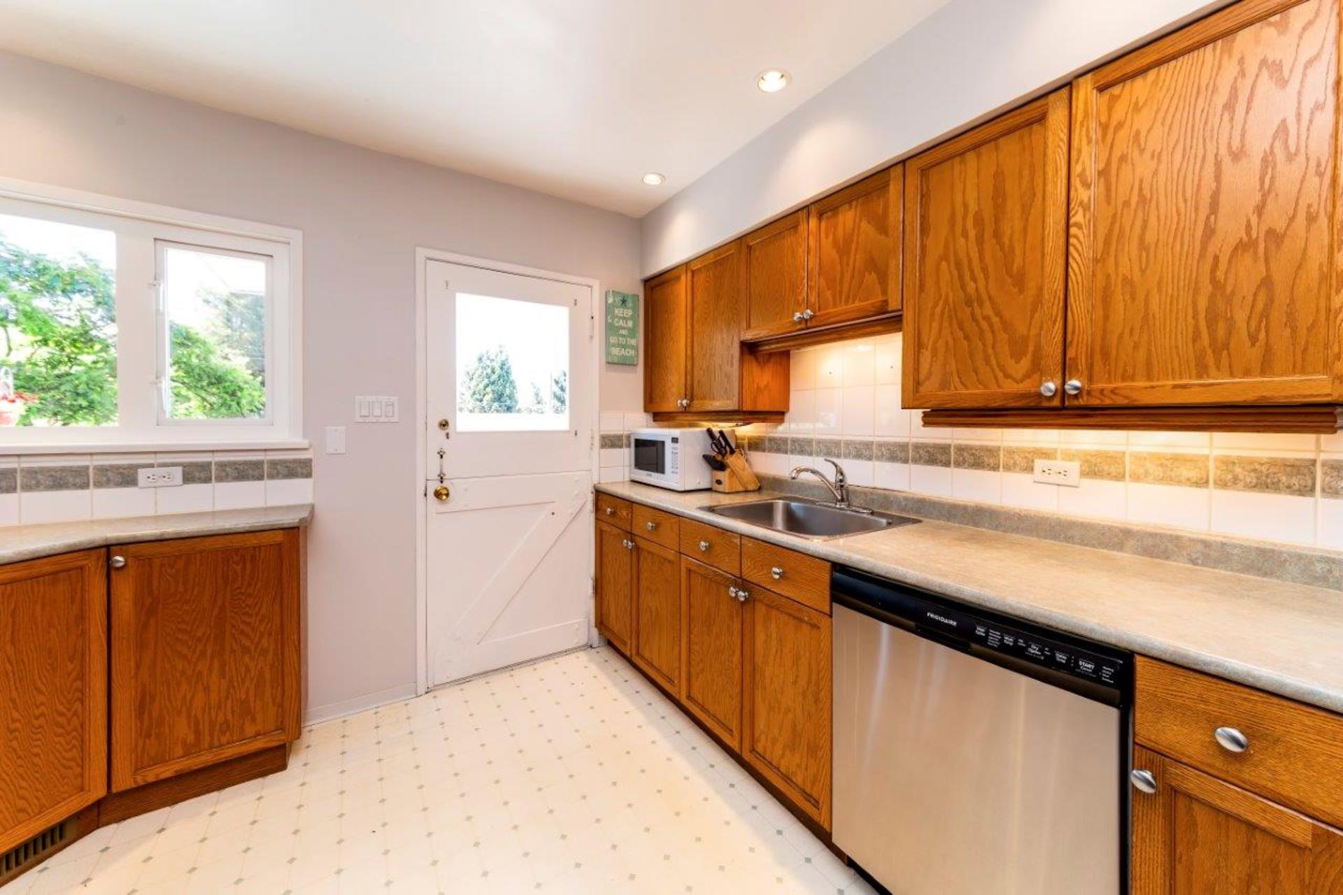 This home is ideal for a young family with room to grow.Renovate now or down the road. The choice is yours! The house is move in condition.On the main floor find two bedrooms, a good sized living space with hardwood flooring that walks out to a large and sun-filled south facing deck.Downstairs is an additional two bedrooms and a great rec room for kids to play.A flat backyard plus a large driveway with lane access is perfect and safe for basketball, hockey or soccer games.Also includes two car garage and large storage room for all your cars, bikes, etc.