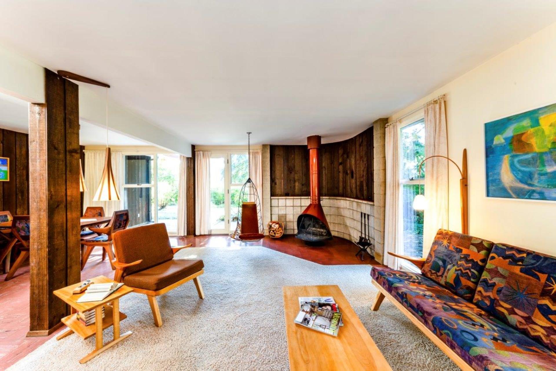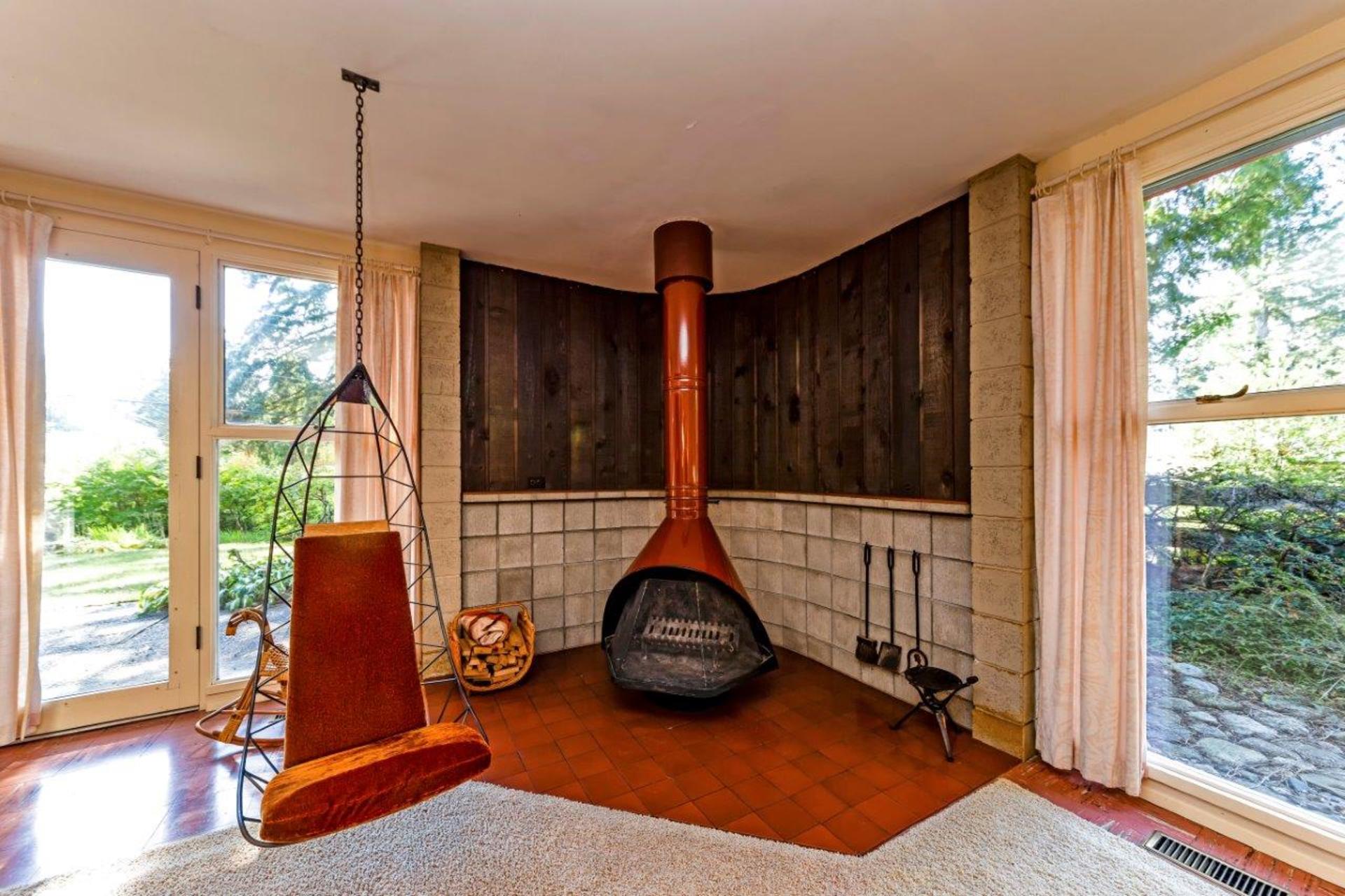 One owner, custom built rancher on an outstanding level estate-like lot of over 19,000 sq. ft.This home oozes a cool 60's vibe with floor to ceiling windows, curved concrete block feature walls, acorn fireplace and open plan living.Features three bedrooms, two baths, kitchen with eating area, spacio