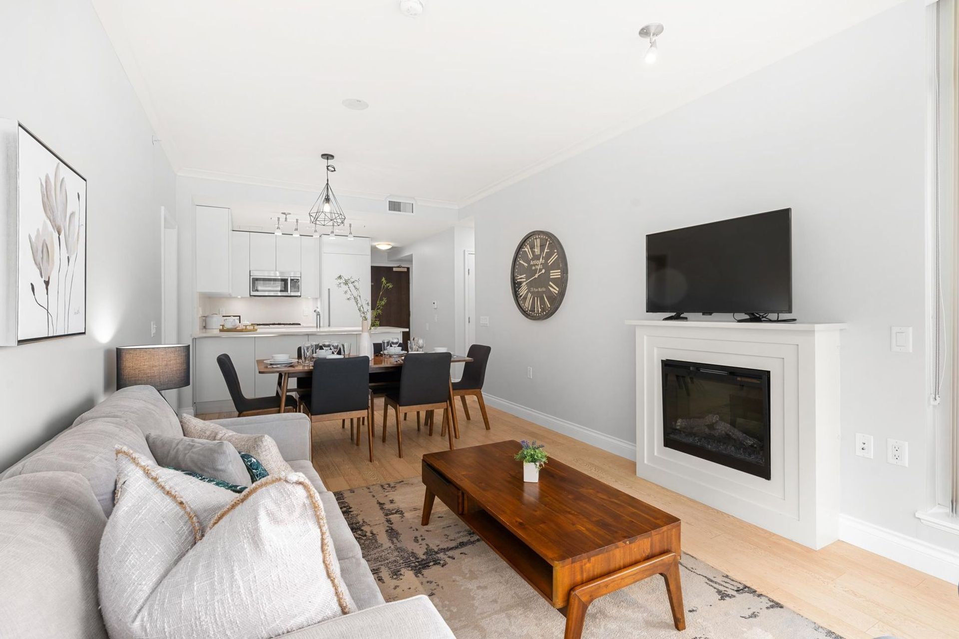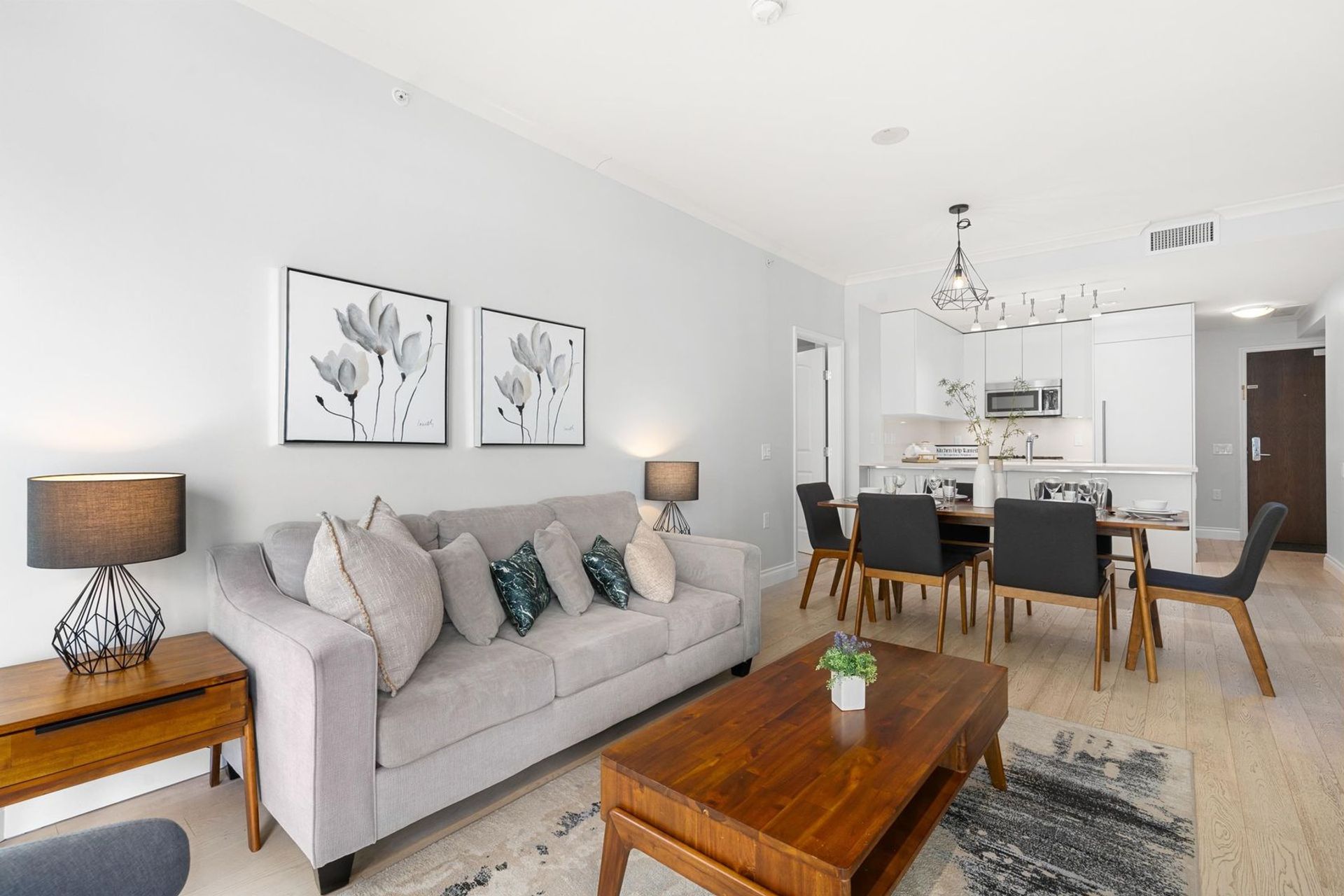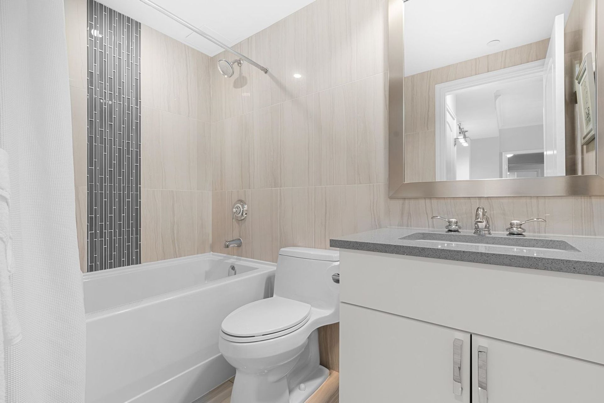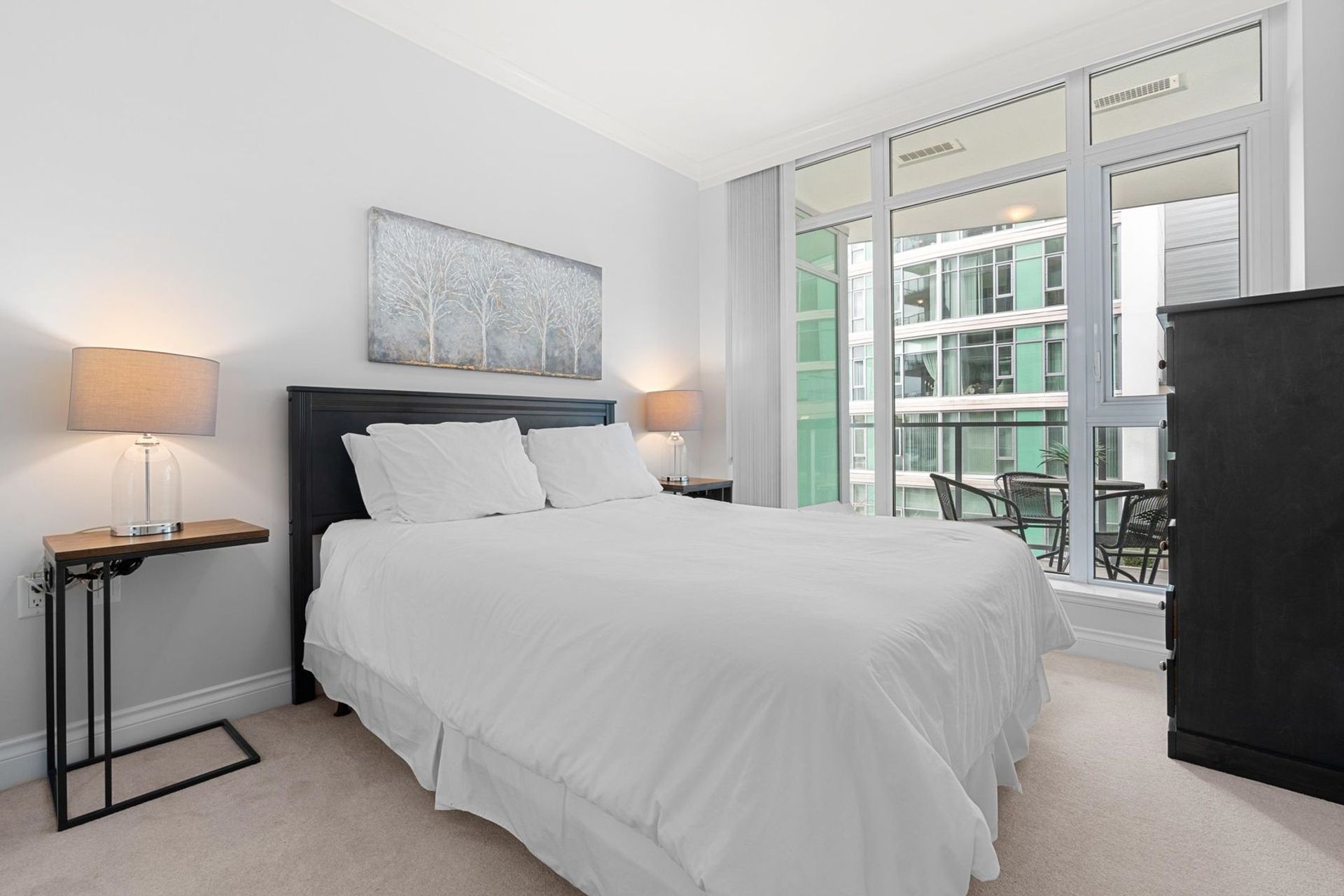 Over 1,000 sqft of luxury in the heart of Lower Lonsdale's Shipyard District.Step in and enjoy open concept living with full sized dining and living room, plus a gourmet kitchen with gas cooktop and integrated fridge.Soak in magnificent views of the Harbour and City each and every morning from your