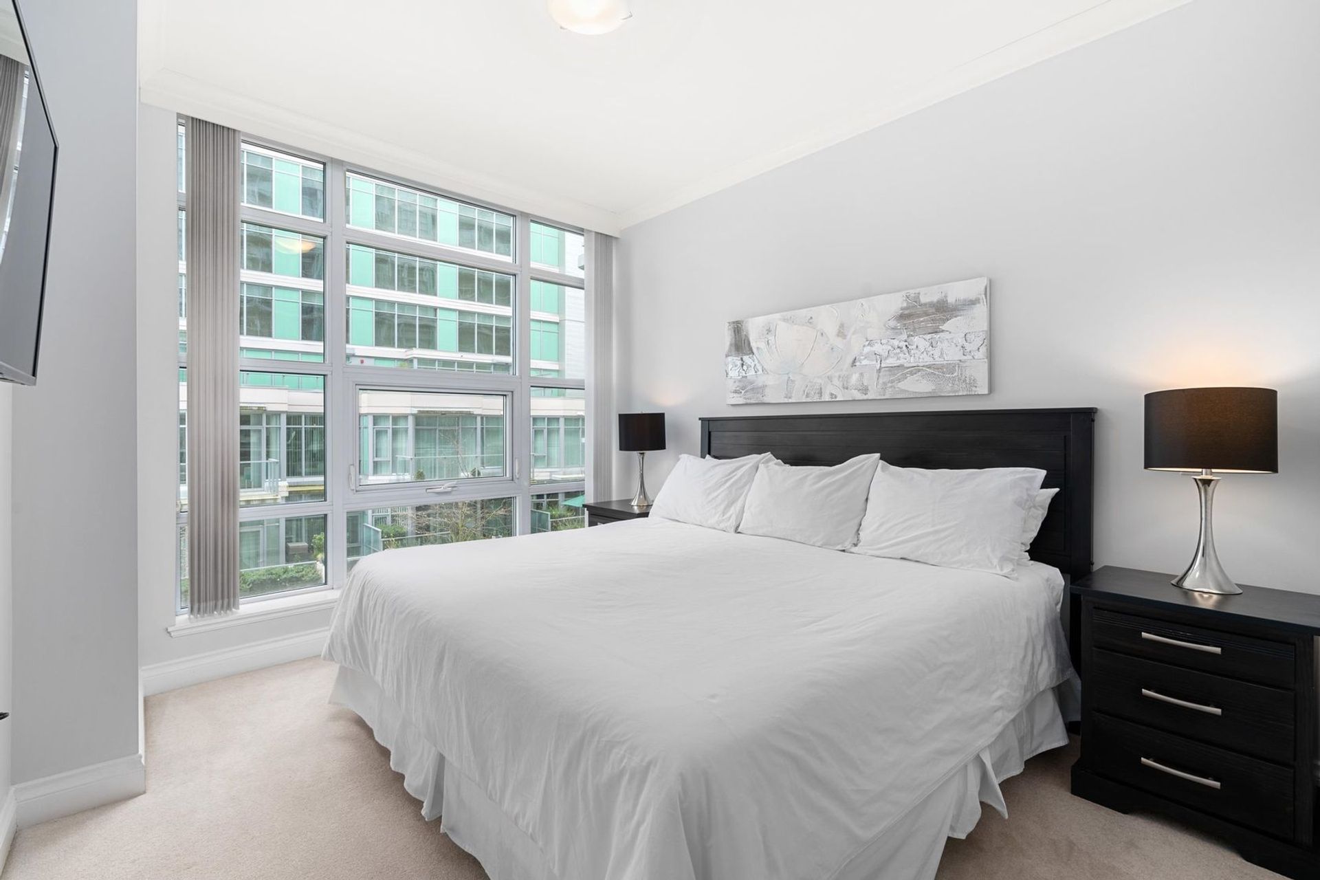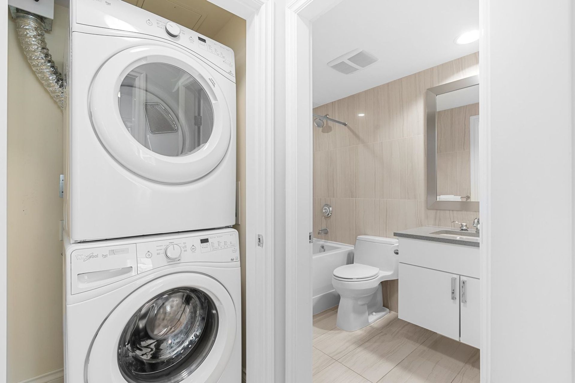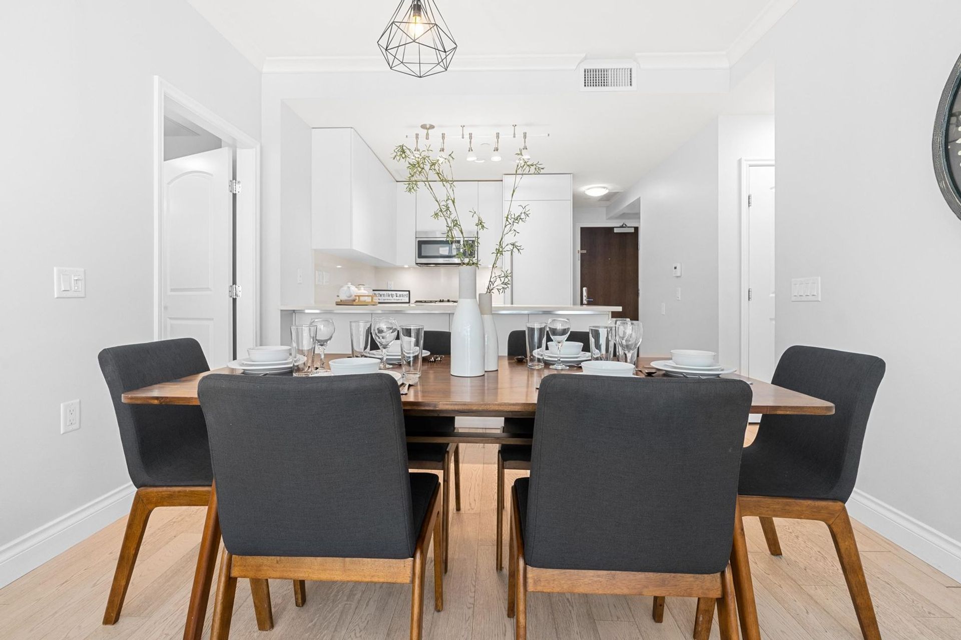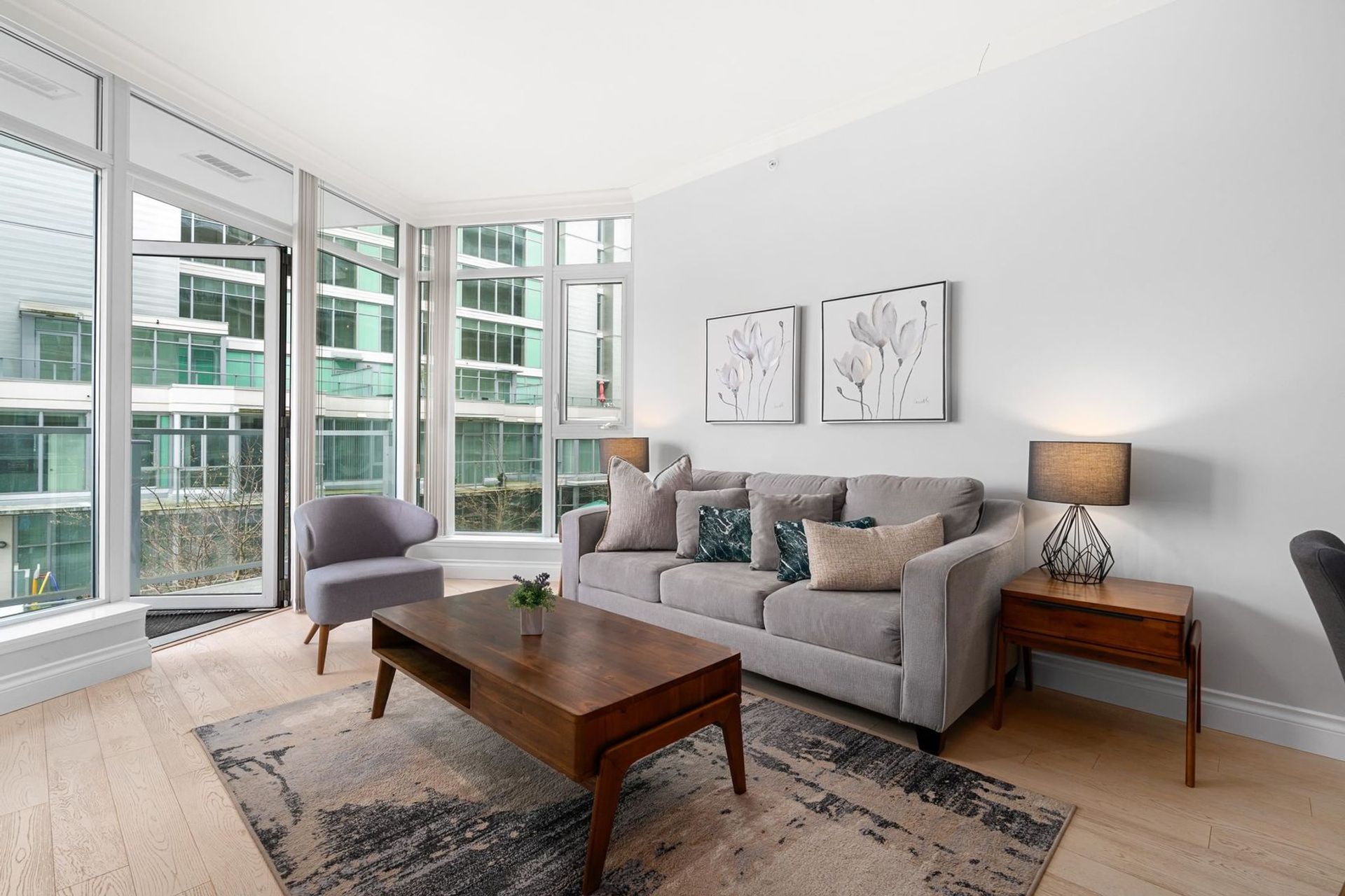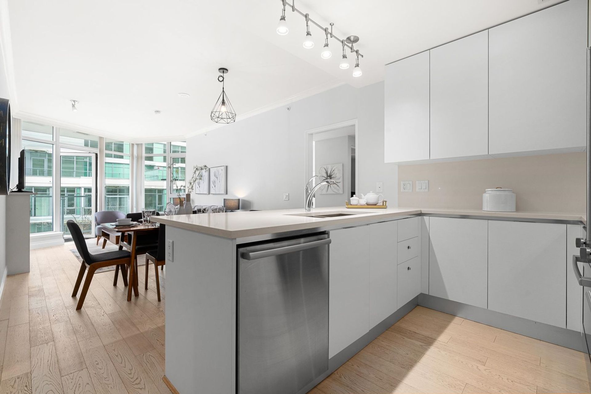 Over 1,000 sqft of luxury in the heart of Lower Lonsdale's Shipyard District.Step in and enjoy open concept living with full sized dining and living room, plus a gourmet kitchen with gas cooktop and integrated fridge.Soak in magnificent views of the Harbour and City each and every morning from your