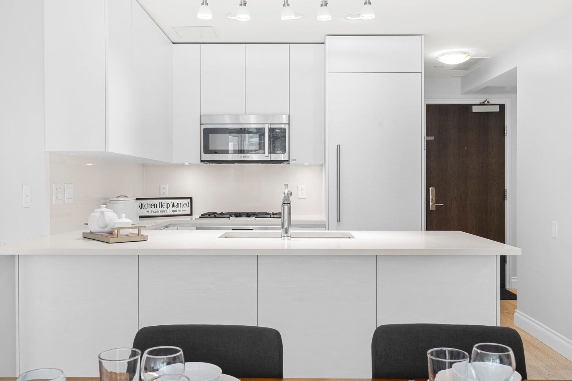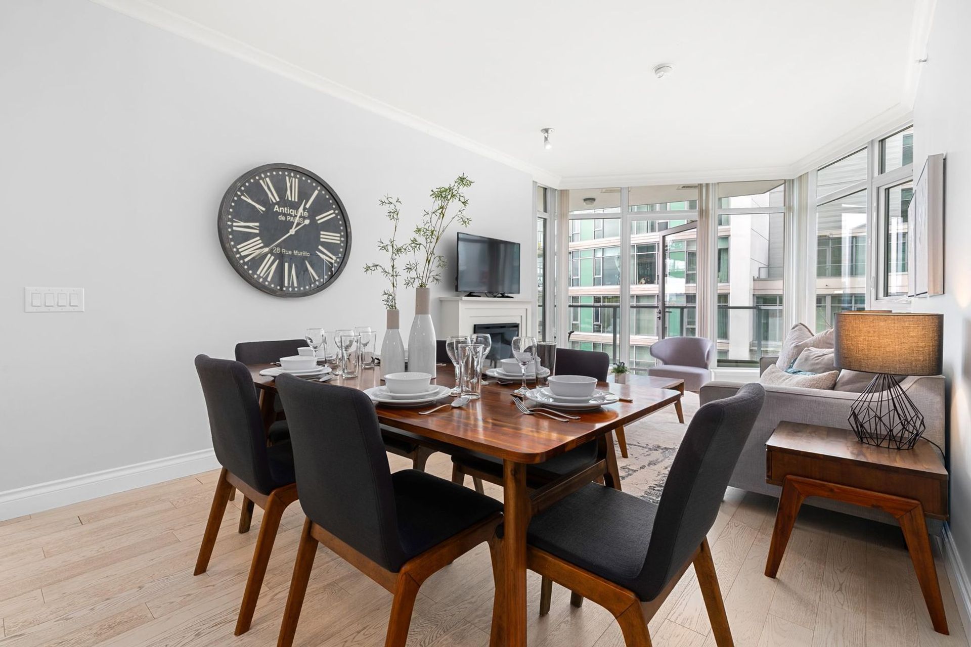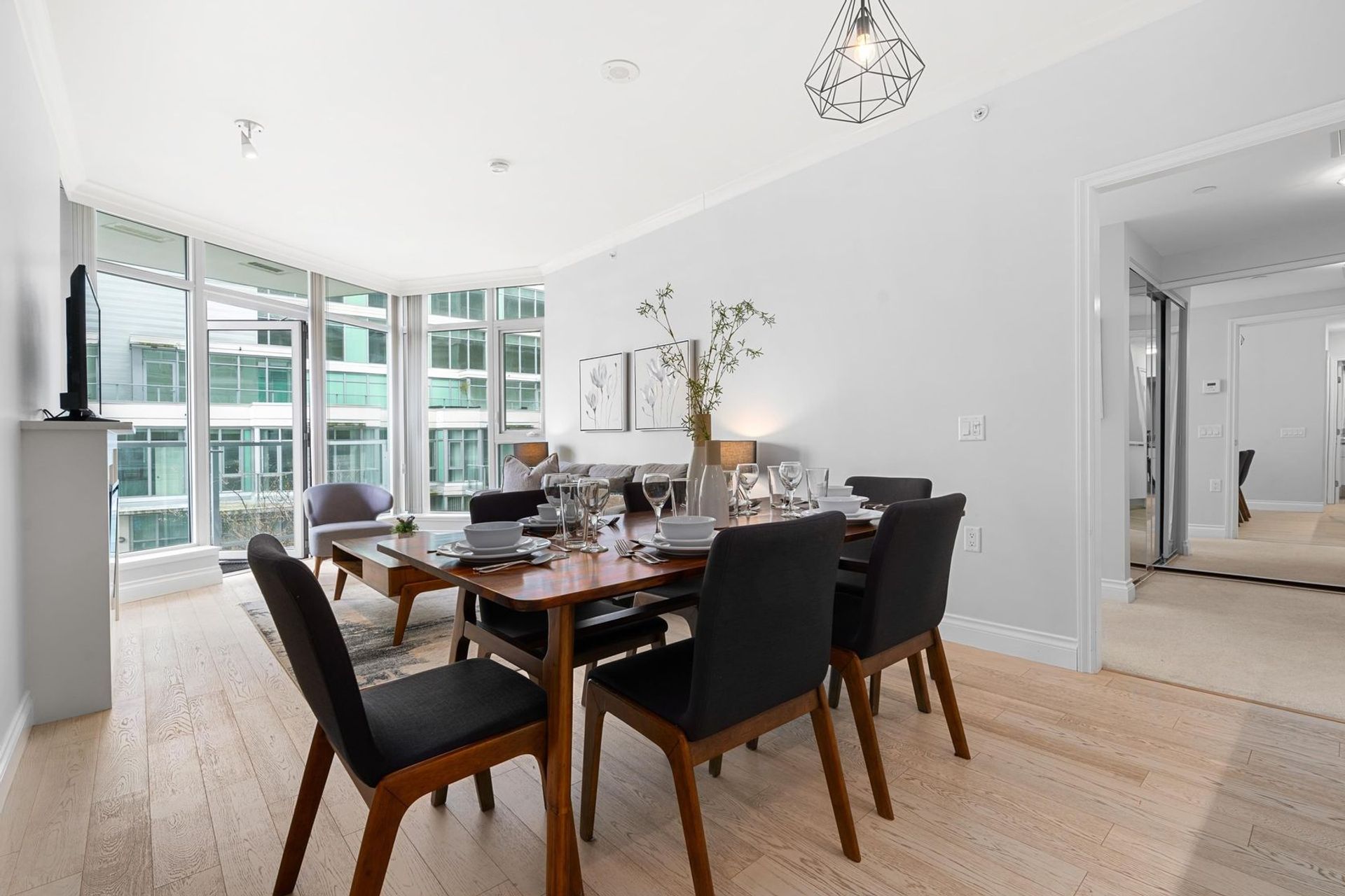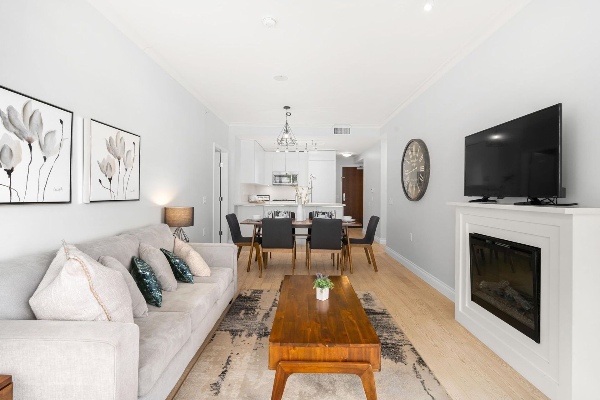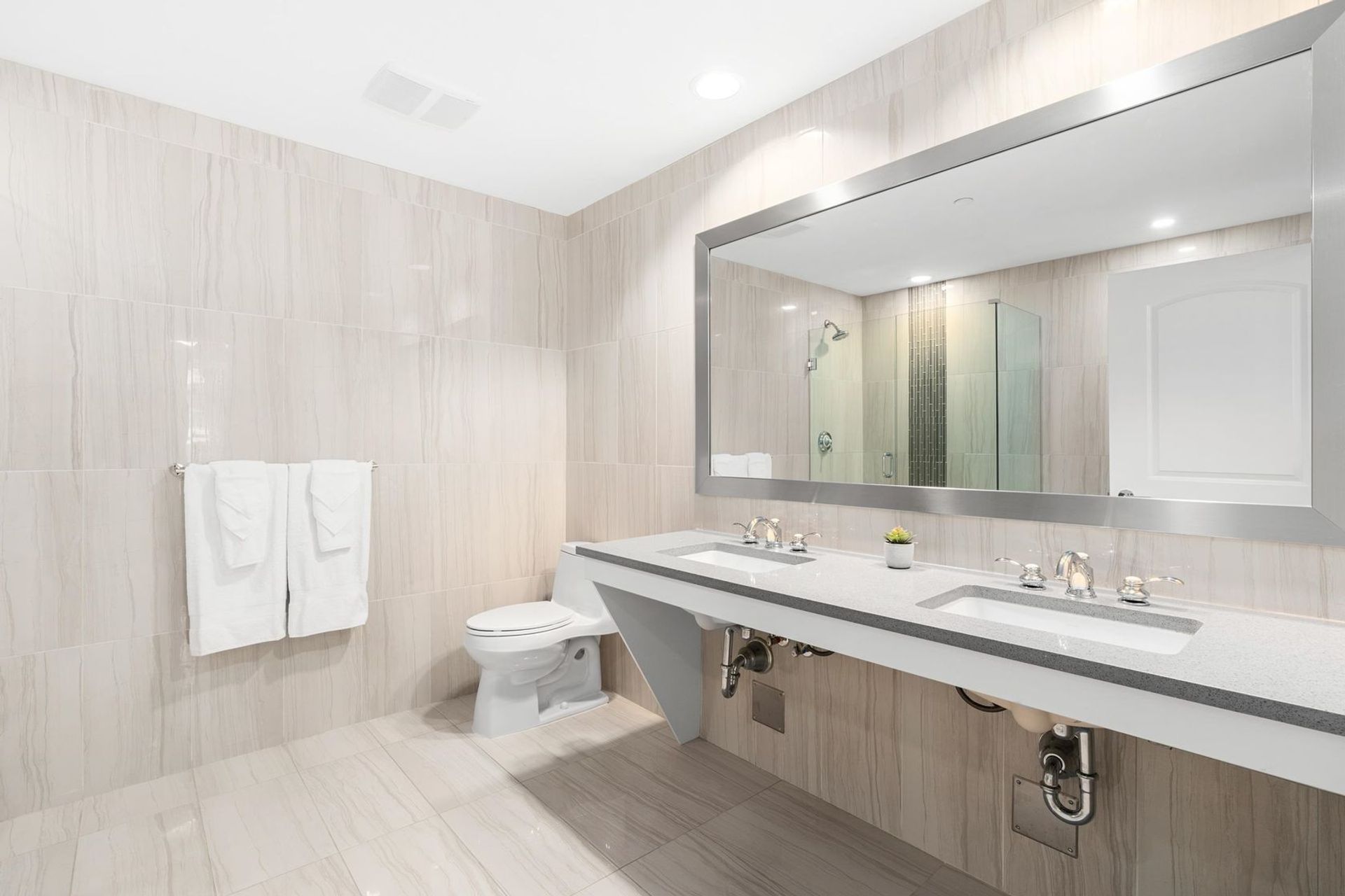 Over 1,000 sqft of luxury in the heart of Lower Lonsdale's Shipyard District.Step in and enjoy open concept living with full sized dining and living room, plus a gourmet kitchen with gas cooktop and integrated fridge.Soak in magnificent views of the Harbour and City each and every morning from your