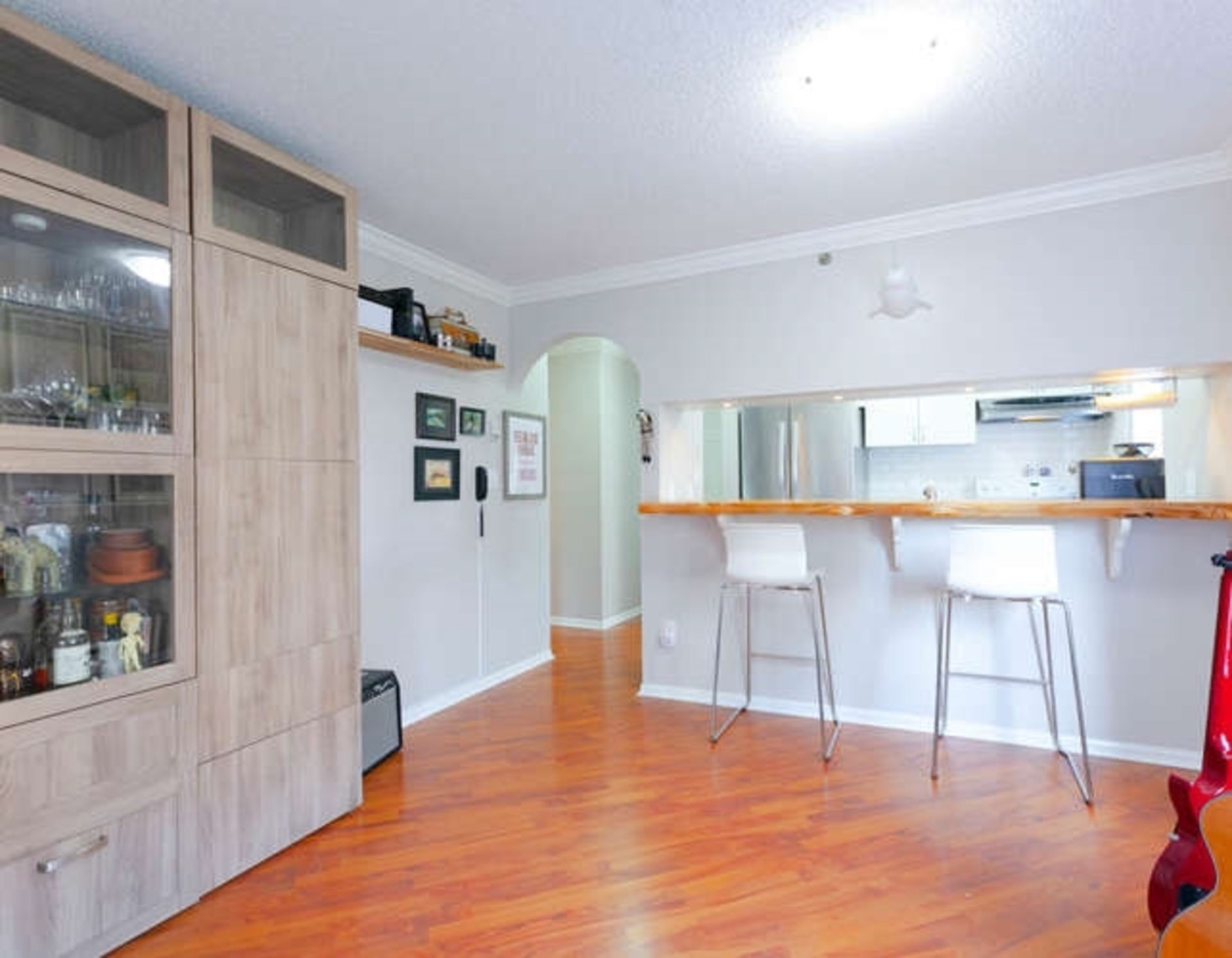 CORNER SUITE! QUIET SIDE! LARGE BALCONY! PETS ALLOWED! SPACIOUS ROOMS! Own a piece of the West End! This suite has an abundance of NATURAL LIGHT that flows through its many windows! The open kitchen has an extra roomy pantry (W/LAUNDRY) that will give your friends kitchen-storage envy! The living & dining room areas are large enough to be rearranged to suit your lifestyle- add an office nook; the possibilities are endless! The Master Bedroom easily fits a king-size bed, w/room for more furniture! Both bedrooms have a treed outlook & face onto a spacious SOUTH/EAST PATIO! The Somerset is a RAINSCREENED no worries complex, w/new roof & plumbing & is ideally located directly across from Nelson Park! Unit is complete w/ INSUITE LAUNDRY/1 parking & storage. **Open House! Dec 22nd,12:00-1:30! **