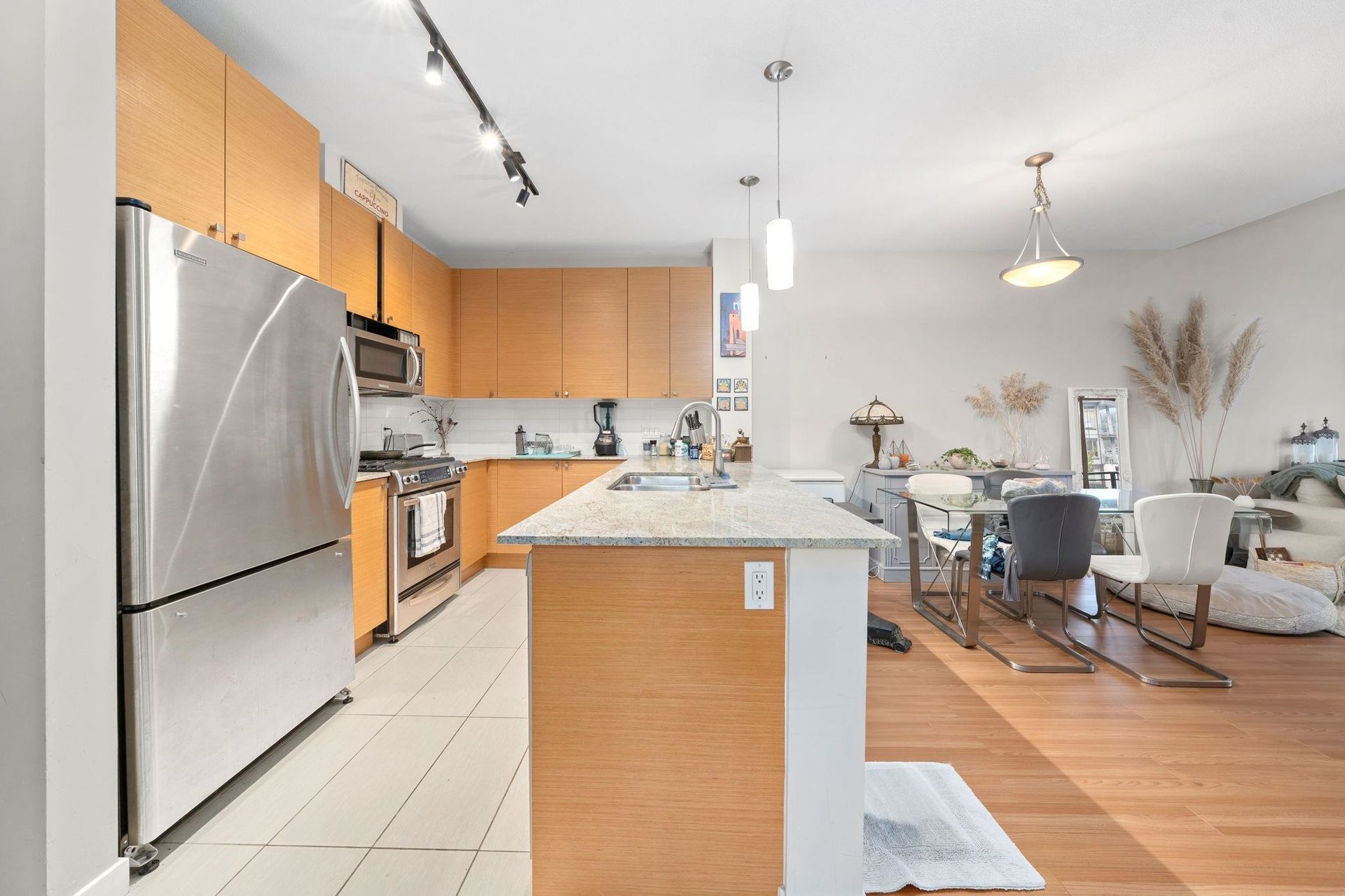 Top floor PENTHOUSE suite in the heart of Suter Brook Village. LARGE condo - over 700 sqft! This well appointed home features an open concept layout with VAULTED CEILINGS, allowing for lots of natural light, making the home feel bright and airy. The kitchen is very functional with lots of storage, g