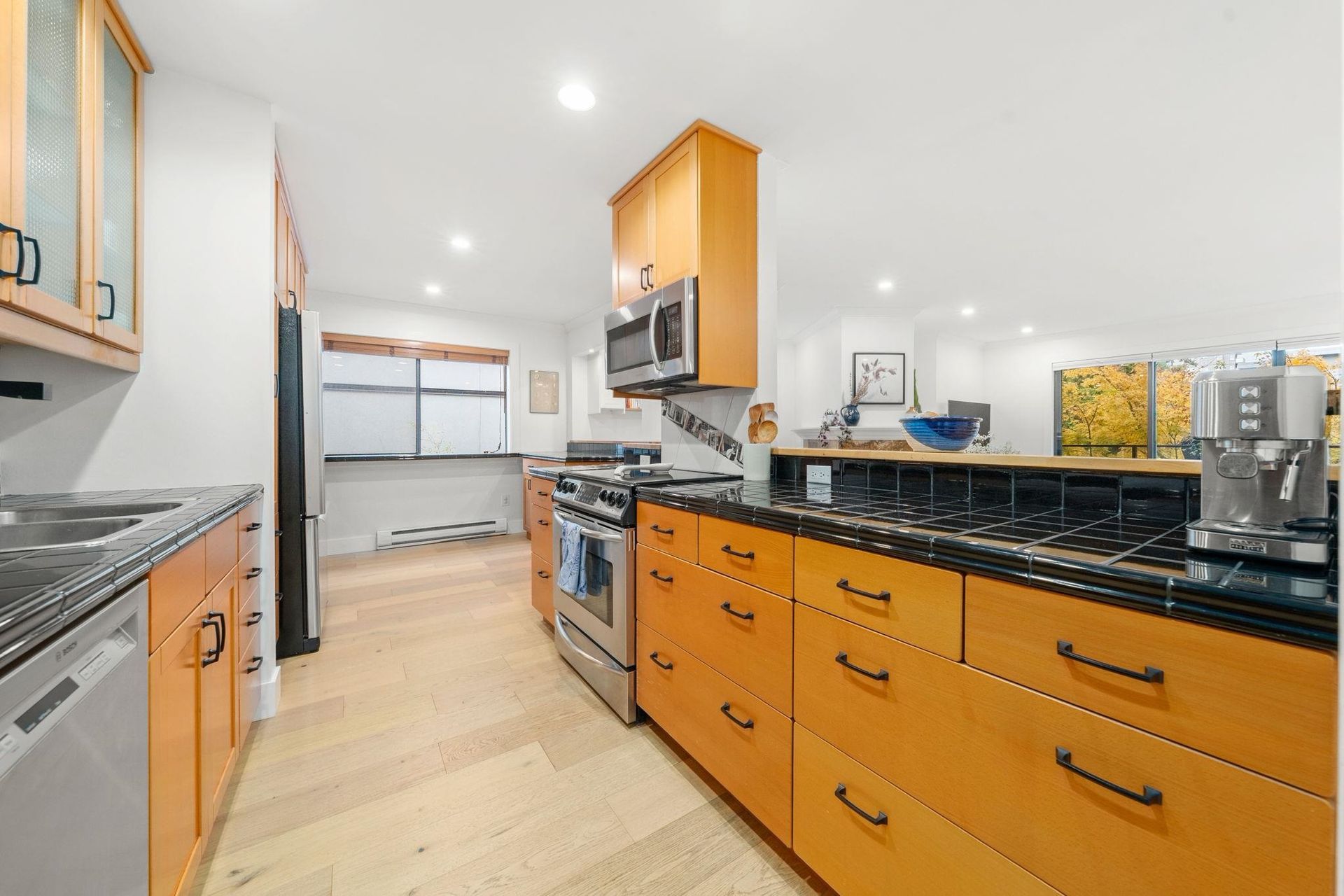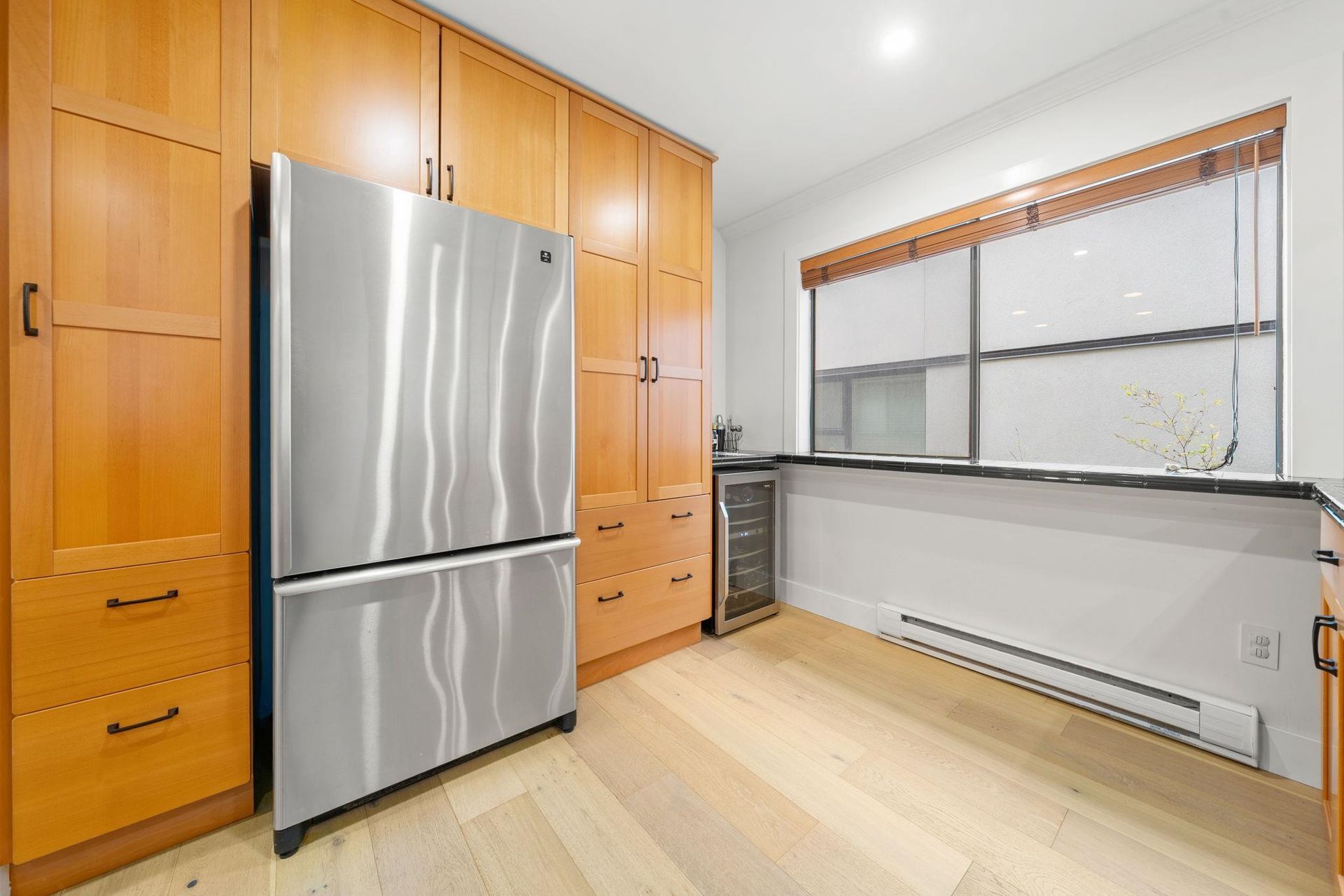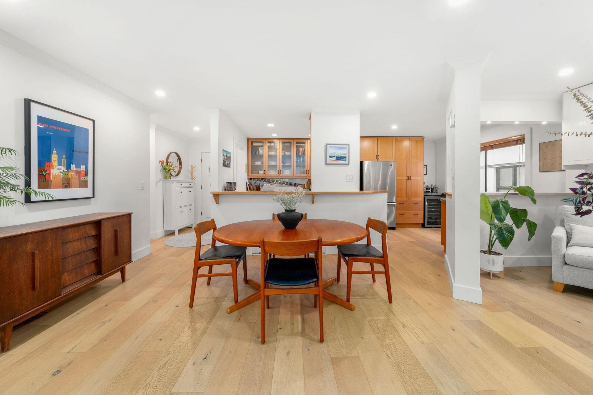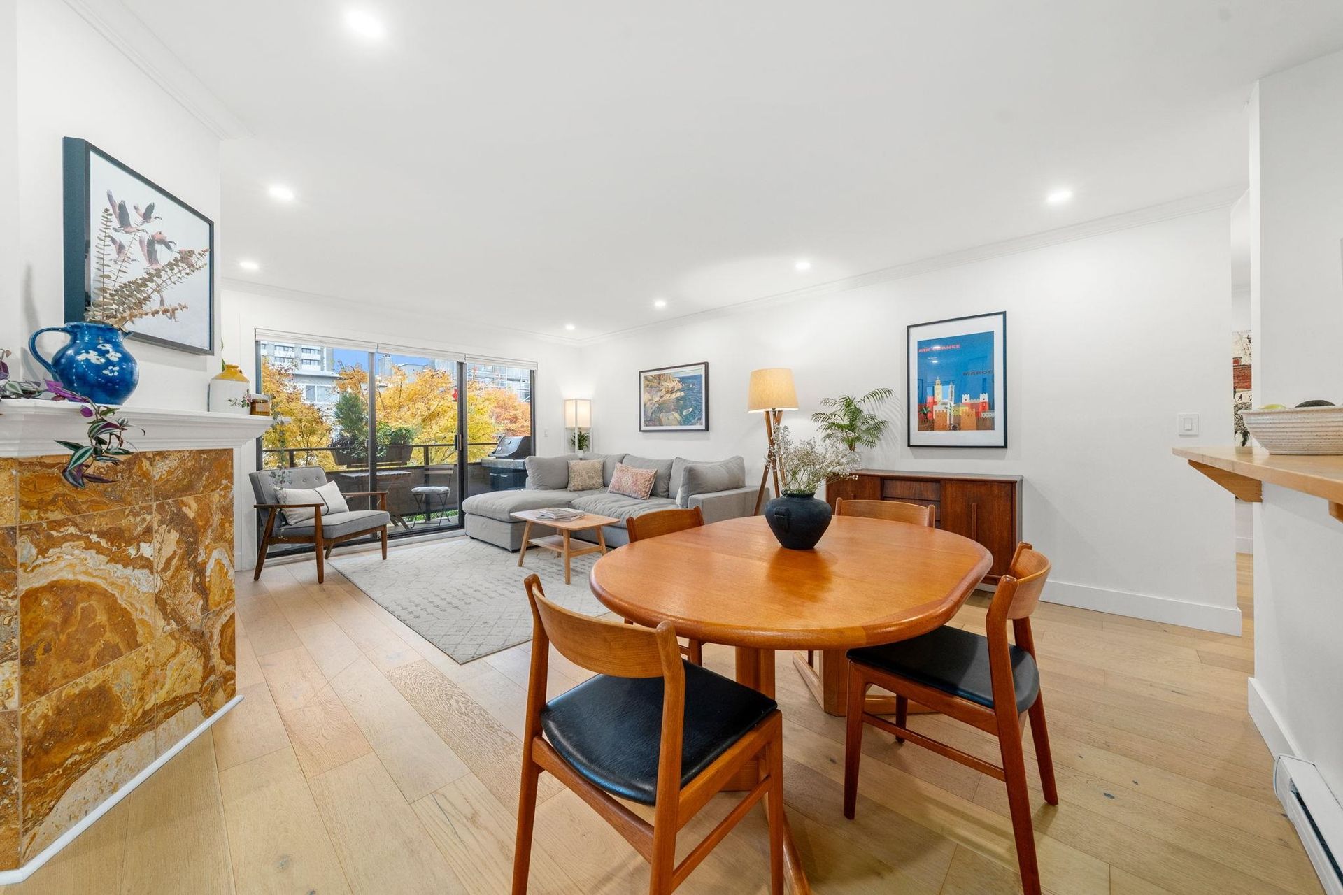 Small, 5 unit strata in a no fuss, easy maintenance building! Suite 201 occupies the entire front half of the floor, allowing for windows on 3 sides of the home. At nearly 1,200 sqft, there are zero compromises on space. The suite has been caringly updated and features wide plank Oak hardwood, updated lighting, blinds, paint and trim throughout. Enjoy open concept living and a large L shaped deck for summer evenings. Features include a dual-sided fireplace, cozy den, and large updated kitchen with coffee bar area. The bedrooms are spacious, including a primary with dual closets and a full ensuite. Tons of in suite storage, plus 2 external lockers and 1 parking. Pets allowed and in suite laundry allowed w/ strata approval. Roof recently replaced! Walking distance to future Broadway line and VGH!
