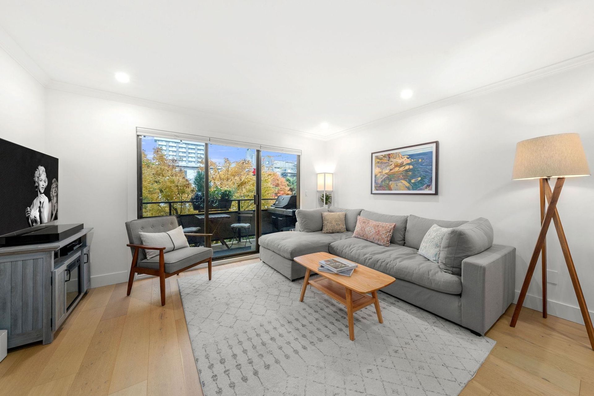 Small, 5 unit strata in a no fuss, easy maintenance building! Suite 201 occupies the entire front half of the floor, allowing for windows on 3 sides of the home. At nearly 1,200 sqft, there are zero compromises on space. The suite has been caringly updated and features wide plank Oak hardwood, updat