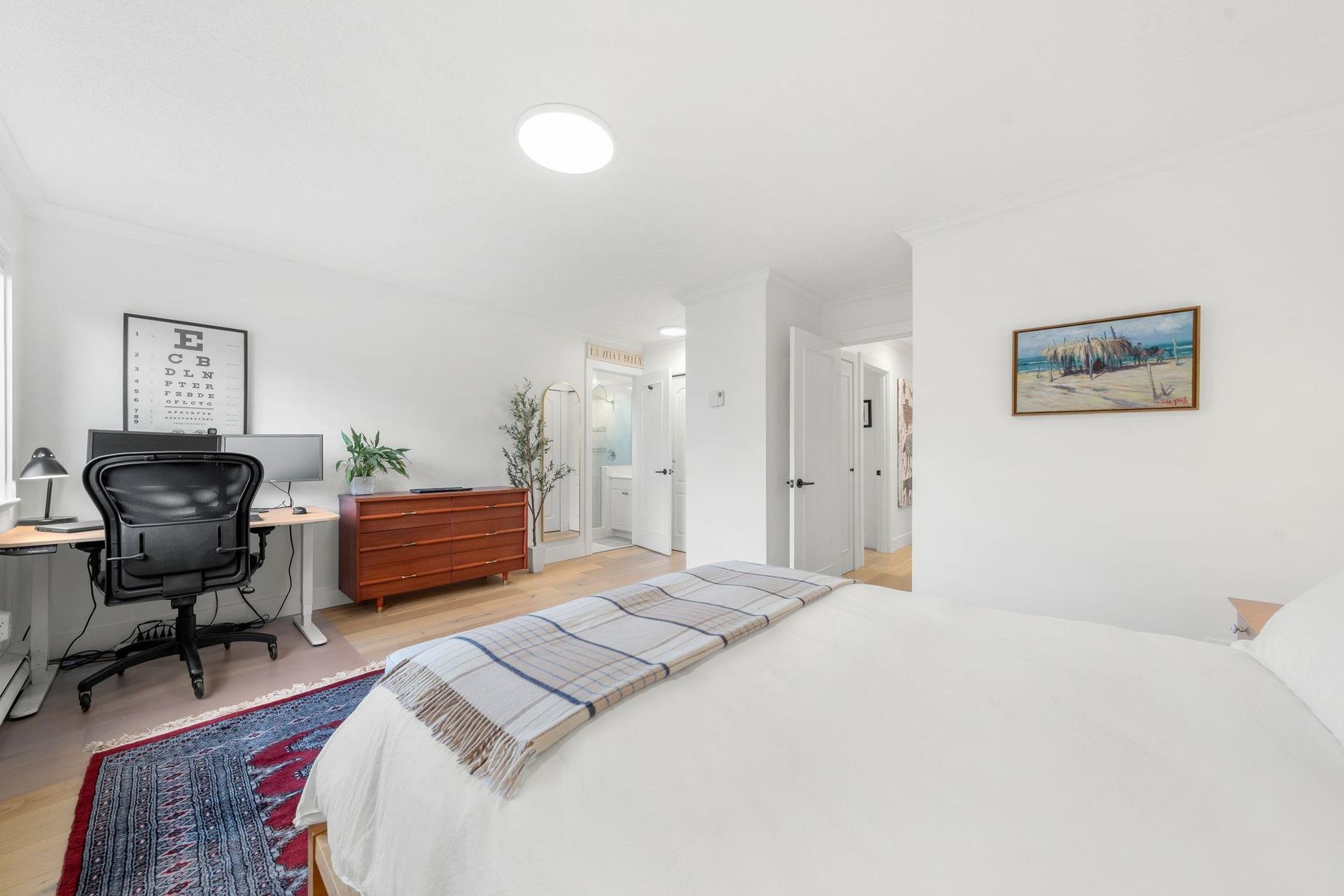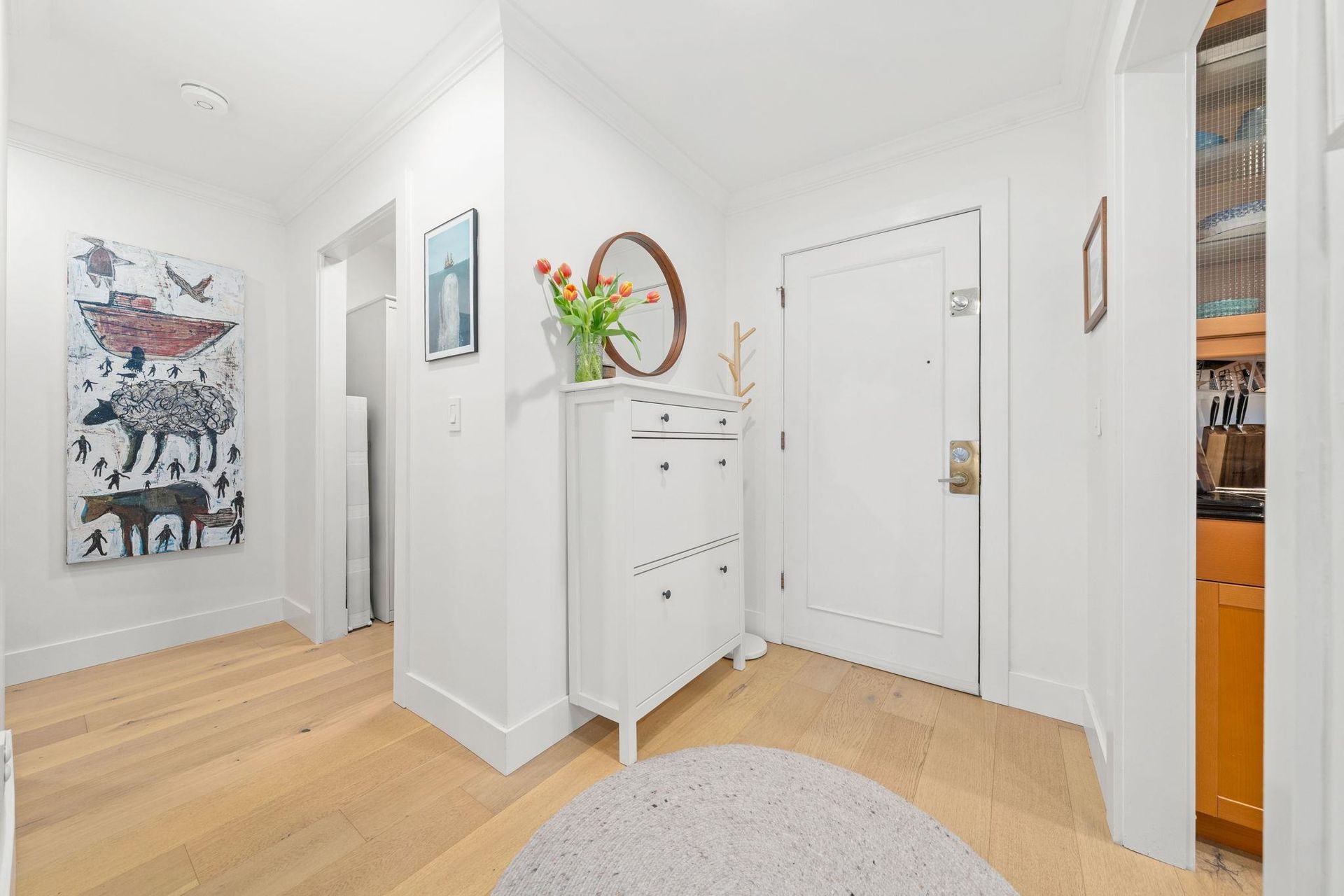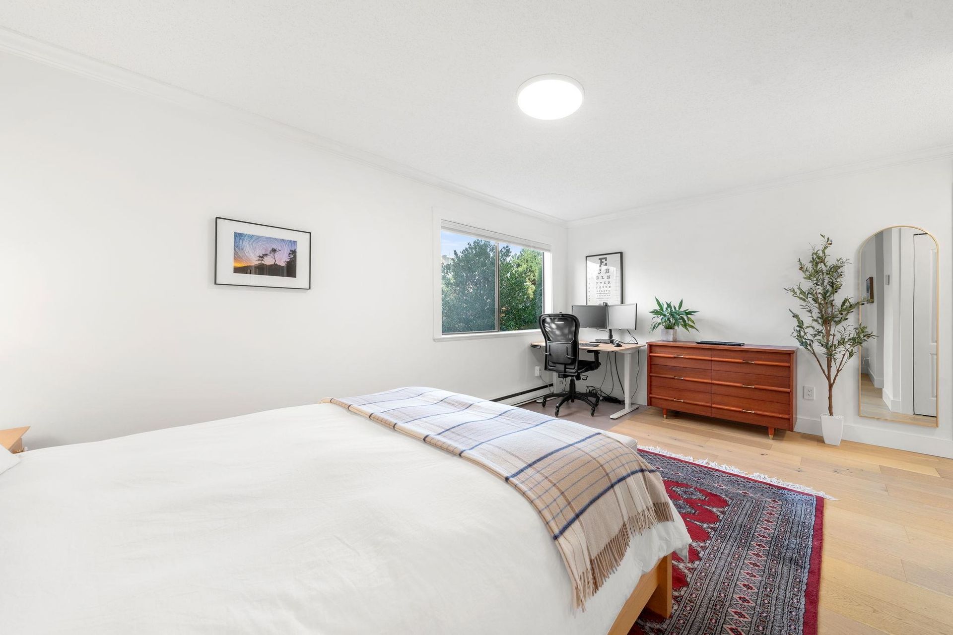 Boutique, 5 unit strata in a no fuss, easy maintenance building! Suite 201 occupies the entire front half of the floor, allowing for windows on 3 sides of the home. At nearly 1,200 sqft, there are zero compromises on space. The suite has been caringly updated and features wide plank Oak hardwood, up