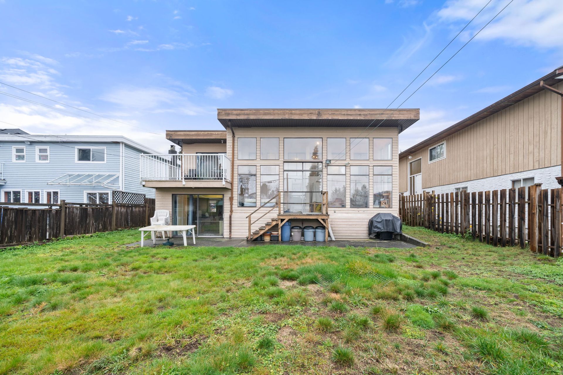 This wonderful, owner occupied, family home is located on a quiet street, just a short stroll from excellent schools, parks, and shopping. The home sit on a south-facing level lot with 50' frontage and 127' depth and lane access. The main floor has two bedrooms, 2 full bathrooms, along with a bright kitchen, dining room and living room with access to a large deck. The lower level features a unique two-storey glass sunroom, spacious rec room (could also serve as an additional bedroom, and a huge laundry and storage room. Additionally, there is a self-contained and registered one bedroom above ground suite - perfect for extended family or additional rental income. The fully fenced backyard has lane access and is situated on a no-through lane.