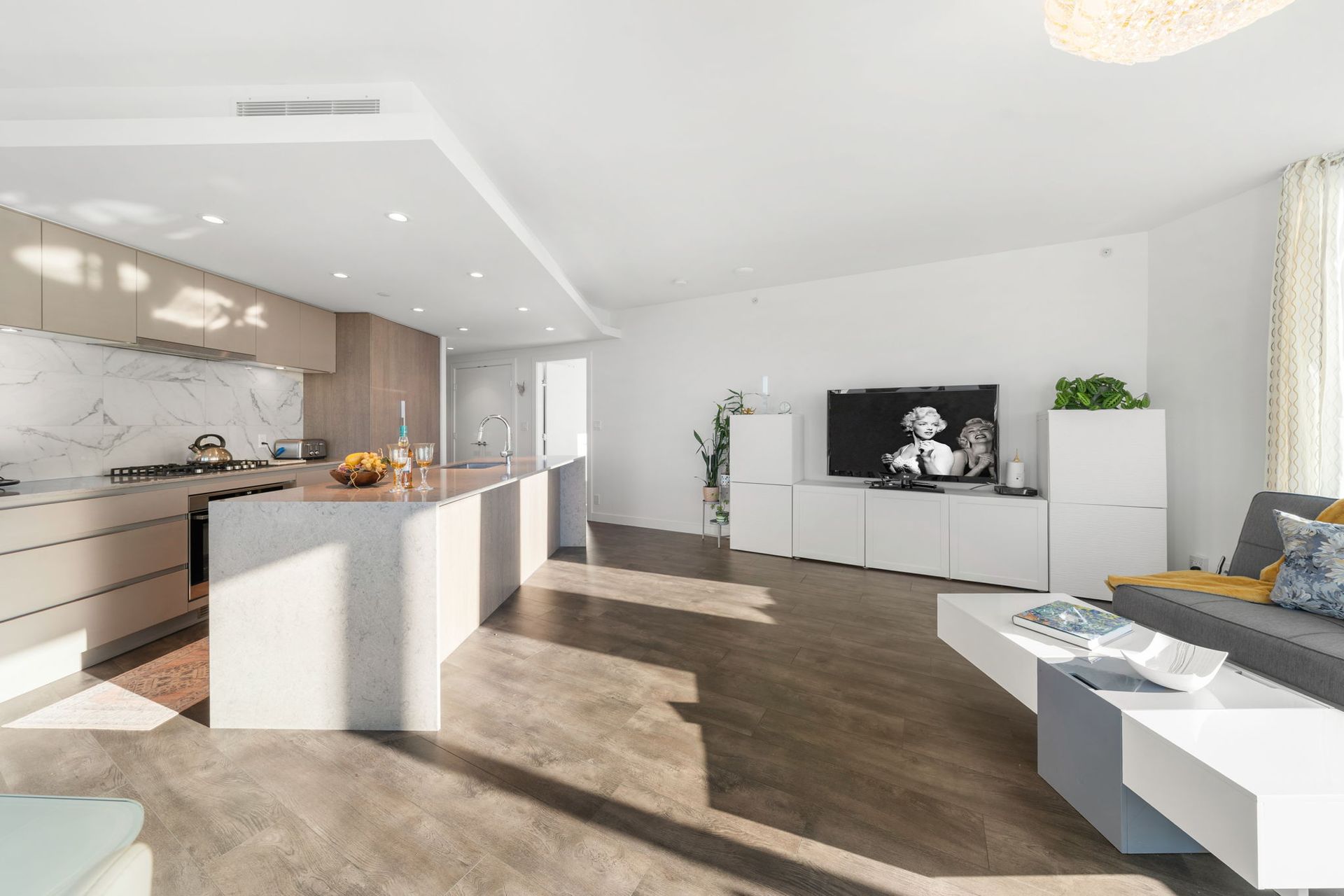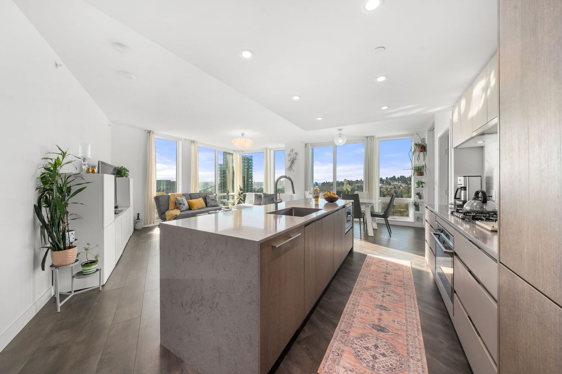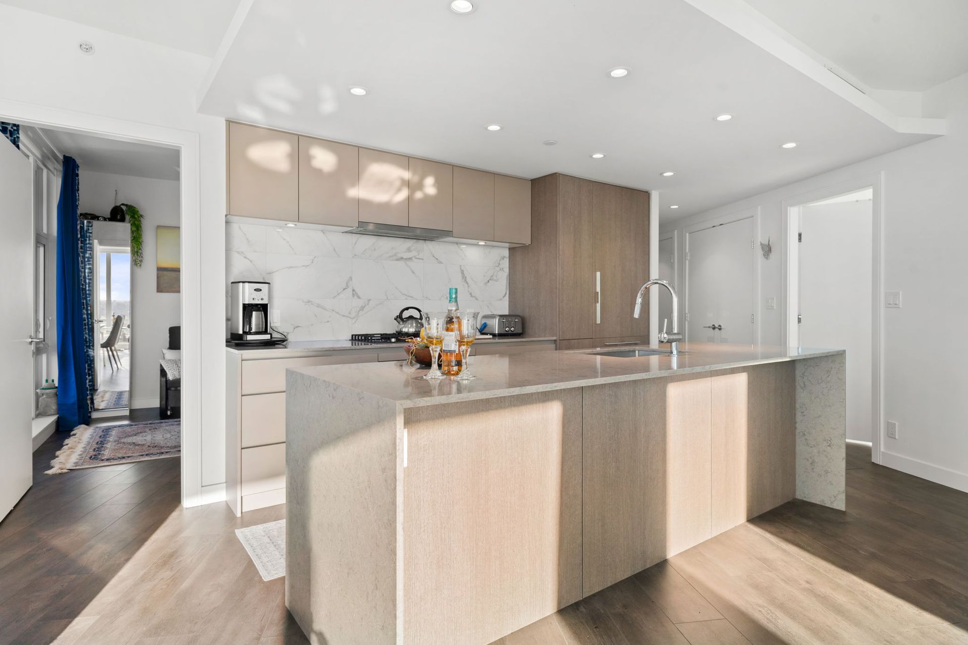 The Best of Urban Living Discover the premier floor plan in the building! This stunning 2-bedroom + den, 2-bathroom corner unit offers unrivaled South and West-facing views and a layout designed for maximum light and flow. The Space: Open-concept living, a modern stainless-steel kitchen, and a versatile den (ideal for a home office or guest bed).The Perks: EV parking, ample storage, and 5 high-speed elevators for zero wait times. Amenities: Resort-style gym, swimming pool, guest suites, and full bicycle maintenance facilities. Location: Seconds from Hwy 1, transit, dining, and shopping. The ultimate urban retreat awaits.
