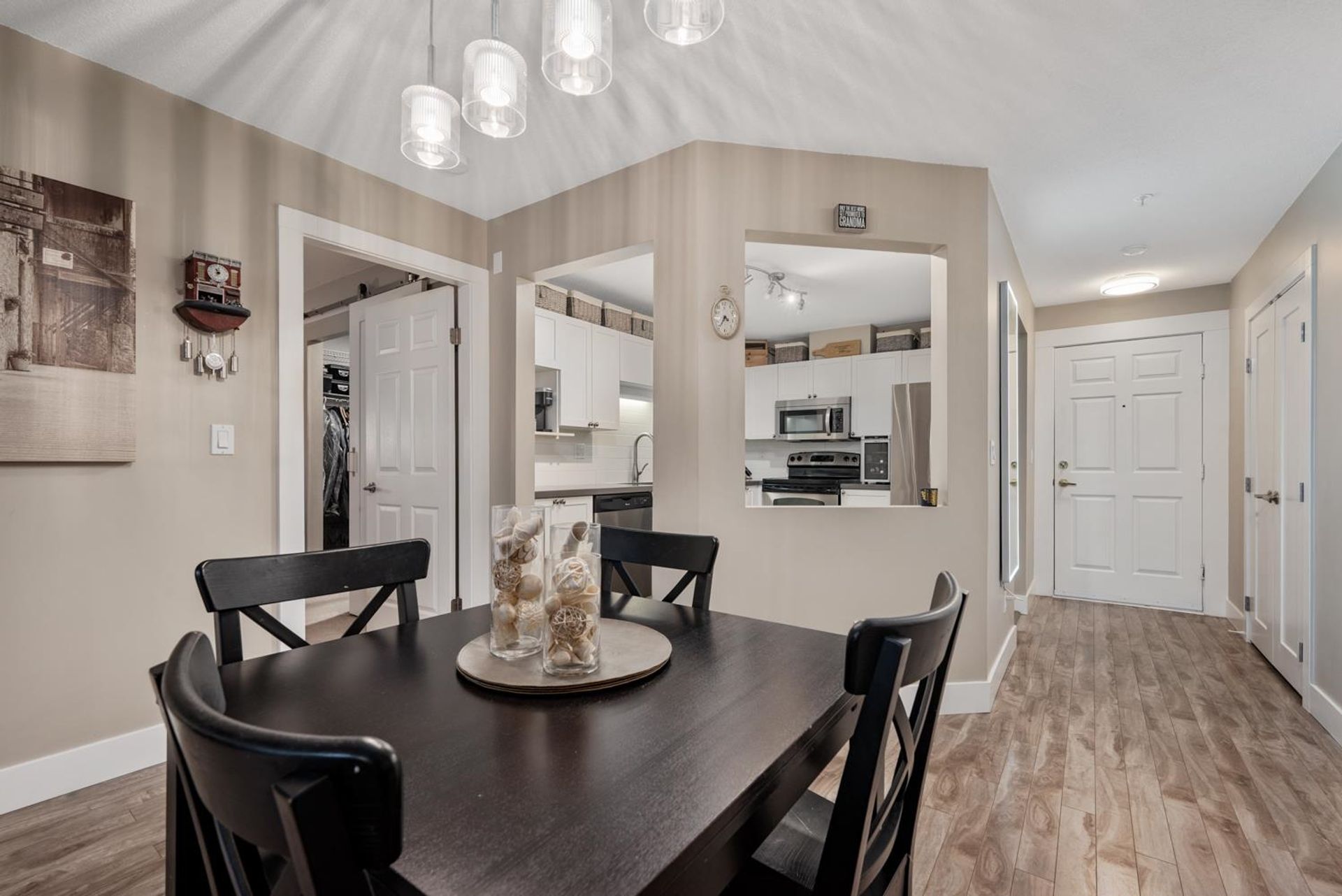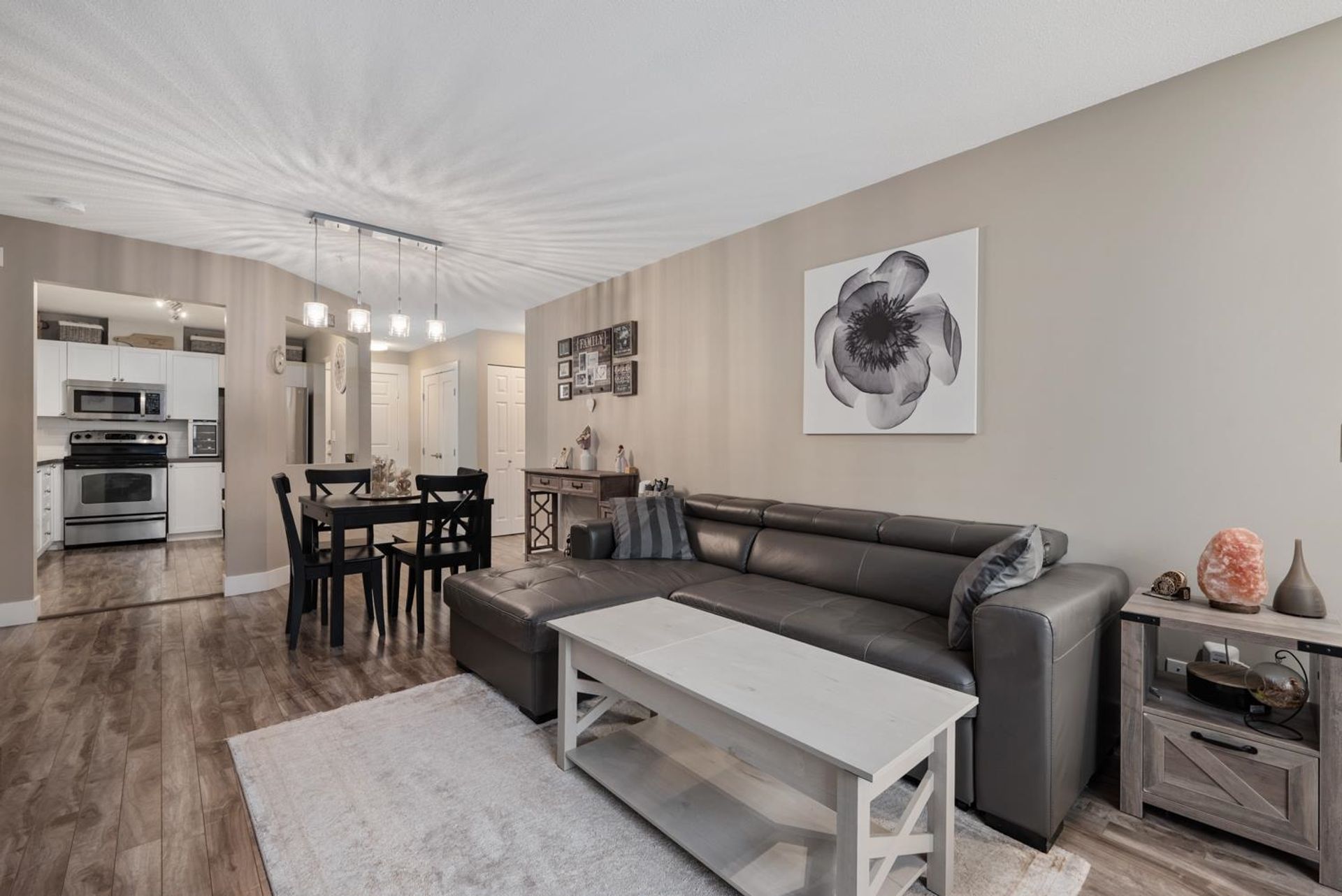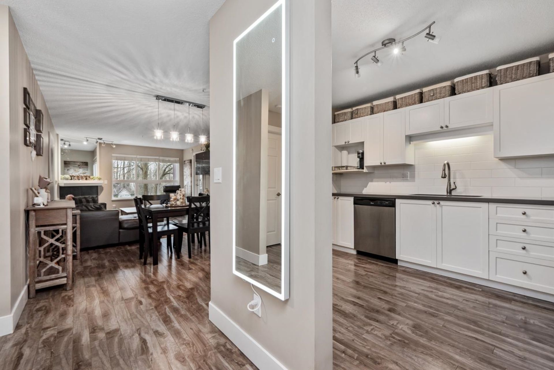 Prime central location! Bright and spacious 2-bedroom, 2-bath condo featuring an open floor plan, cozy gas fireplace, and a covered balcony overlooking a peaceful setting. The primary bedroom includes a walk-in closet, while the second bedroom is conveniently situated next to a full bathroom with a standing shower. Updated kitchen with newer appliances and a window for natural light. Light laminate flooring throughout and in-suite laundry. Well-managed 4-storey building within walking distance of shops, restaurants, medical offices, schools, Scott Road Centre Mall, and transit. Includes 2 parking stalls and a storage locker. Building amenities include a clubhouse, workshop, and bike room. Pet-friendly.