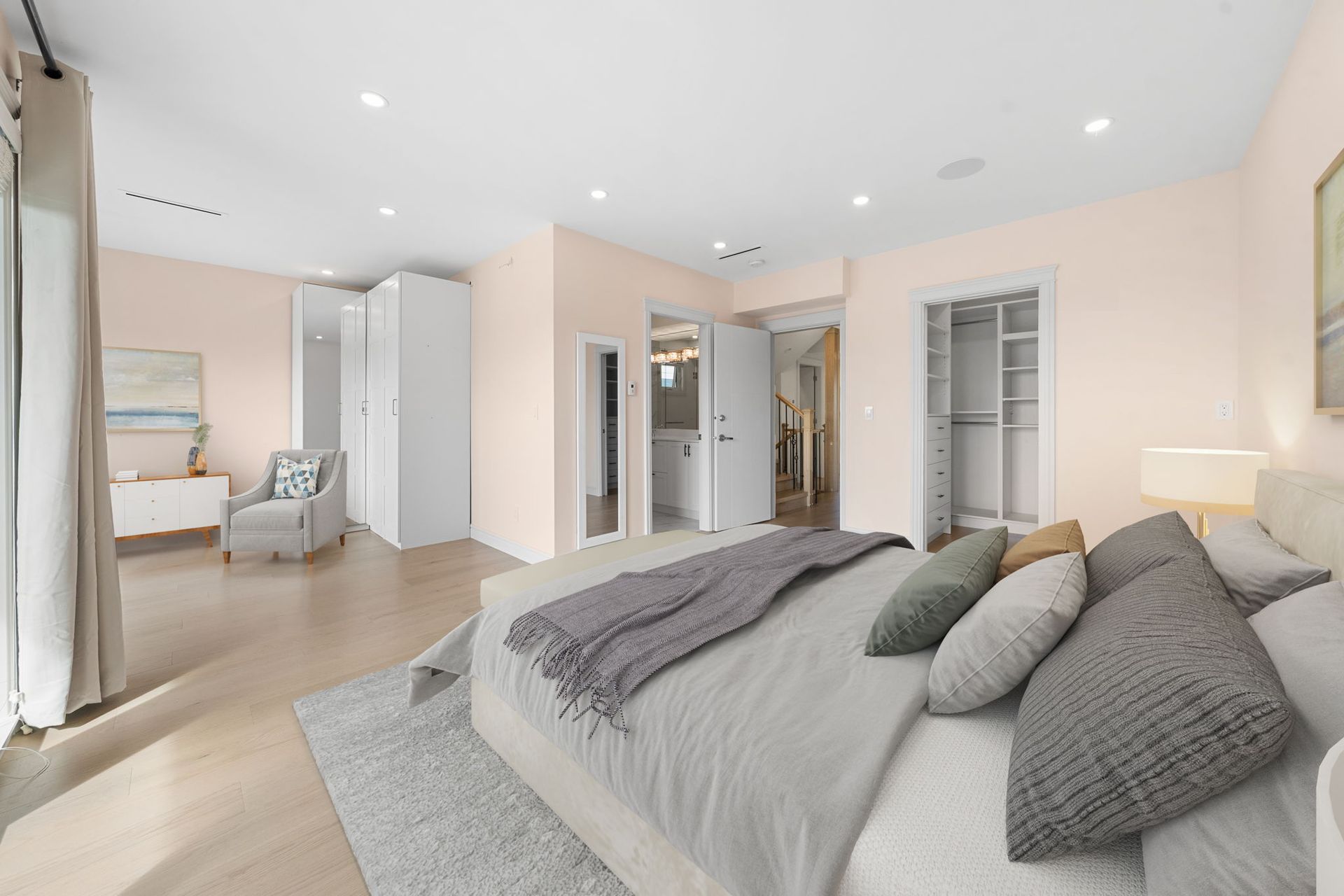 Exquisite City view home in Central Lonsdale! Perched on the high side of the street, enjoy full ocean and city views from the main and top floor, plus 360° views to include the mountains from your 500+ sqft rooftop patio! Custom built and just 4 years old, the home features picture windows framing your views, hardwood floors and AC. 3 generous bedrooms on the upper floor including a huge, south facing primary with a double ensuite, W.IC. staging area and a private balcony. Downstairs features a large, 2 bedroom suite with private access off the front of the home. The property is completed by the rooftop patio with hot tub, 3 additional deck areas, a private backyard with gazebo, and double car garage. Walking distance to Lonsdale, Mahon Park, Carson Graham and Queen Mary Schools.